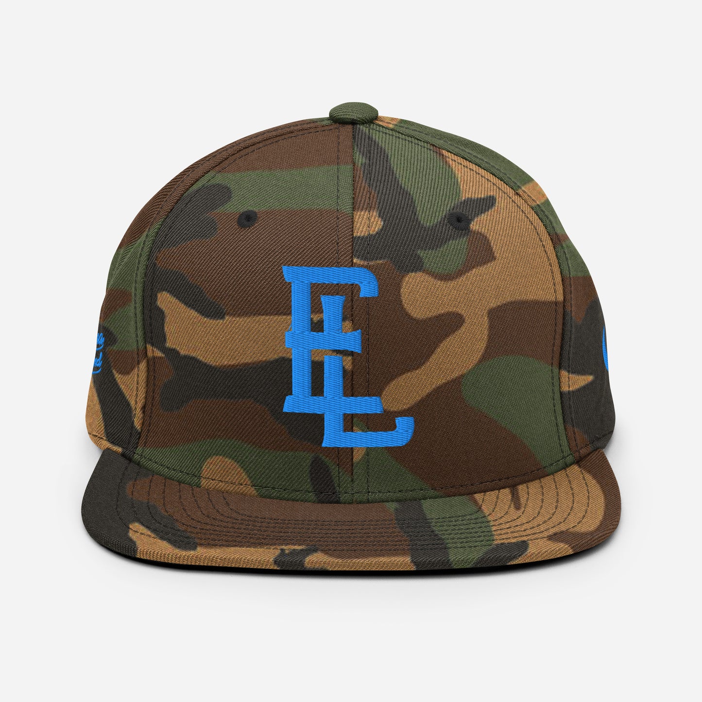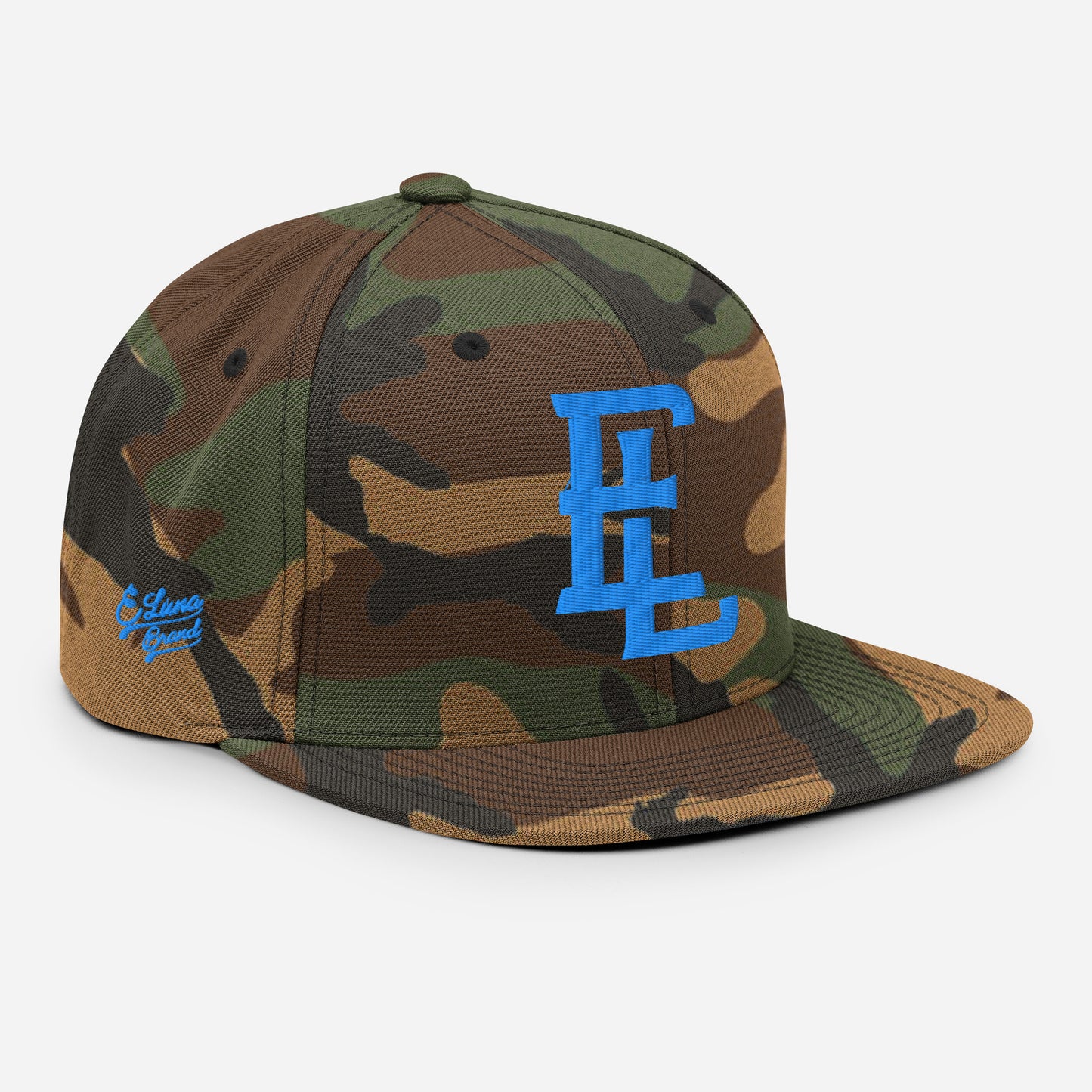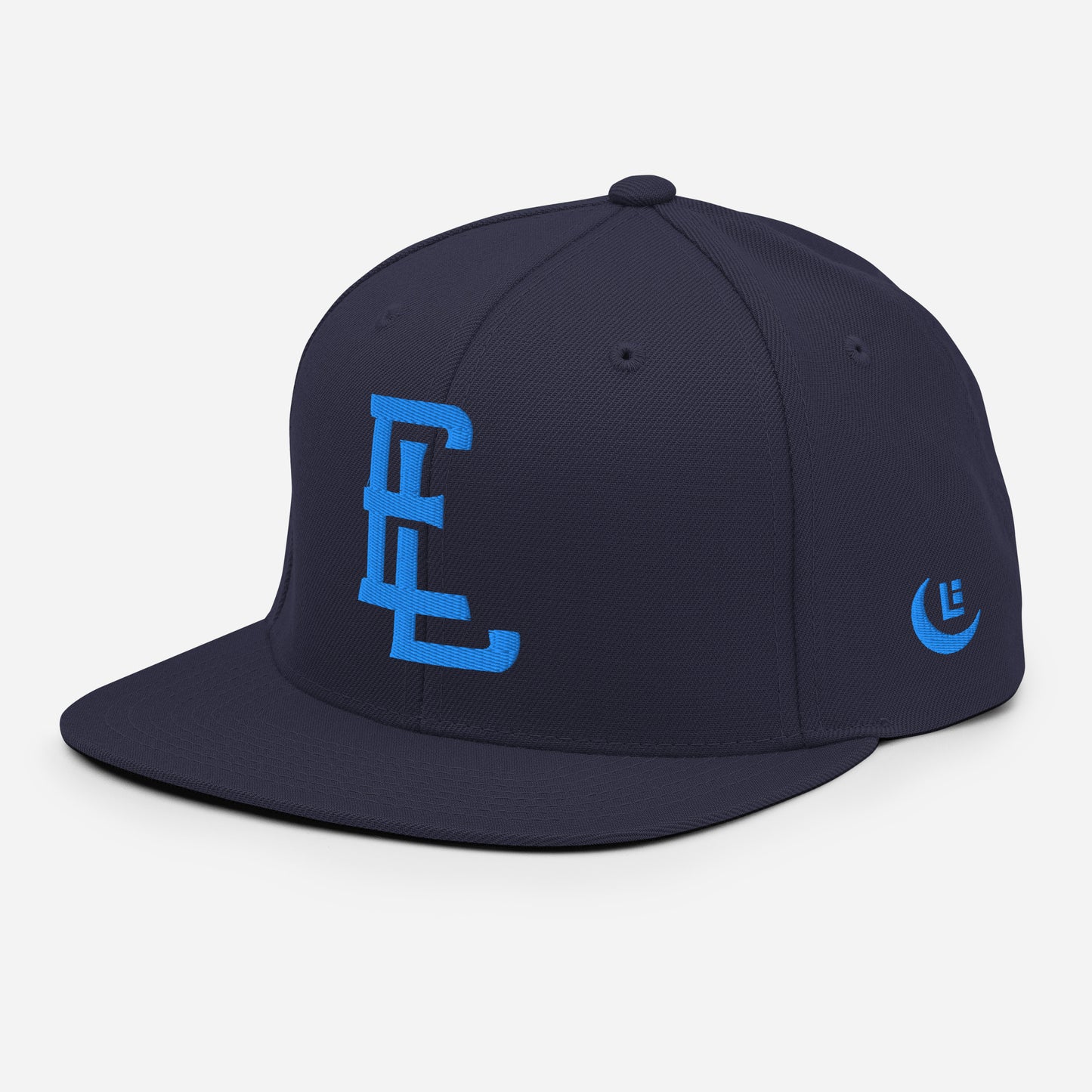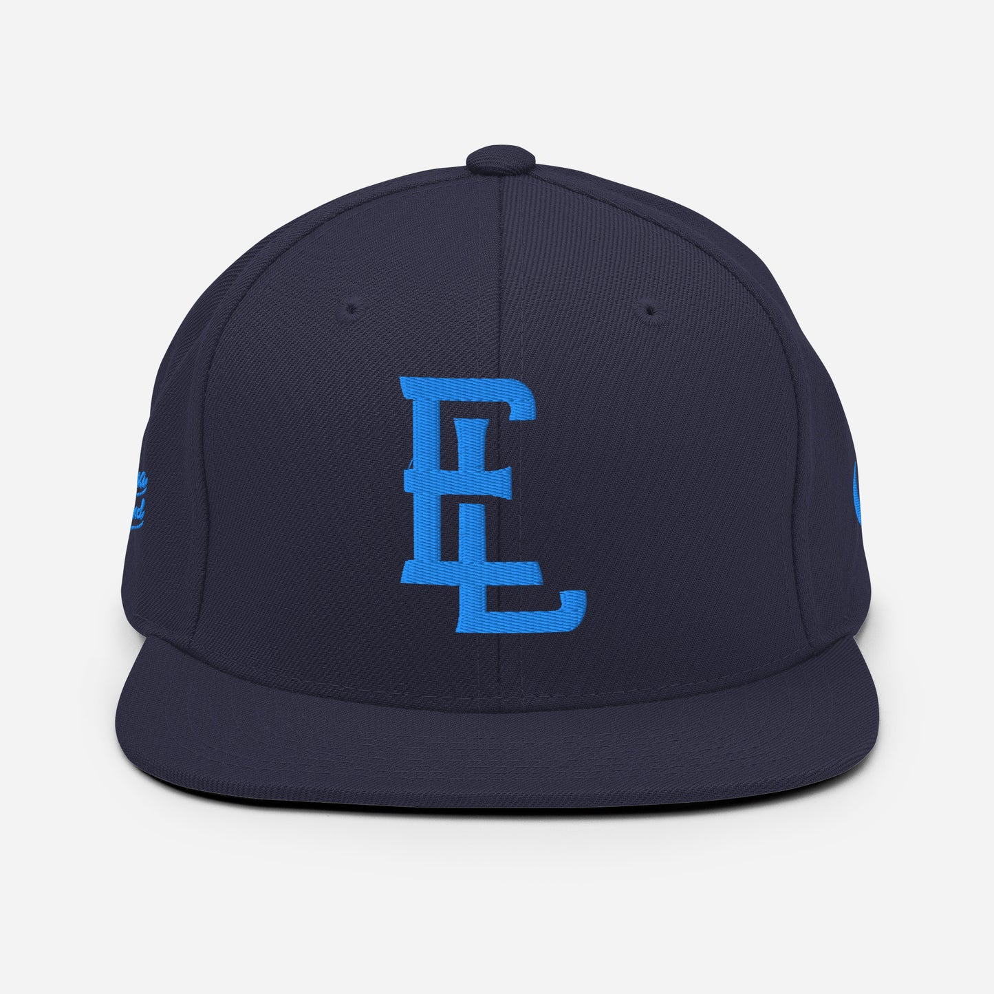 "EL" Wool Blend Snapback | E Luna Brand PREMIUM | 4 Aqua/Teal Thread Logos | 3D Puff Edition