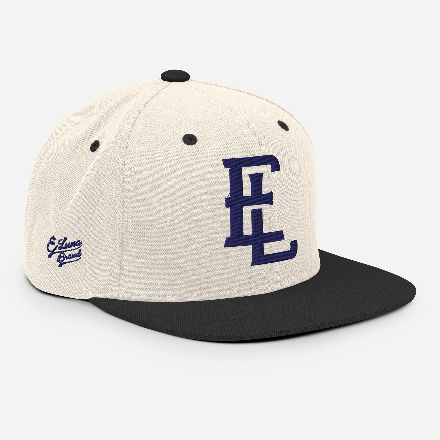 "EL" Wool Blend Snapback | E Luna Brand PREMIUM | 4 Navy Thread Logos | 3D Puff Edition