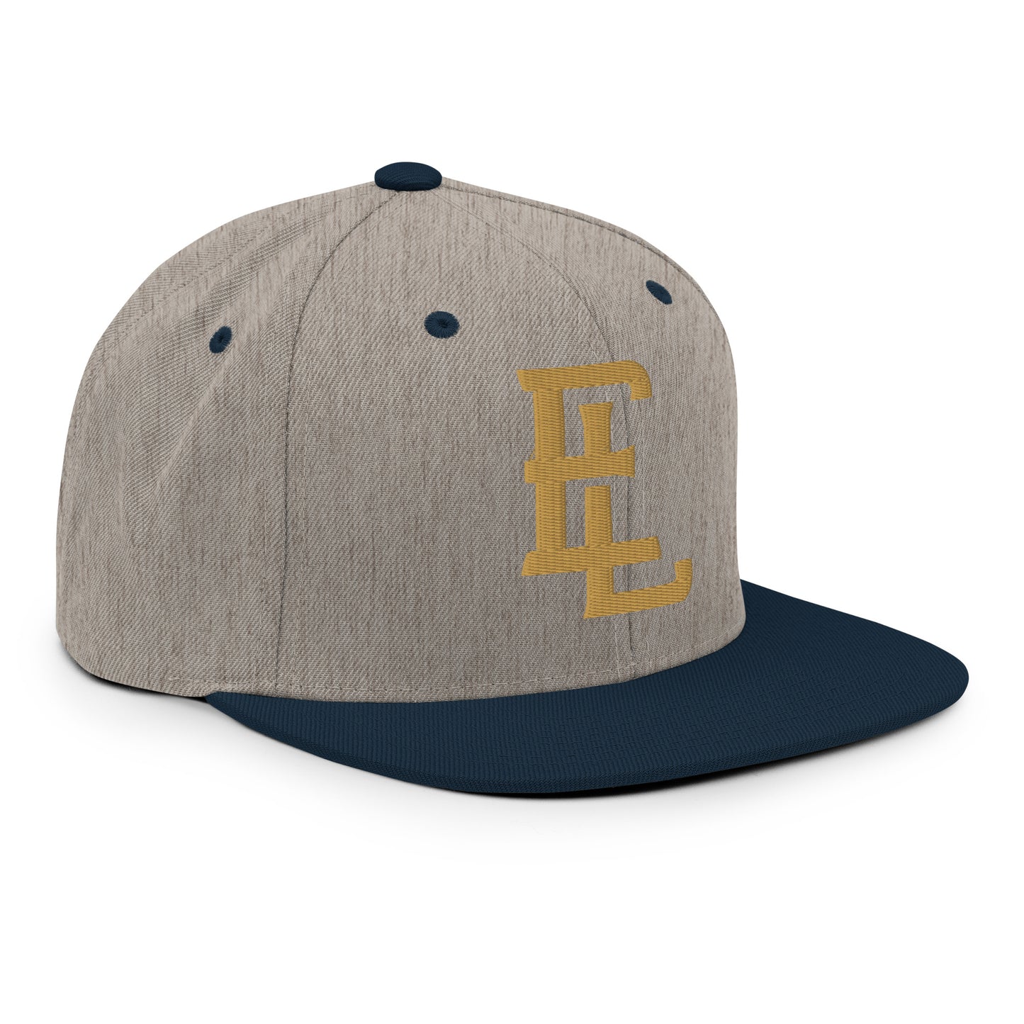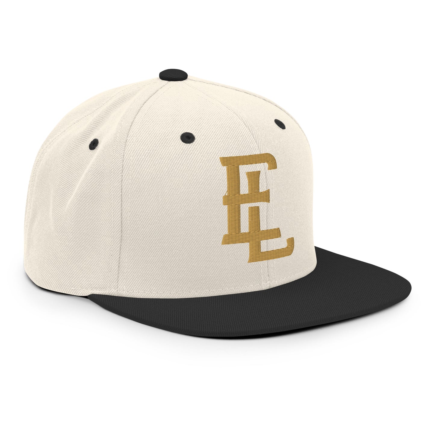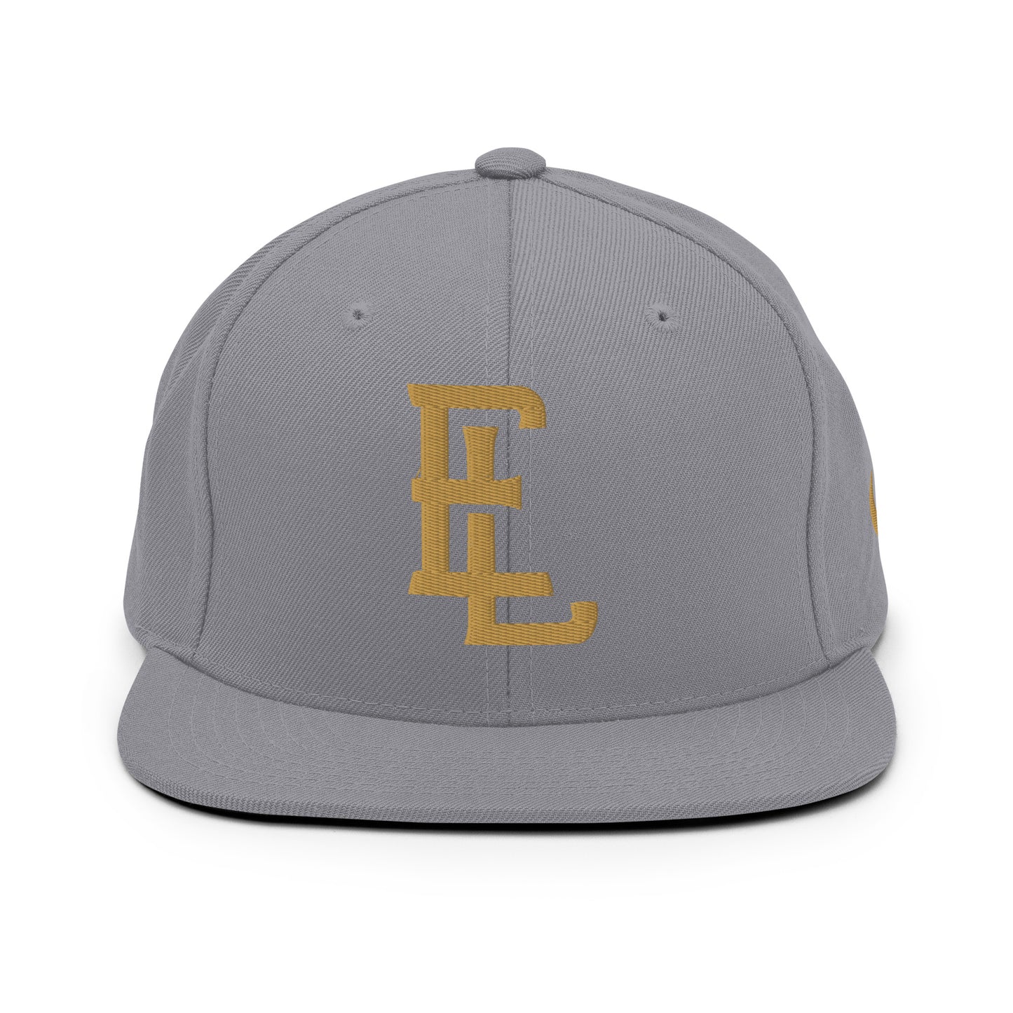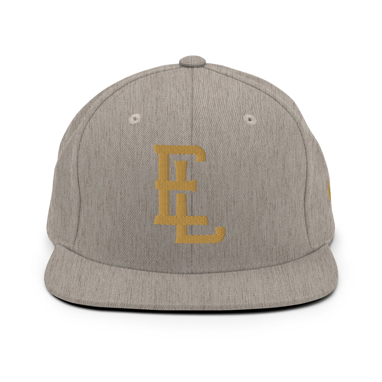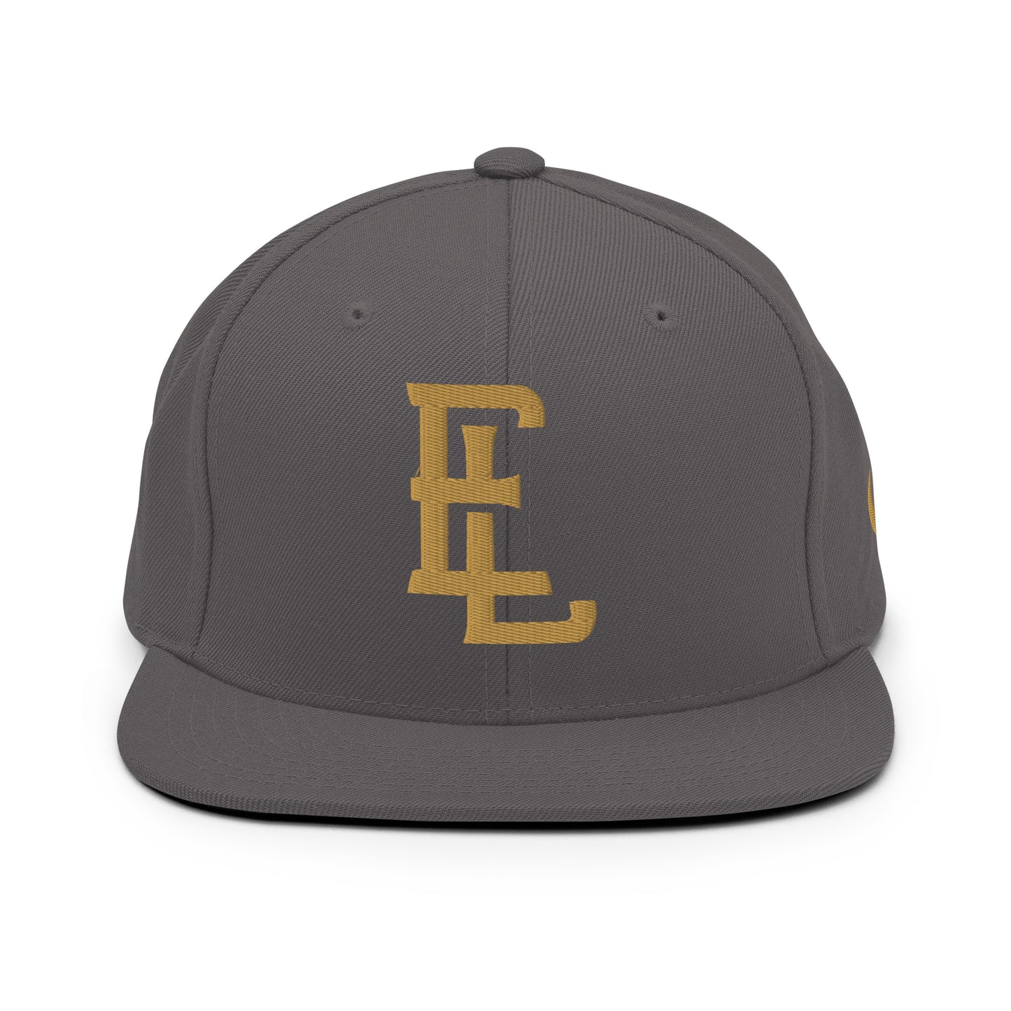 "EL" Wool Blend Snapback | E Luna Brand SELECT | 3 Old Gold Thread Logos | 3D Puff Edition