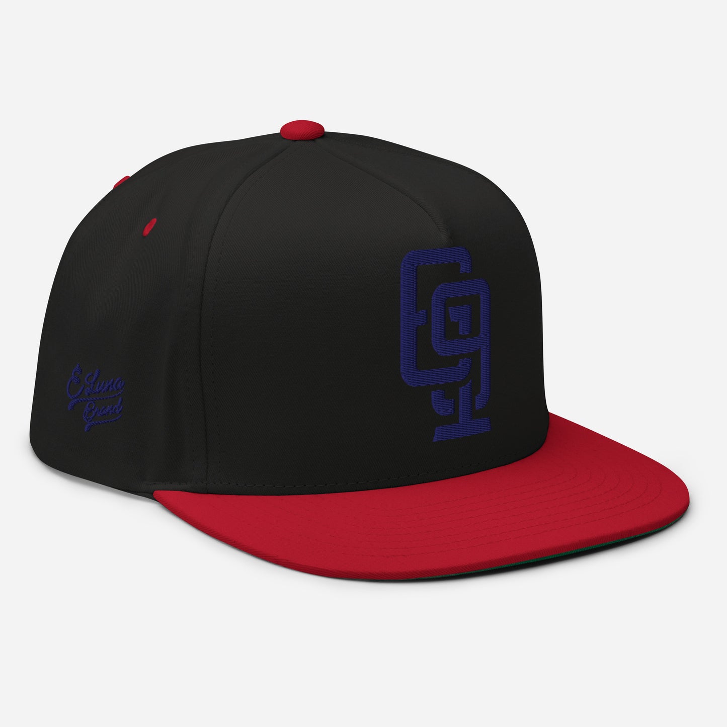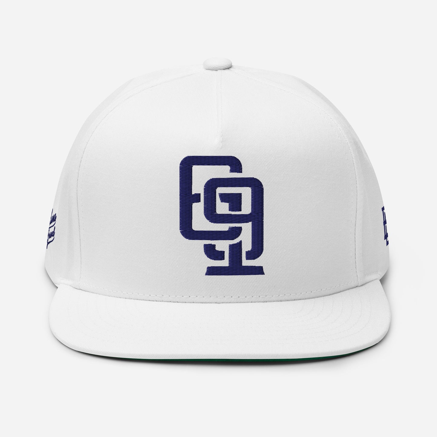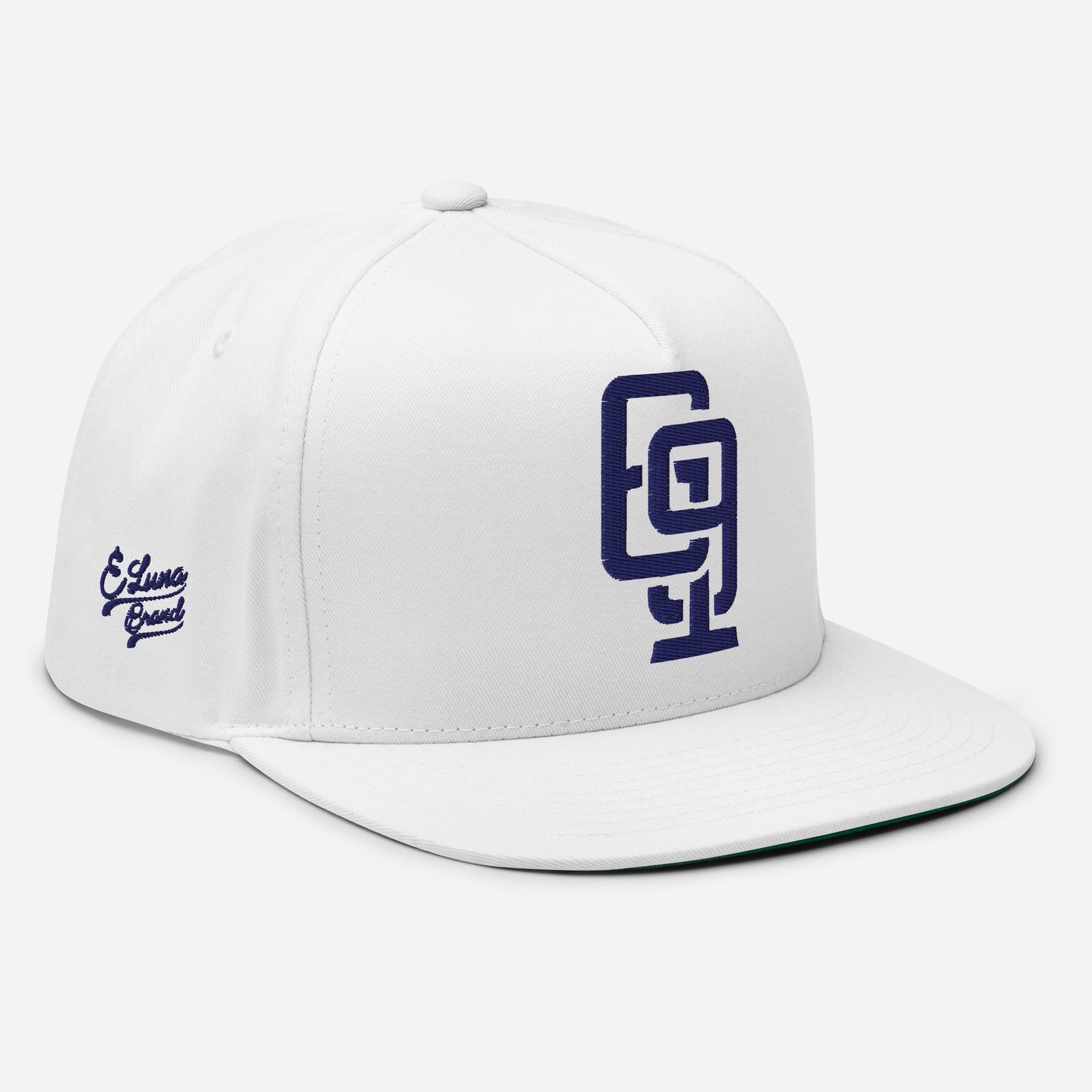 "619" Flat Bill Cap | Yupoong 6007 | E Luna Brand PREMIUM Quadcrest 4 Navy Thread Logos: Front, Left, Right Signature & Back [3D Puff Edition]