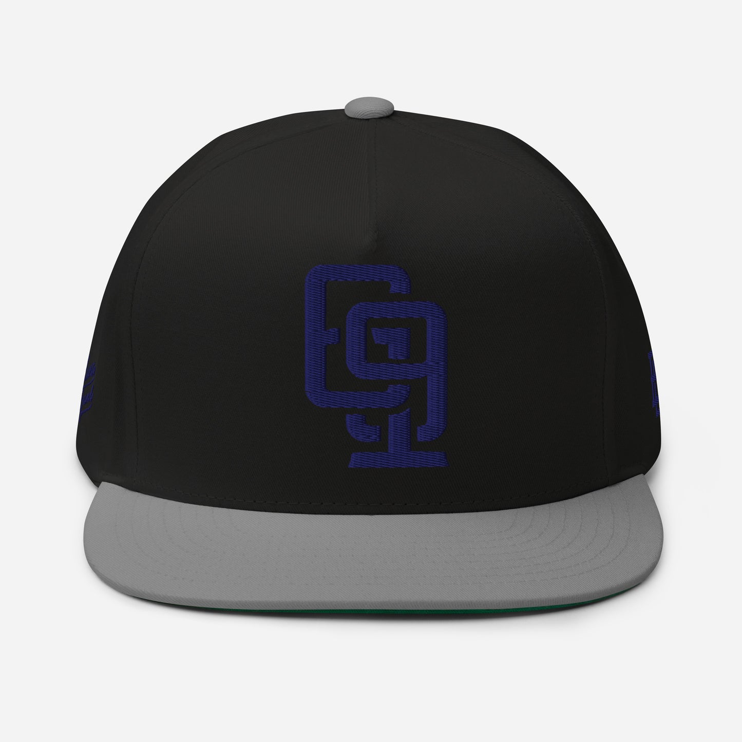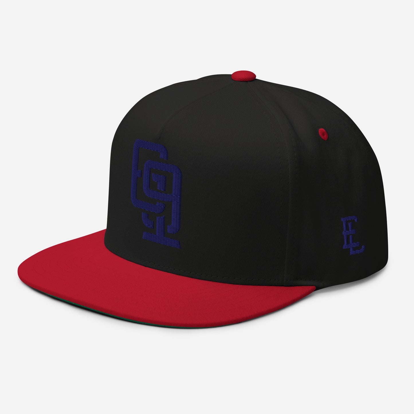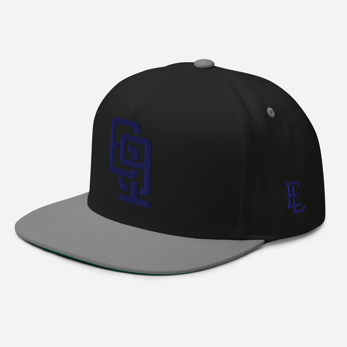 "619" Flat Bill Cap | Yupoong 6007 | E Luna Brand PREMIUM Quadcrest 4 Navy Thread Logos: Front, Left, Right Signature & Back [3D Puff Edition]