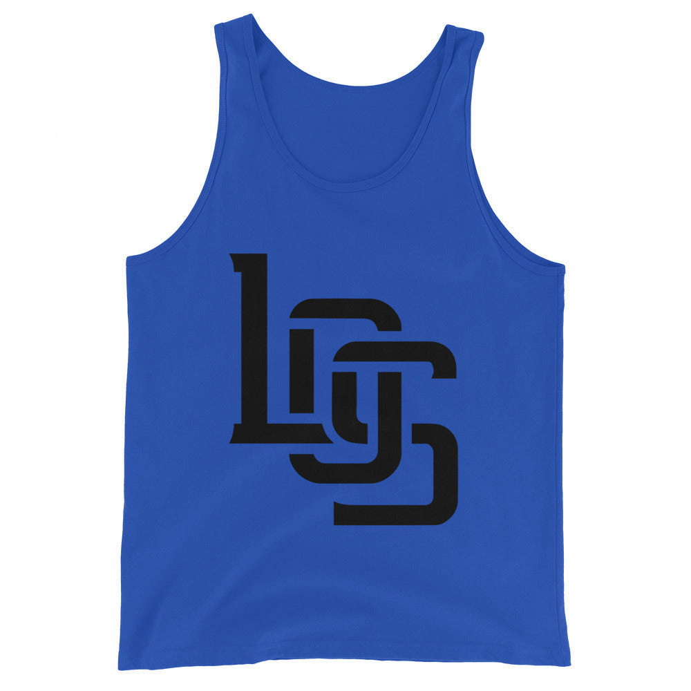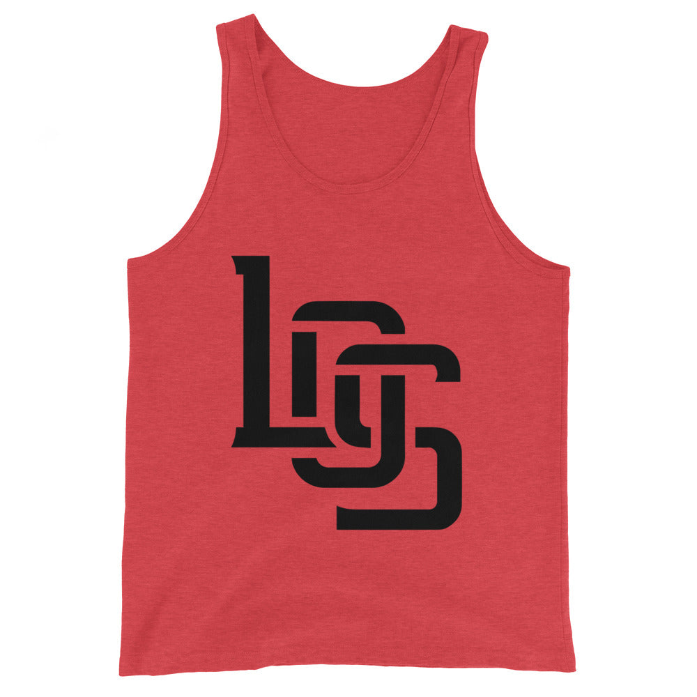 "LOS" Men’s Staple Tank Top | Bella + Canvas 3480 | E Luna Brand CHOICE Duocrest 2 Black Logos: Front Center (Large) & Outside Back Label