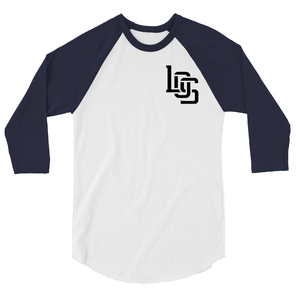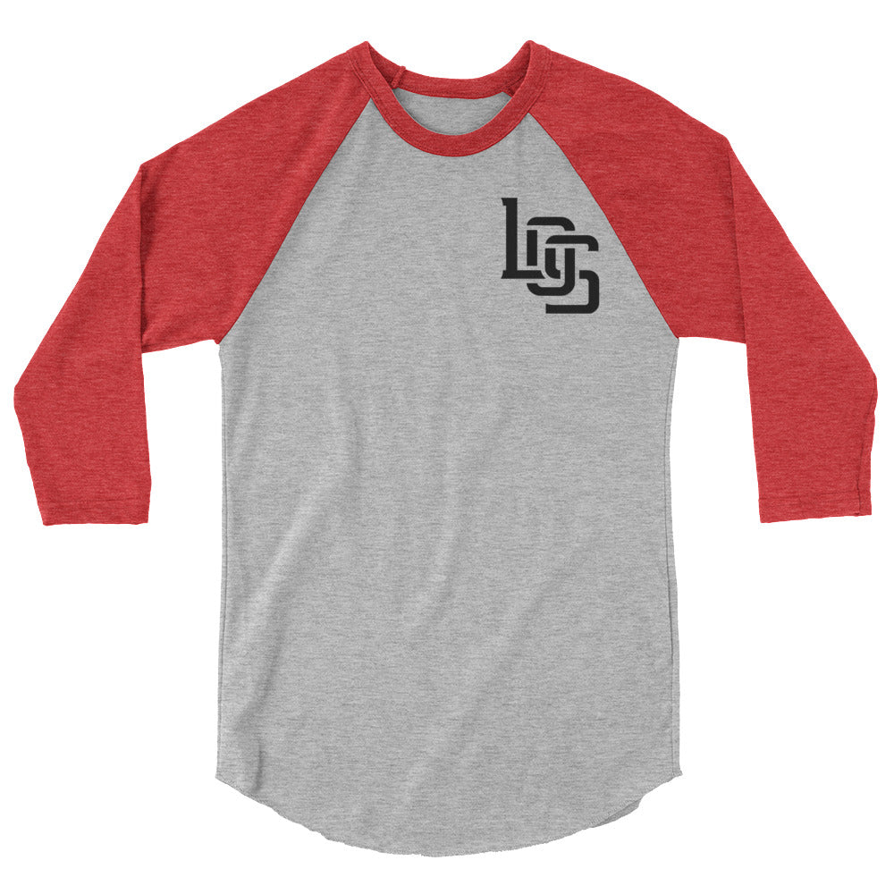 "LOS" Unisex 3/4 Sleeve Raglan Shirt | Tultex 245 | E Luna Brand CHOICE Duocrest 2 Black Logos: Upper Left Front & Outside Back Label