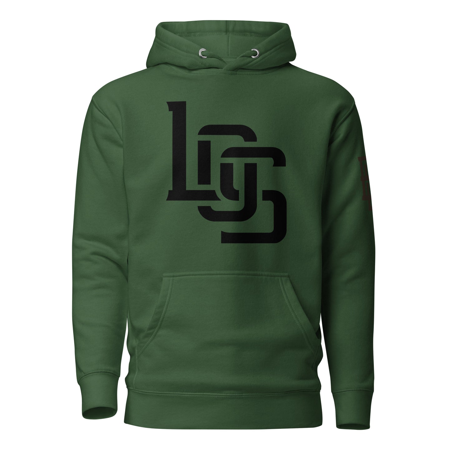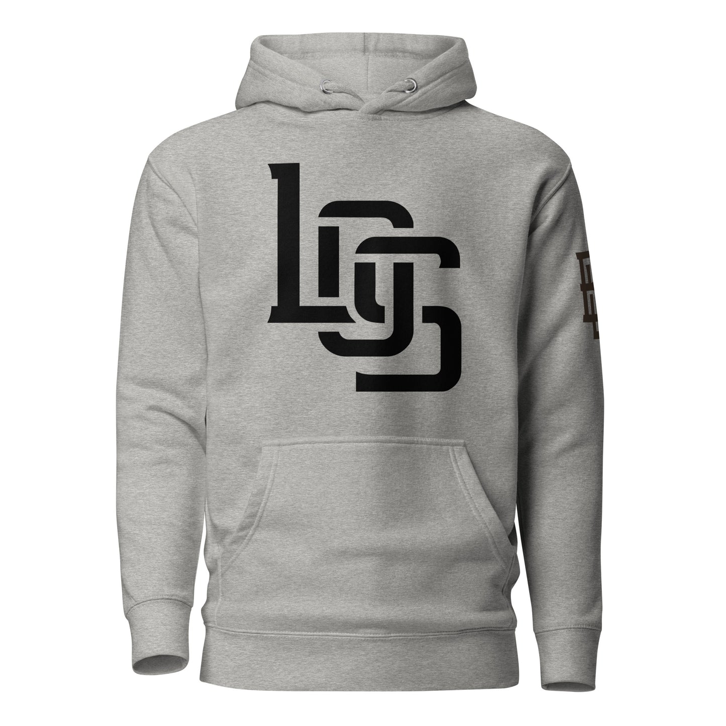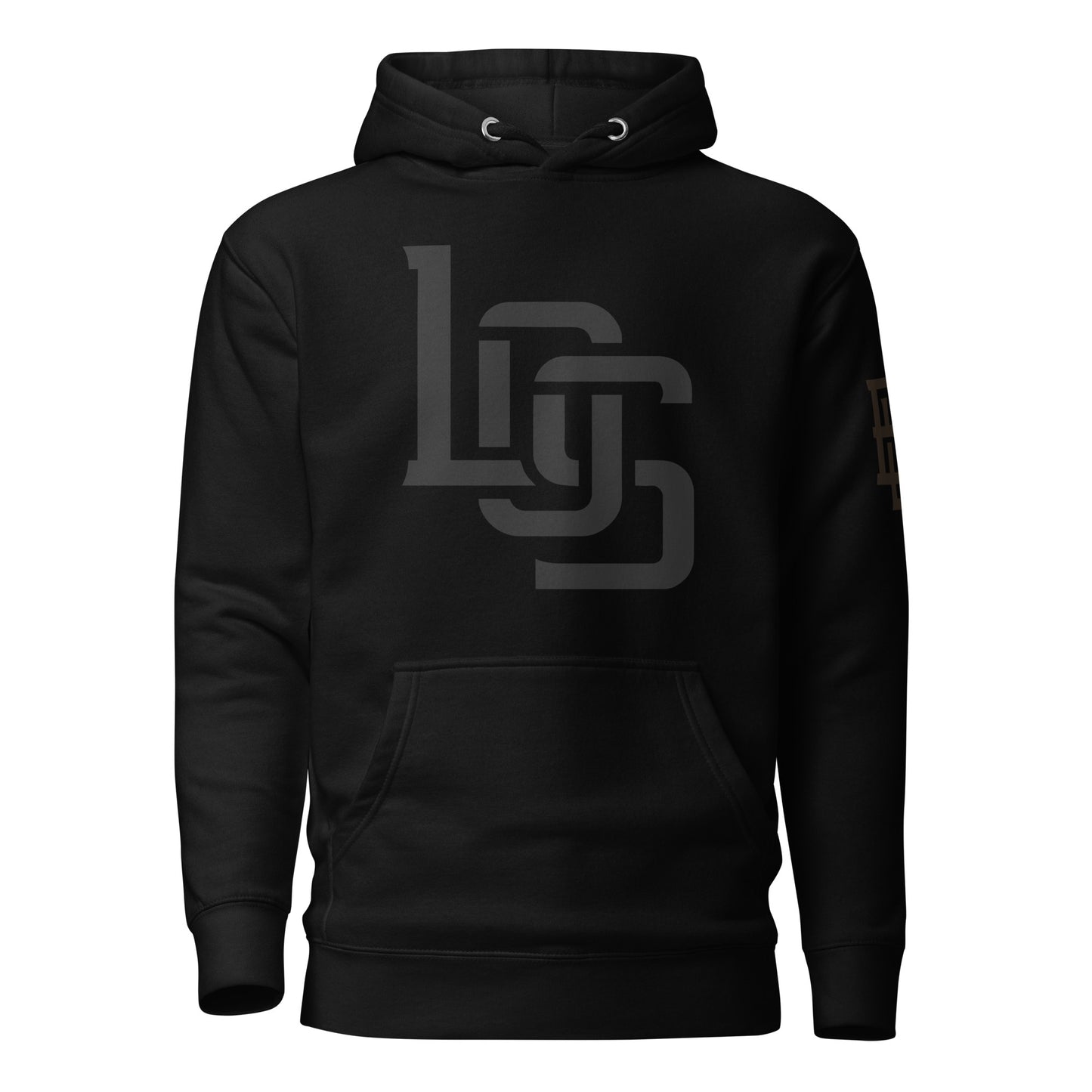 "LOS" Unisex Premium Hoodie | Cotton Heritage M2580 | E Luna Brand ESSENCE Tricrest 3 Black Logos: Front Center (Large), Left Arm & Outside Back Label