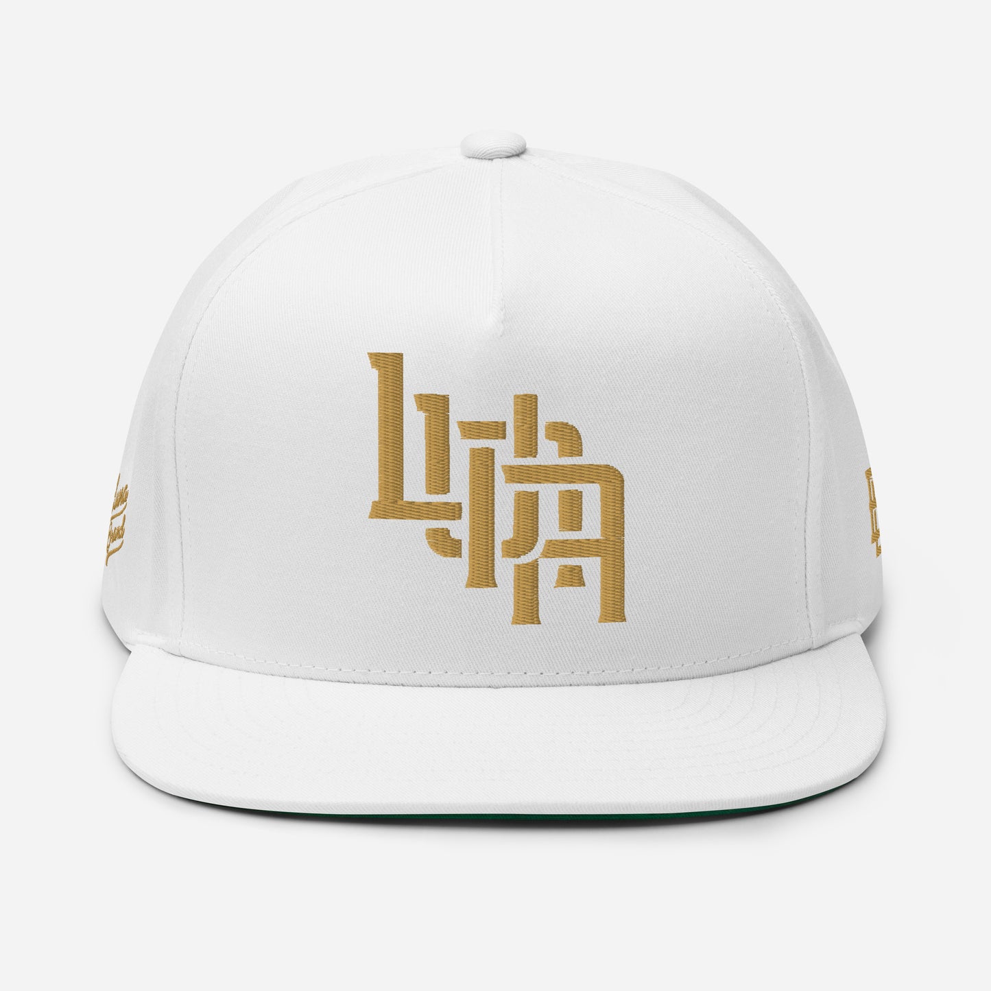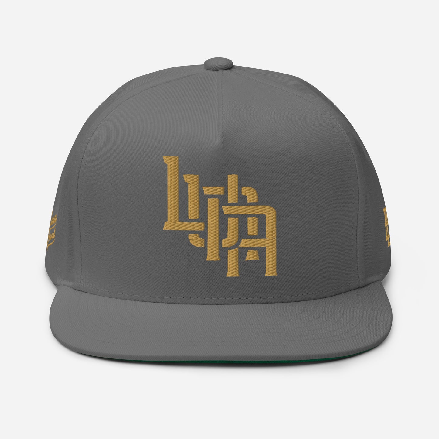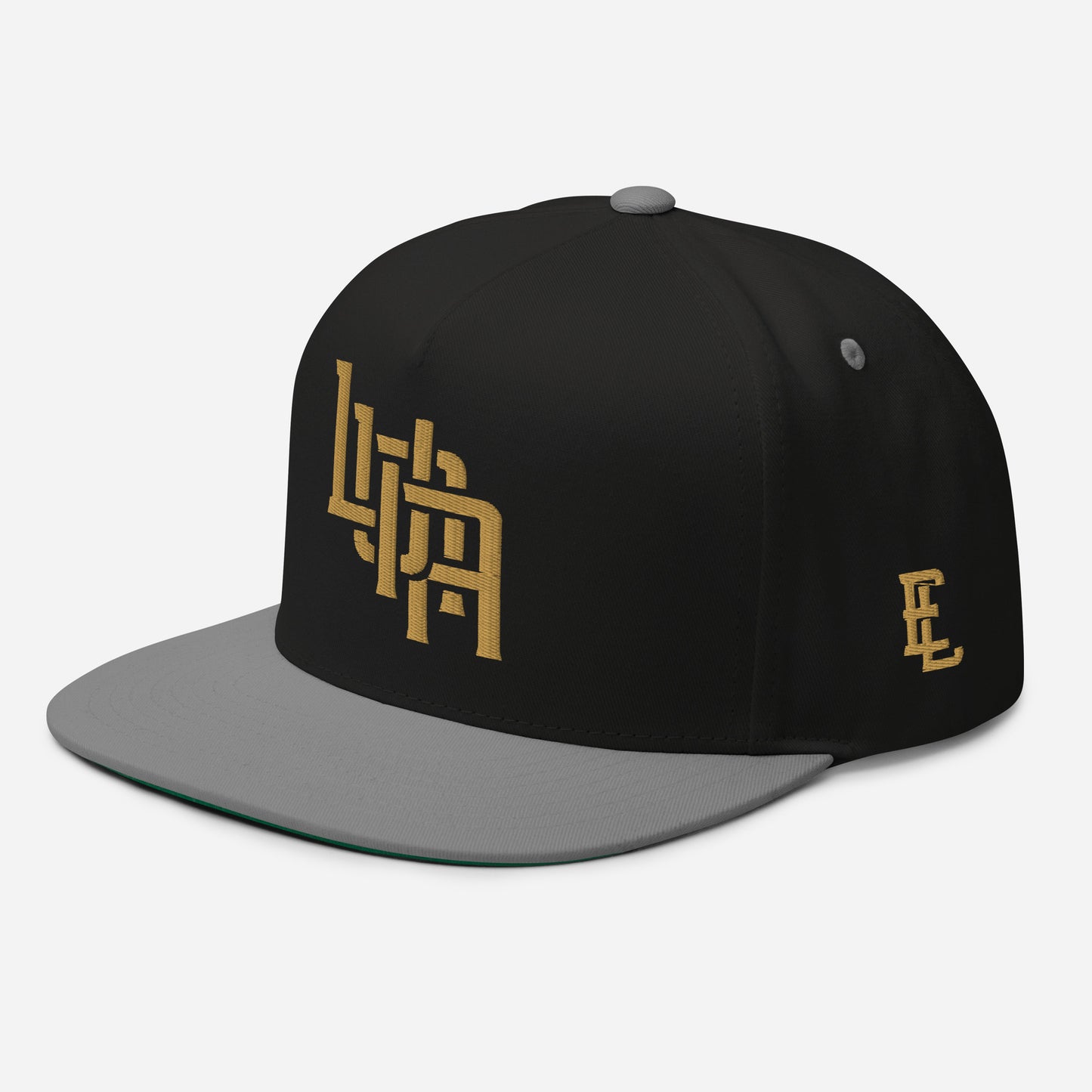 "LUNA" Flat Bill Cap | E Luna Brand PREMIUM | 4 Old Gold Thread Logos | 3D Puff Edition
