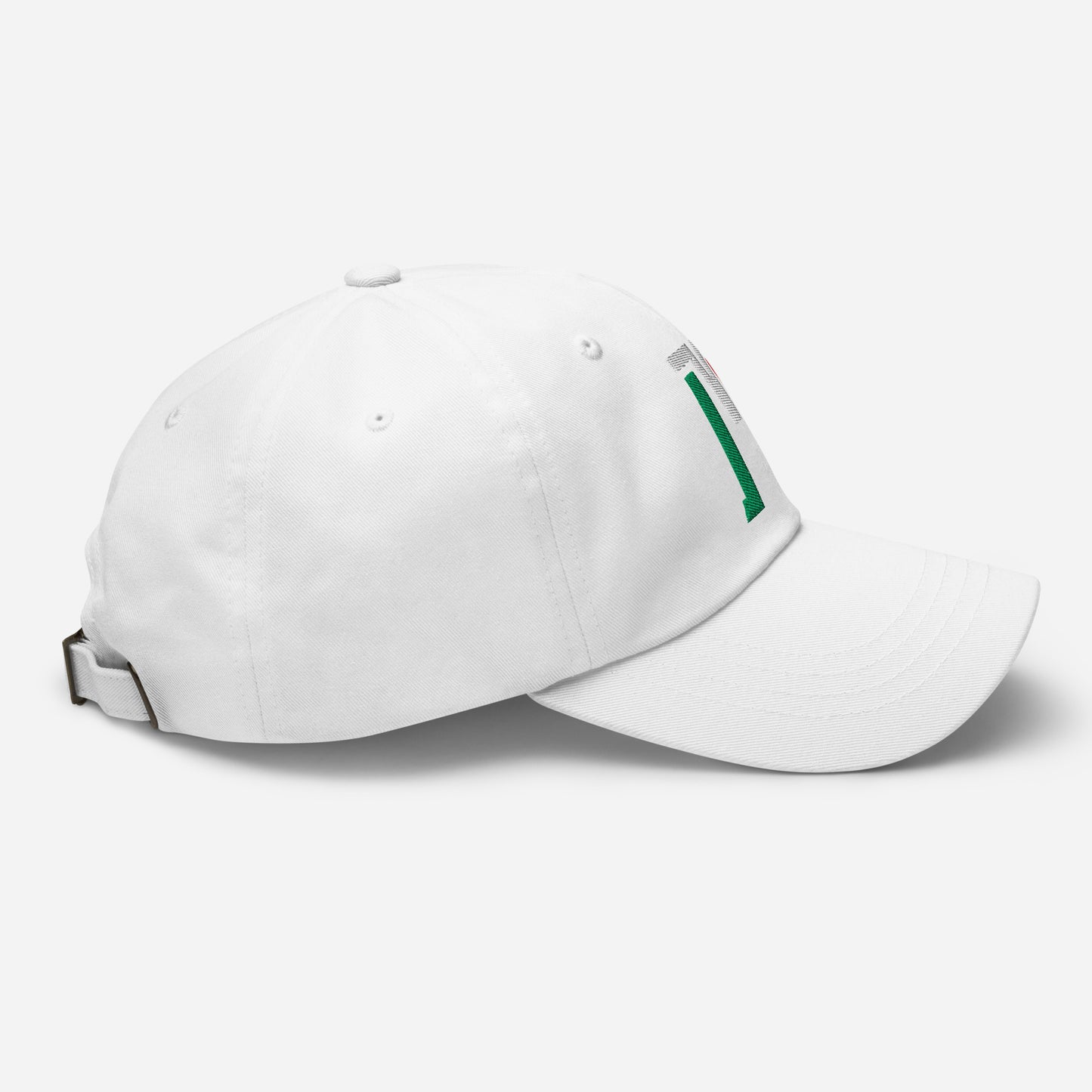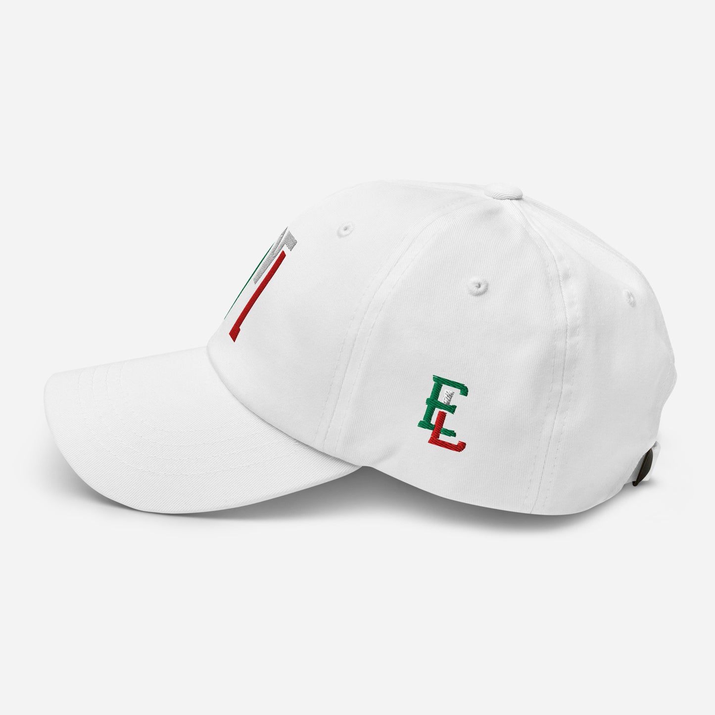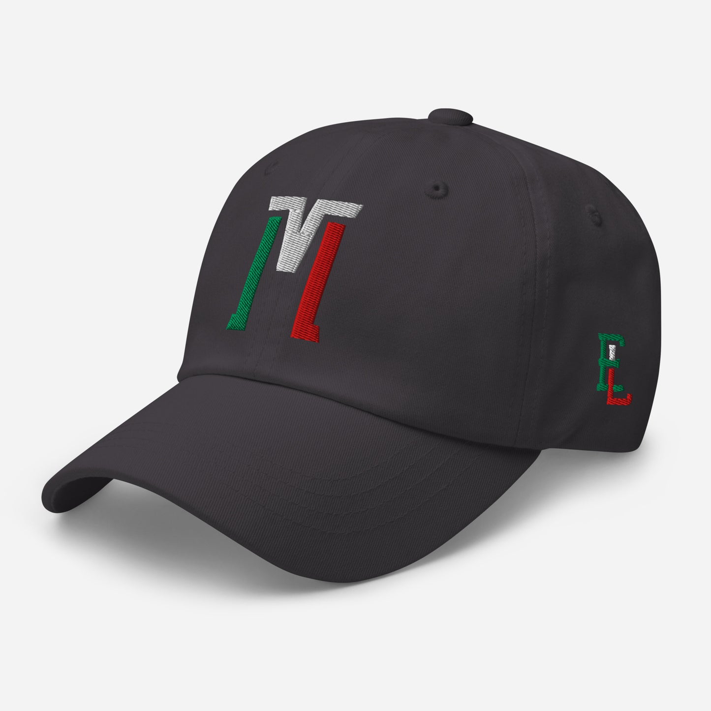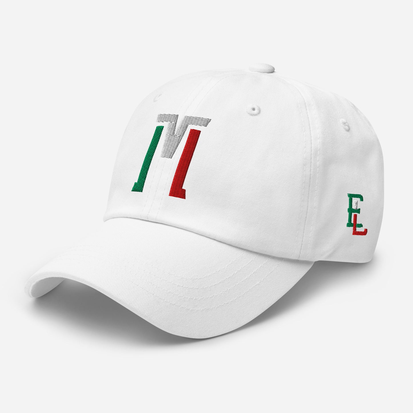 "M" Classic Dad Hat | E Luna Brand ESSENTIAL | 2 Green, White, Red Thread Logos