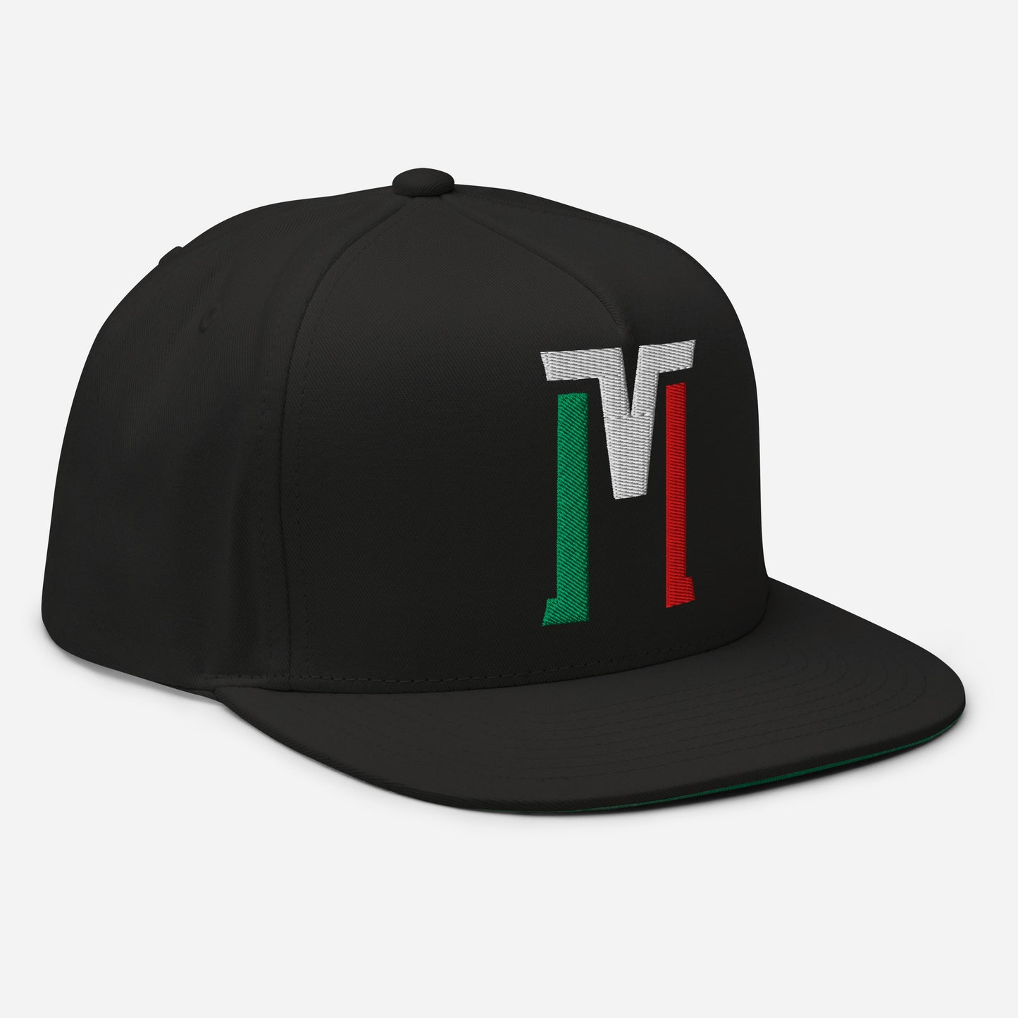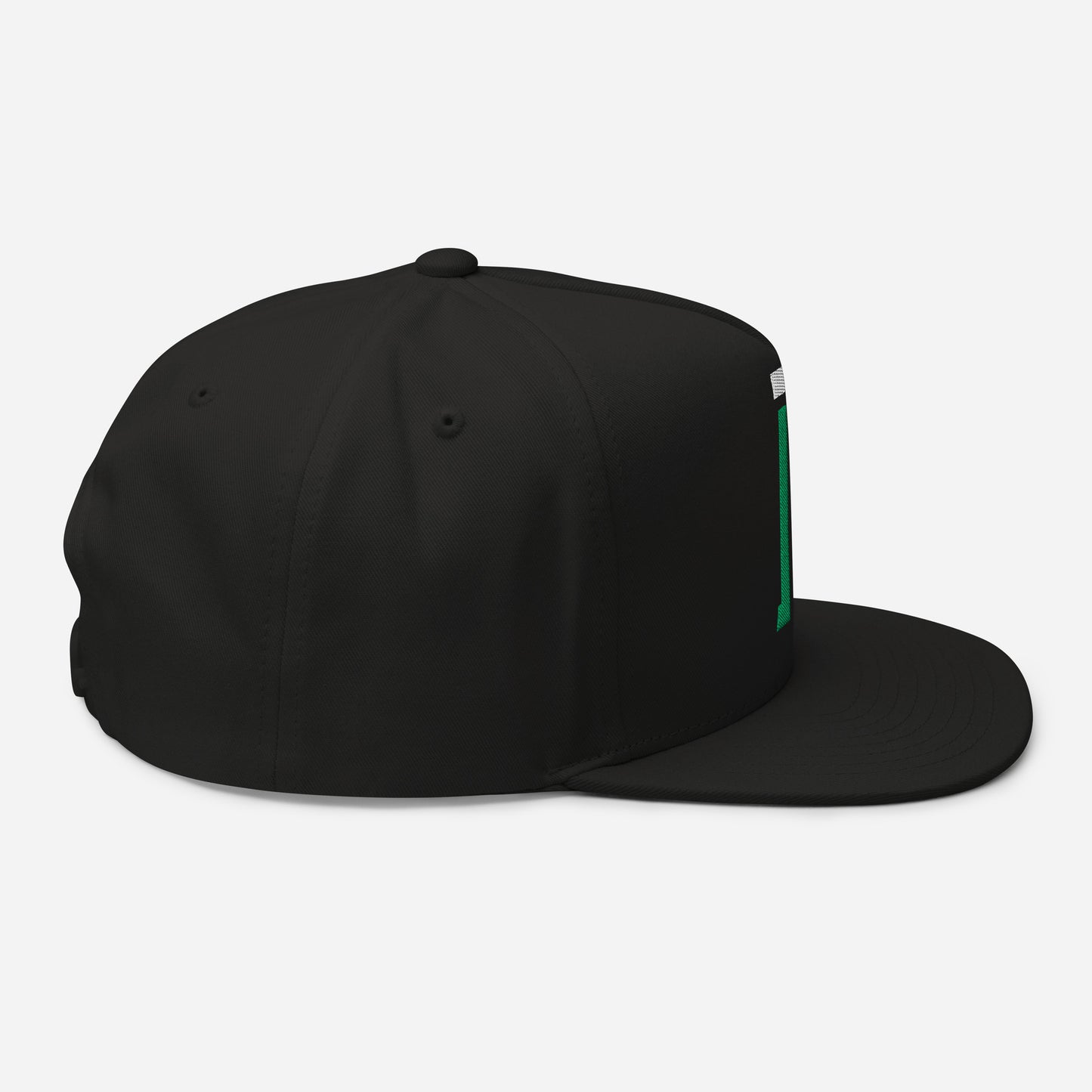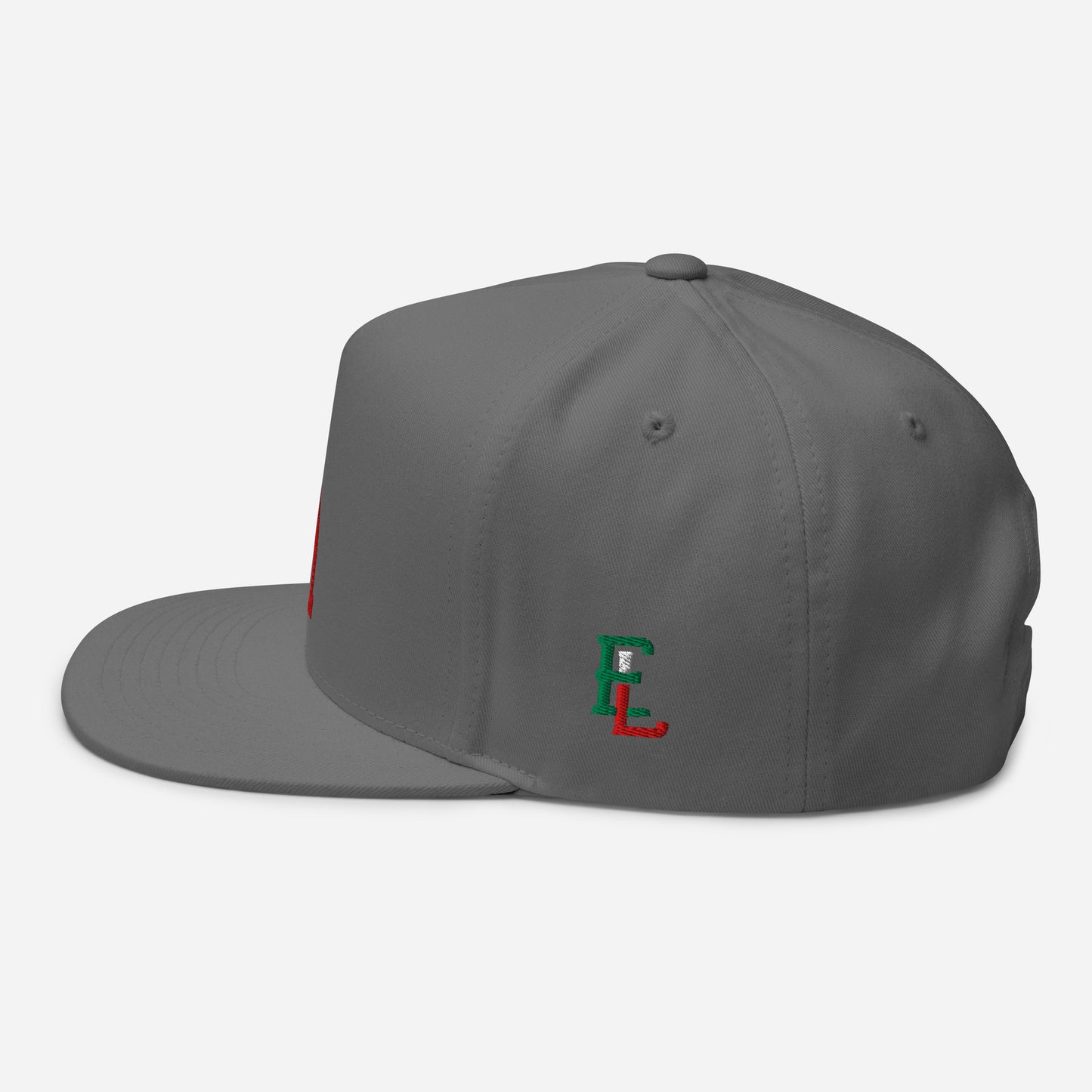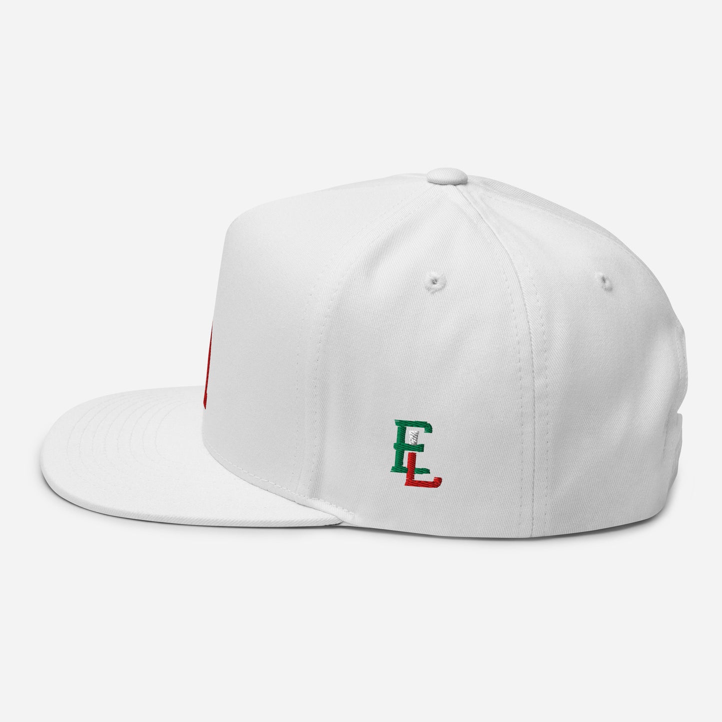 "M" Flat Bill Cap | E Luna Brand ESSENTIAL | 2 Green, White, Red Thread Logos