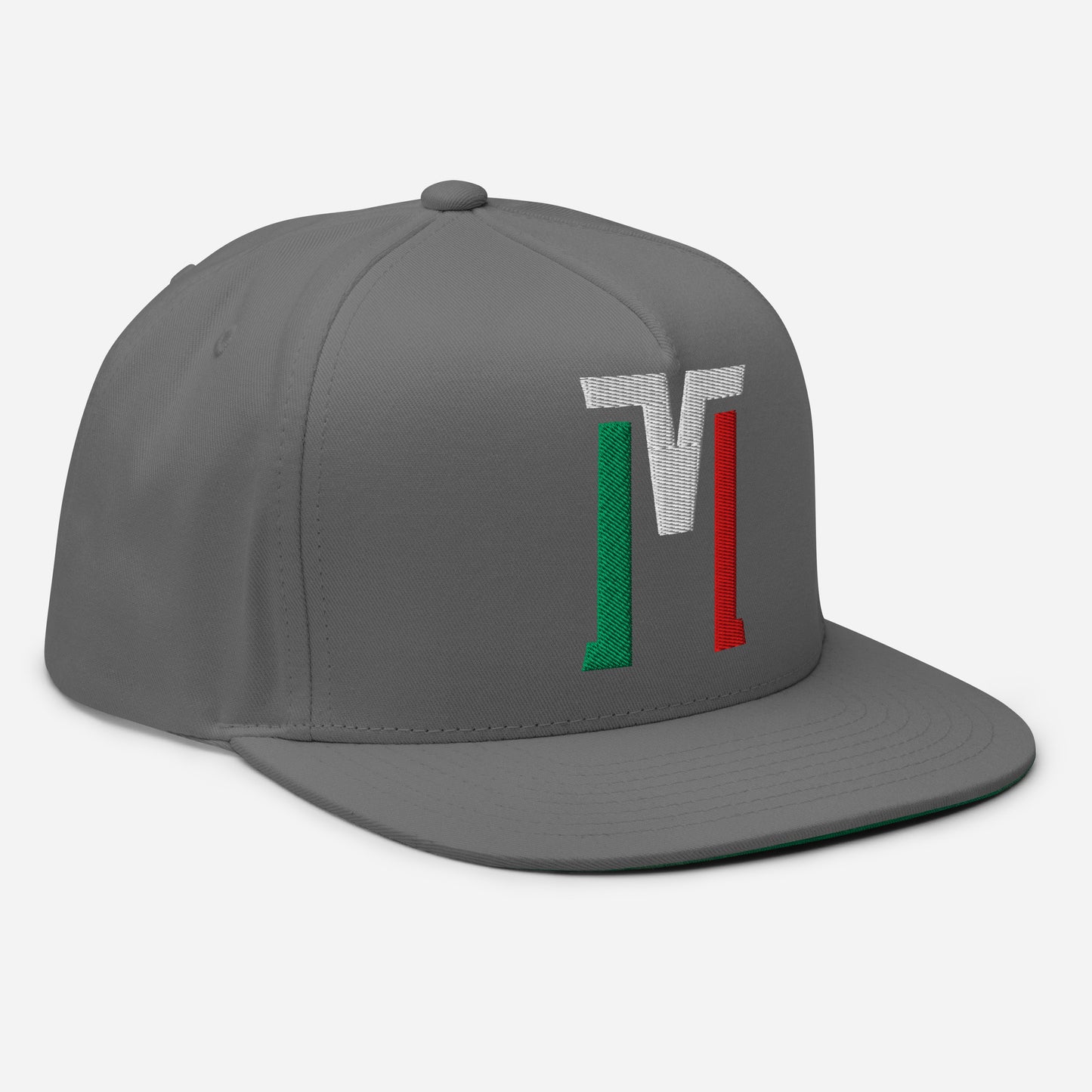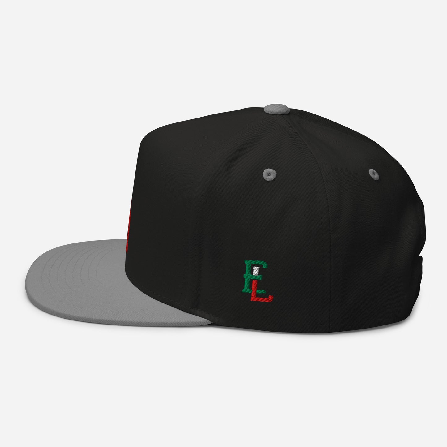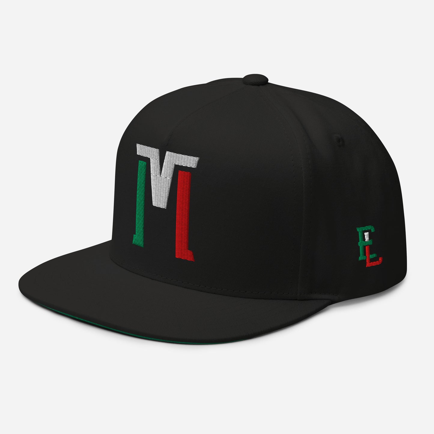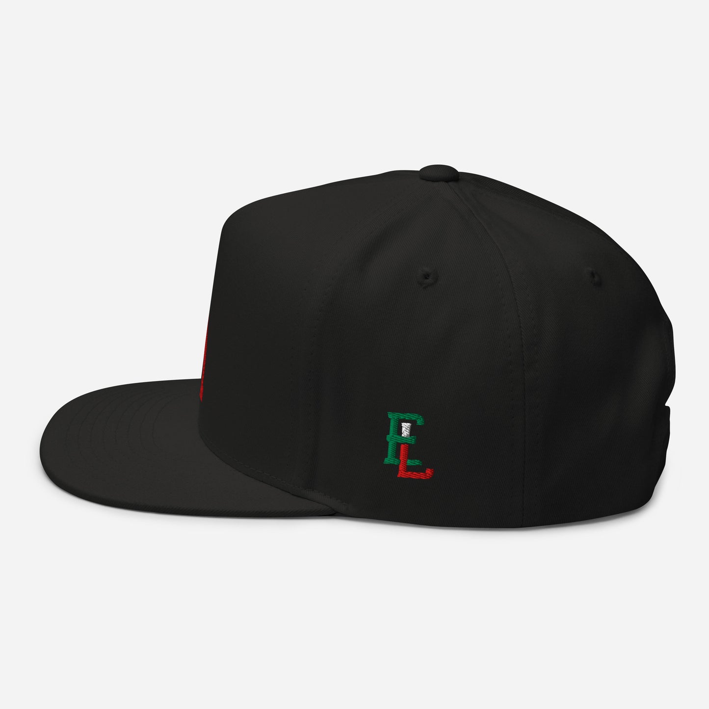 "M" Flat Bill Cap | E Luna Brand ESSENTIAL | 2 Green, White, Red Thread Logos