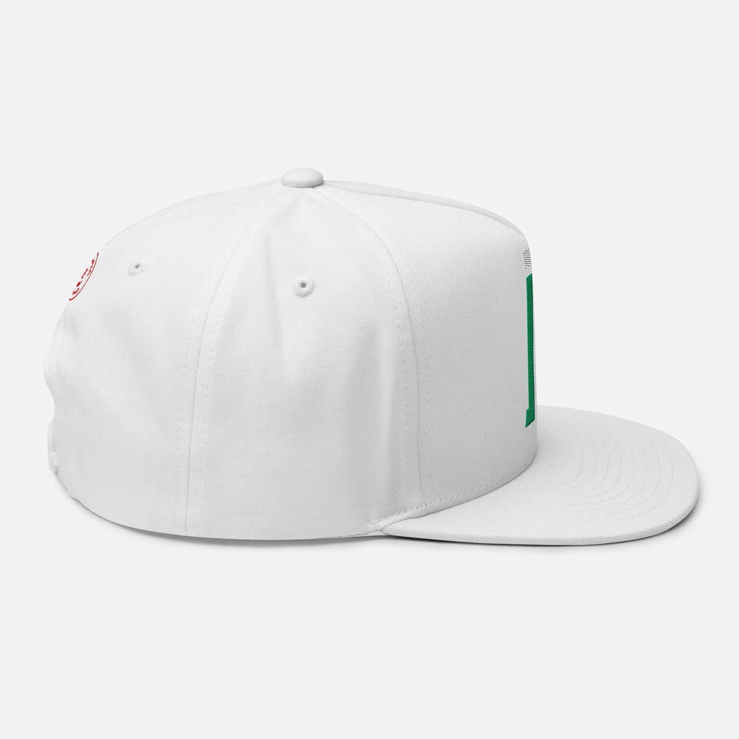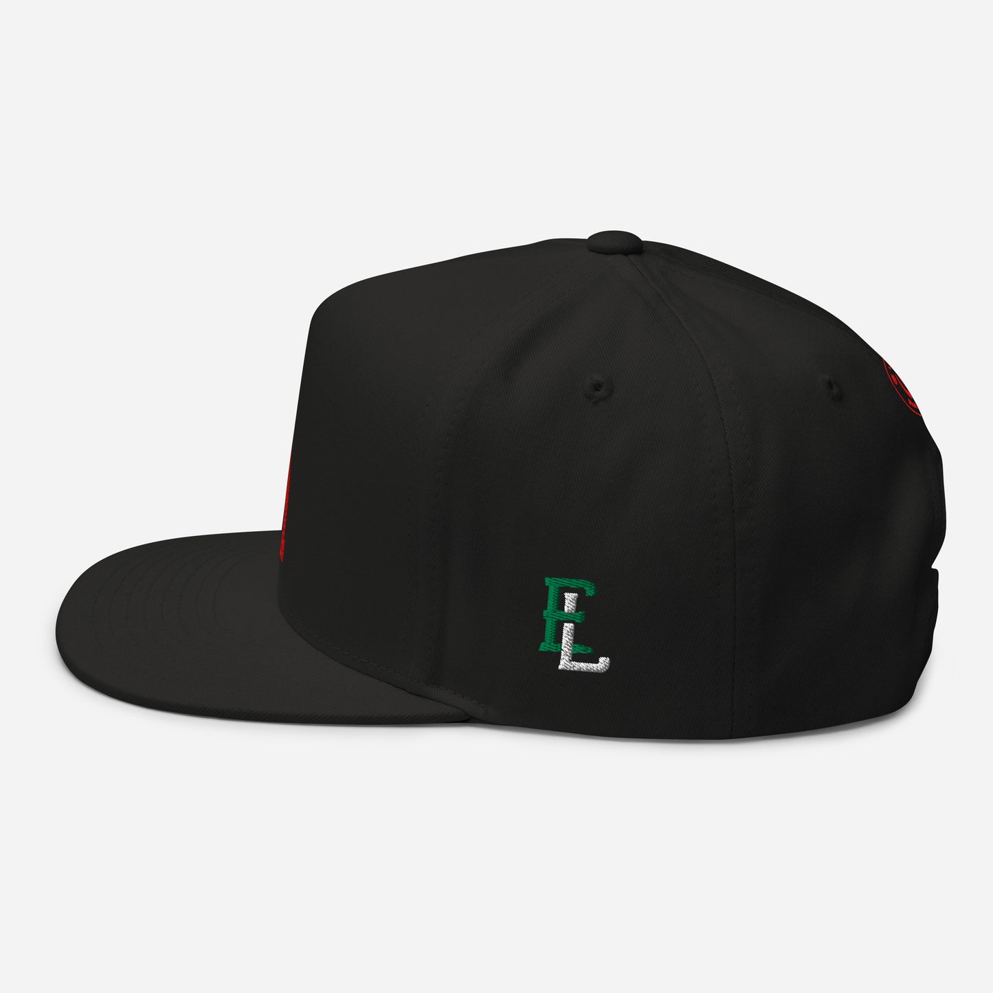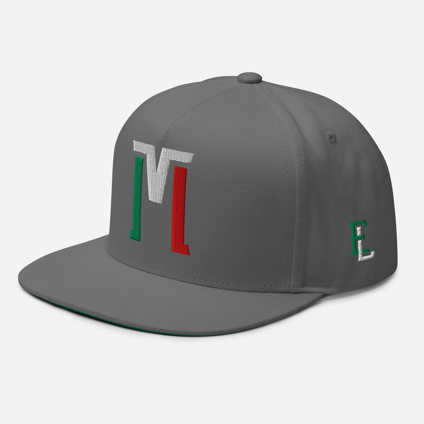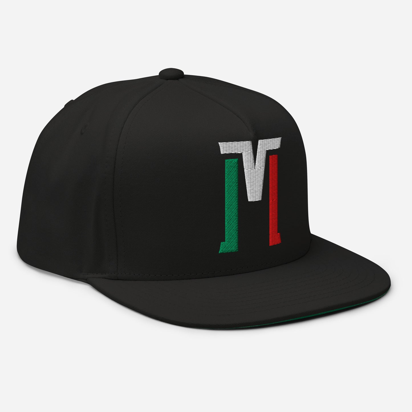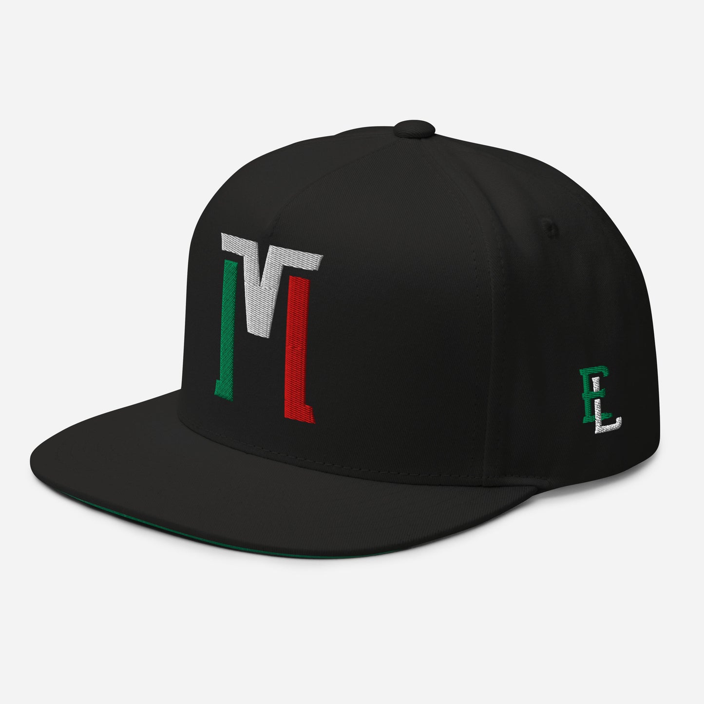 "M" Flat Bill Cap | E Luna Brand SELECT | 3 Green, White, Red Thread Logos | 3D Puff Edition