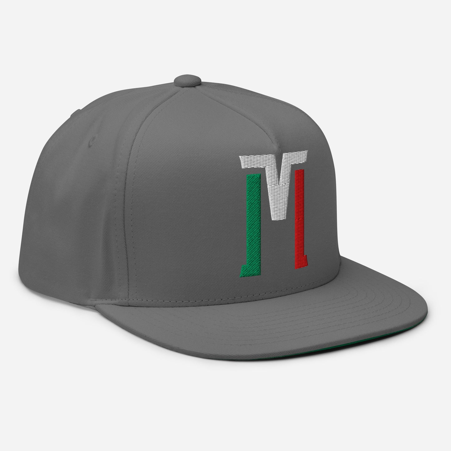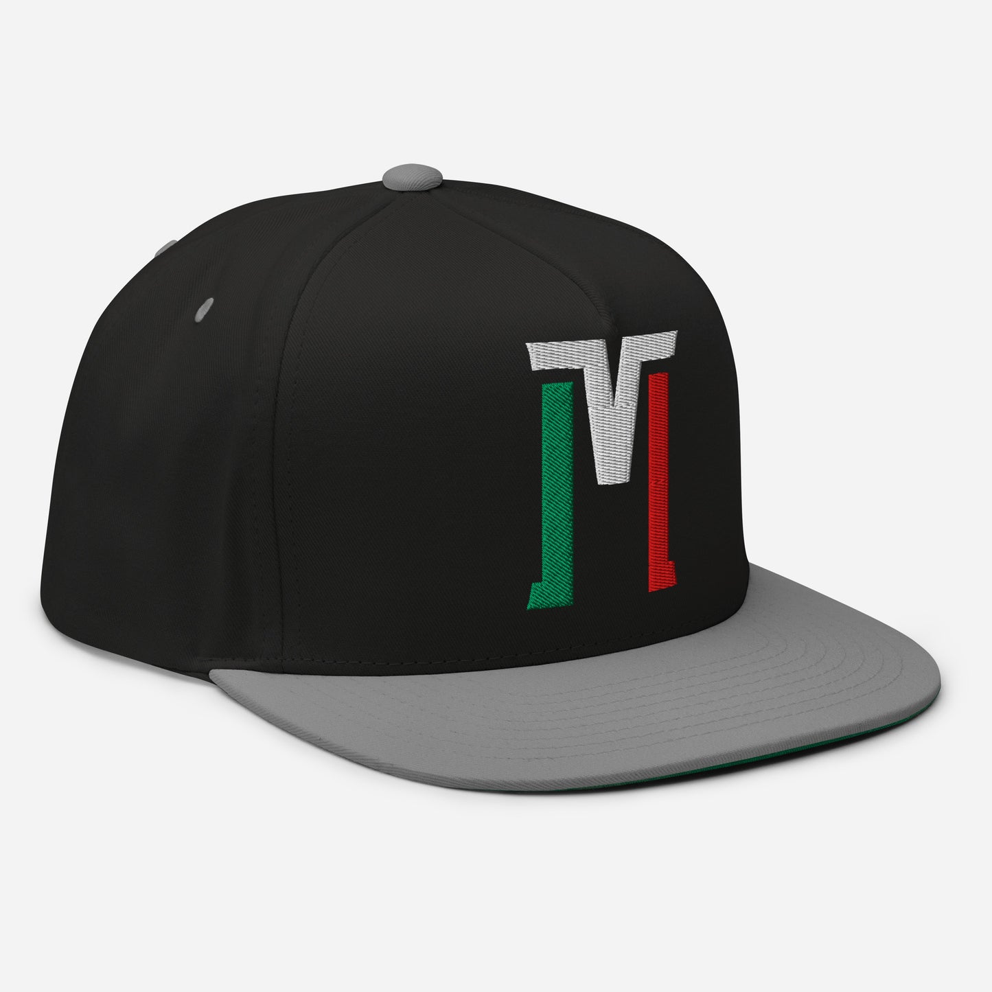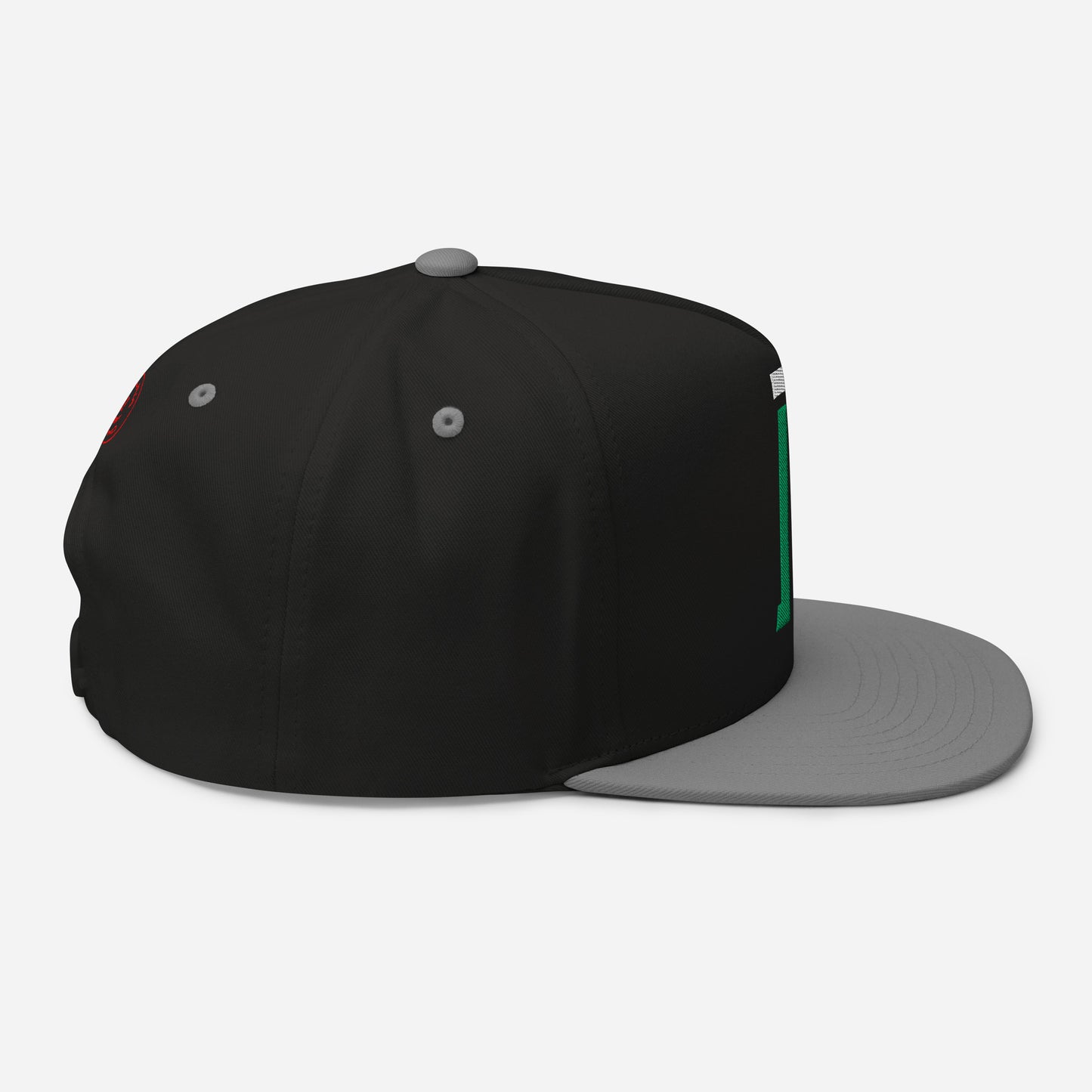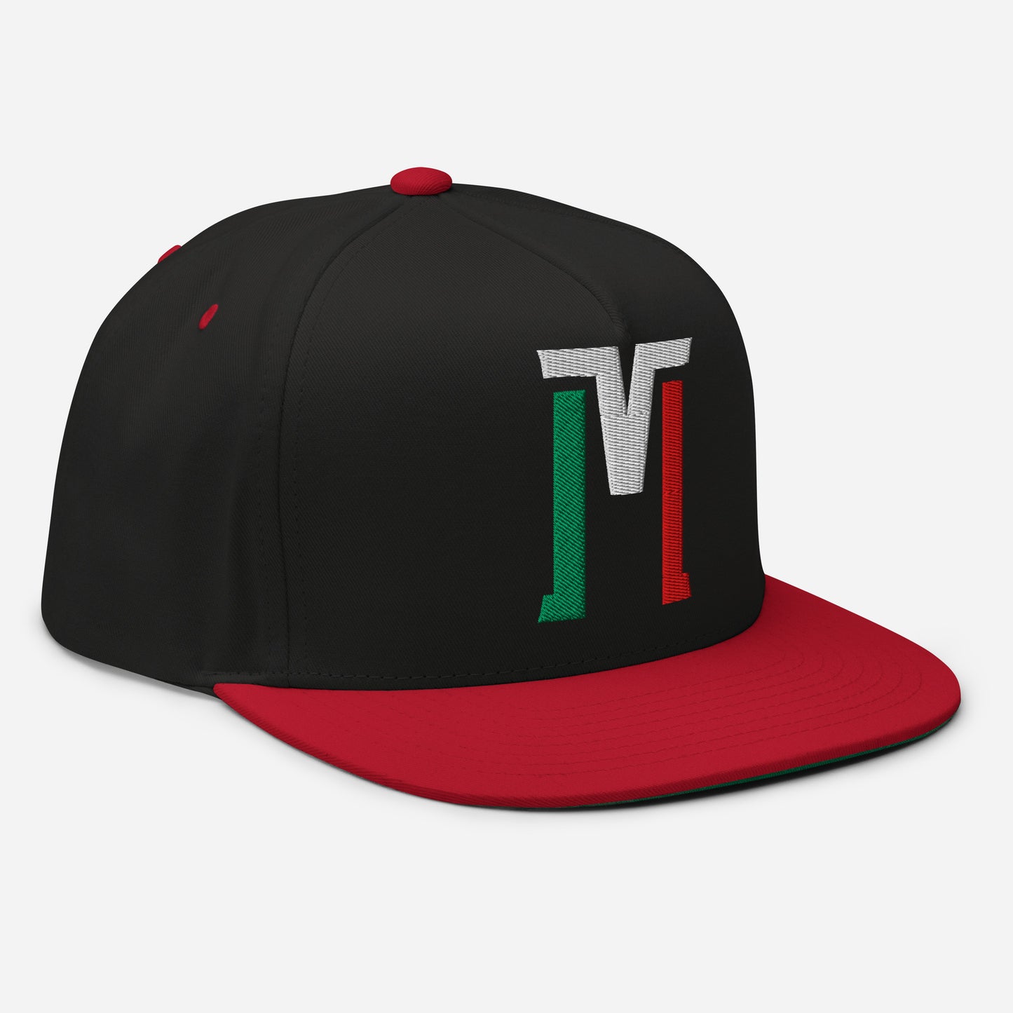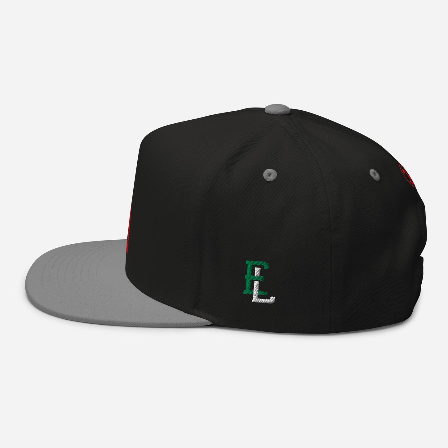 "M" Flat Bill Cap | E Luna Brand SELECT | 3 Green, White, Red Thread Logos | 3D Puff Edition