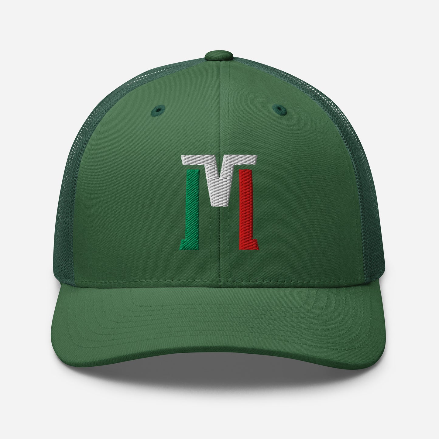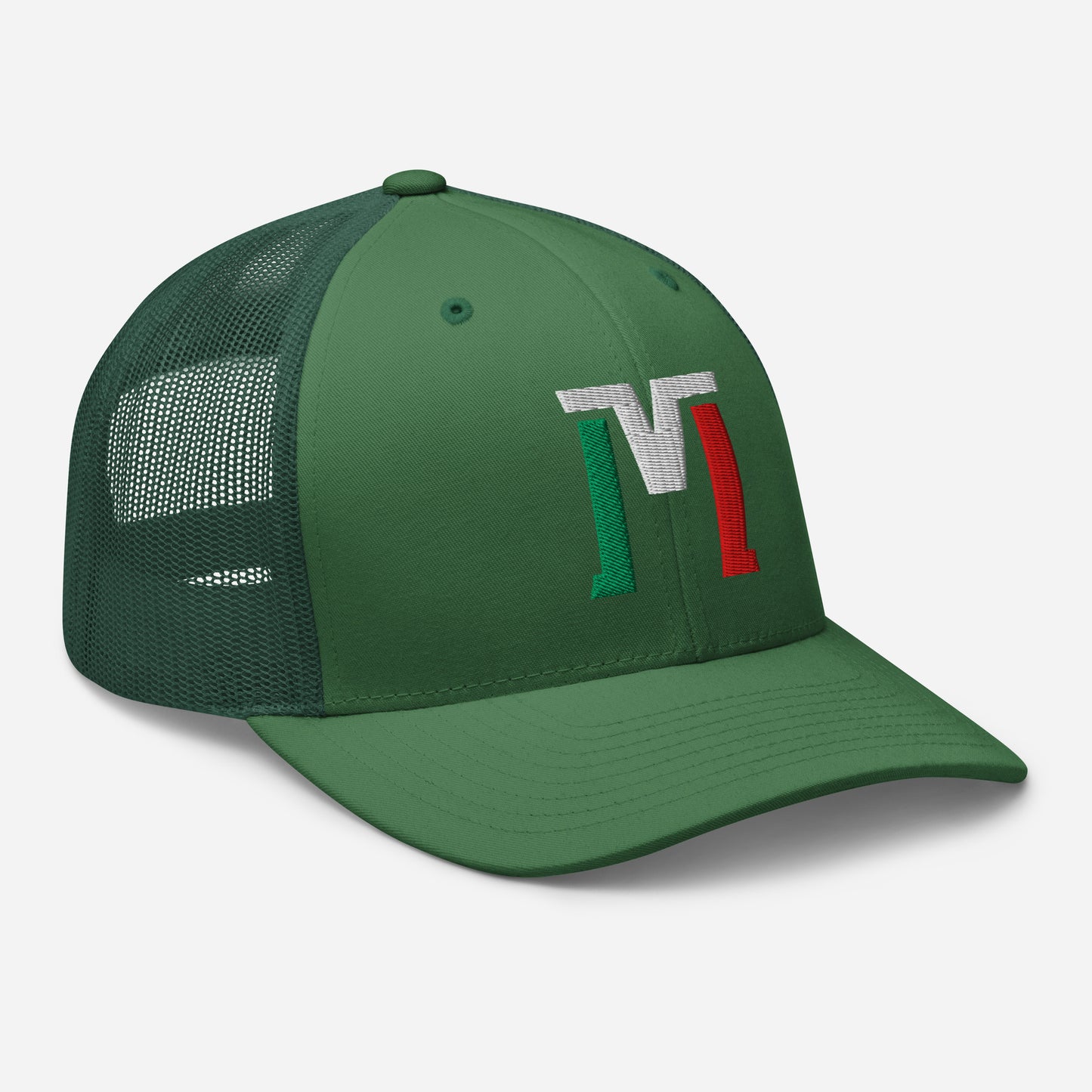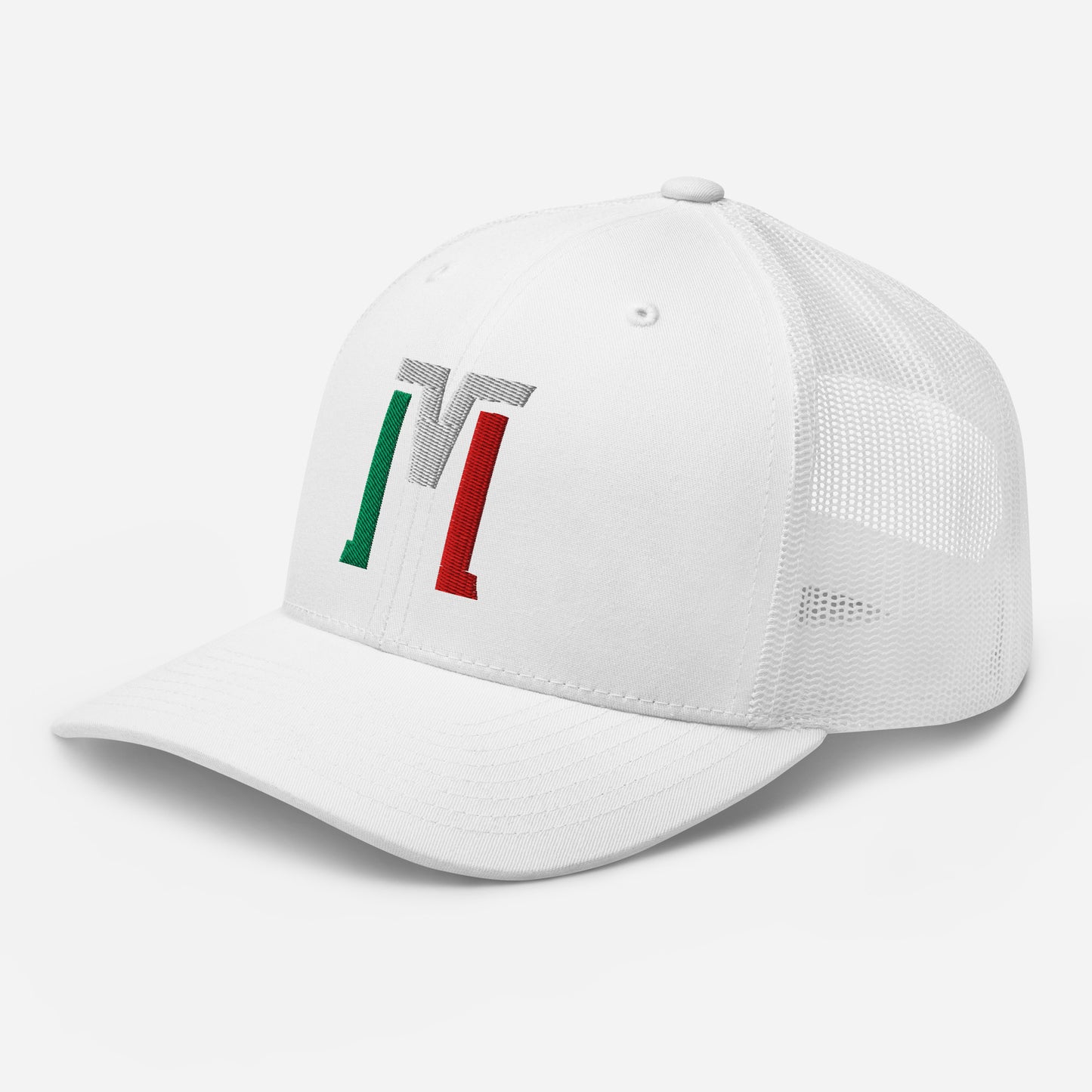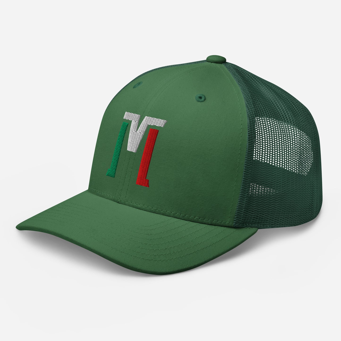 "M" Retro Trucker Hat | E Luna Brand CLASSIC | 1 Green, White, Red Thread Logo