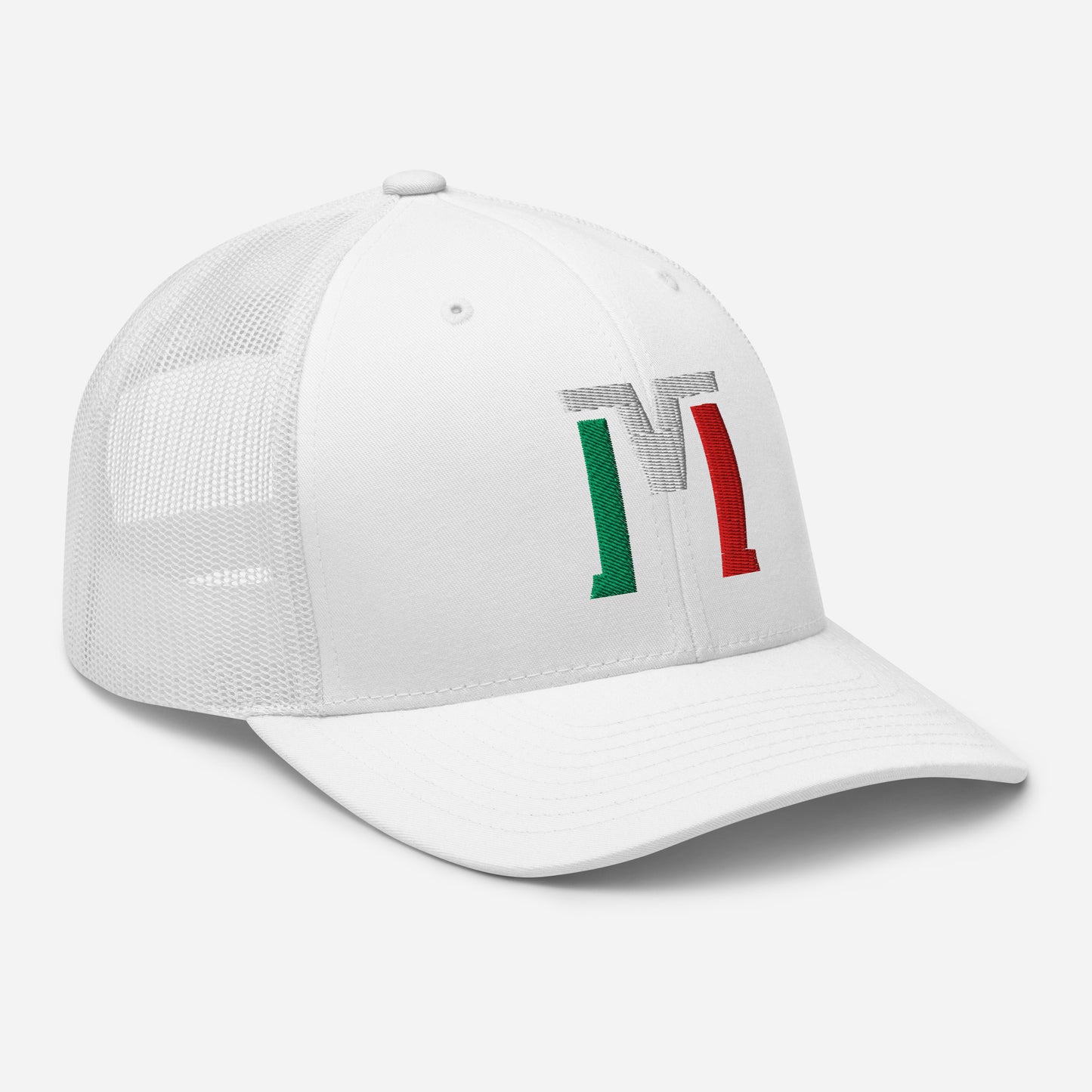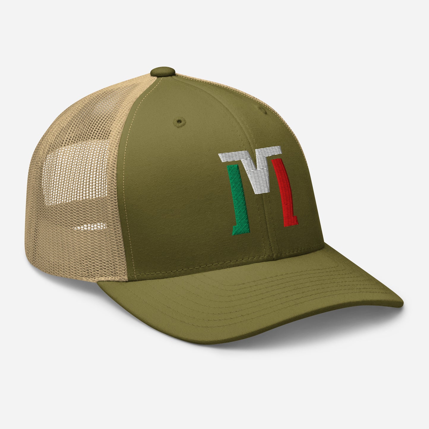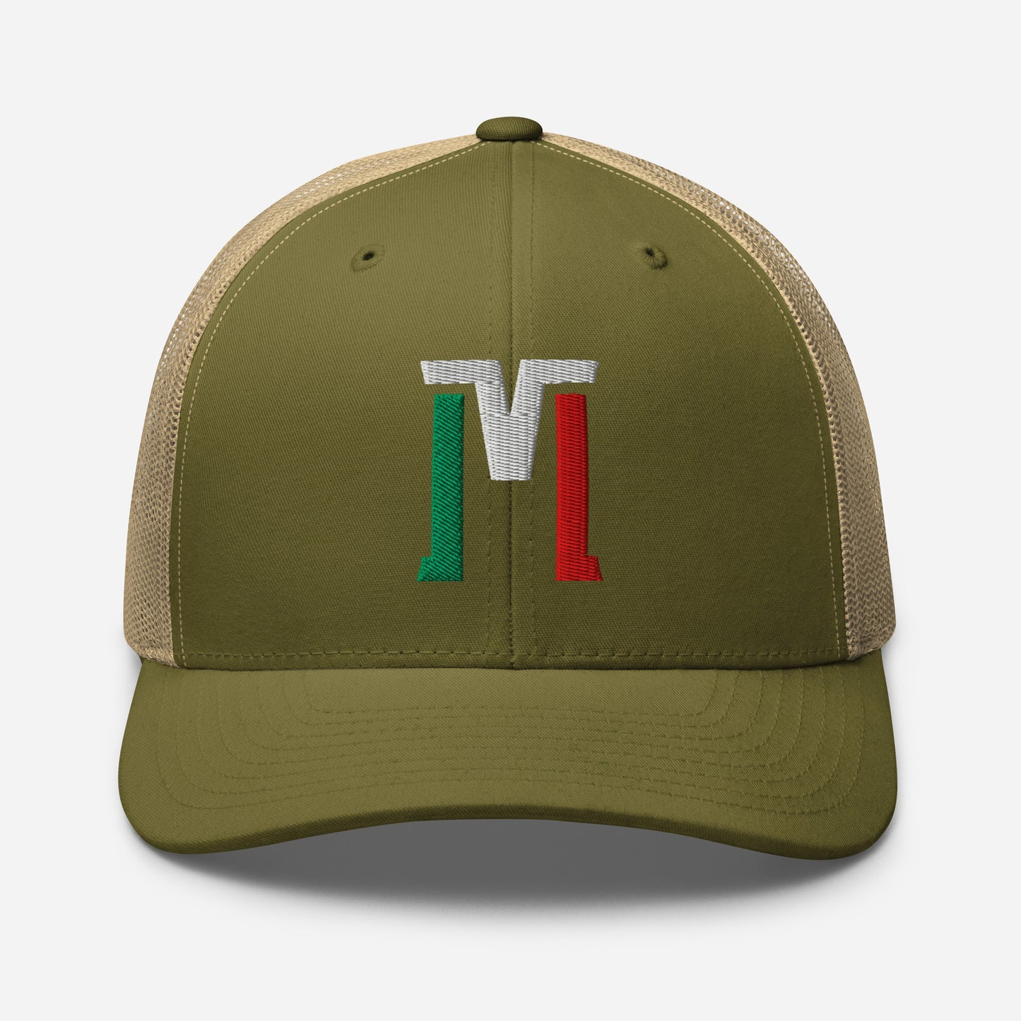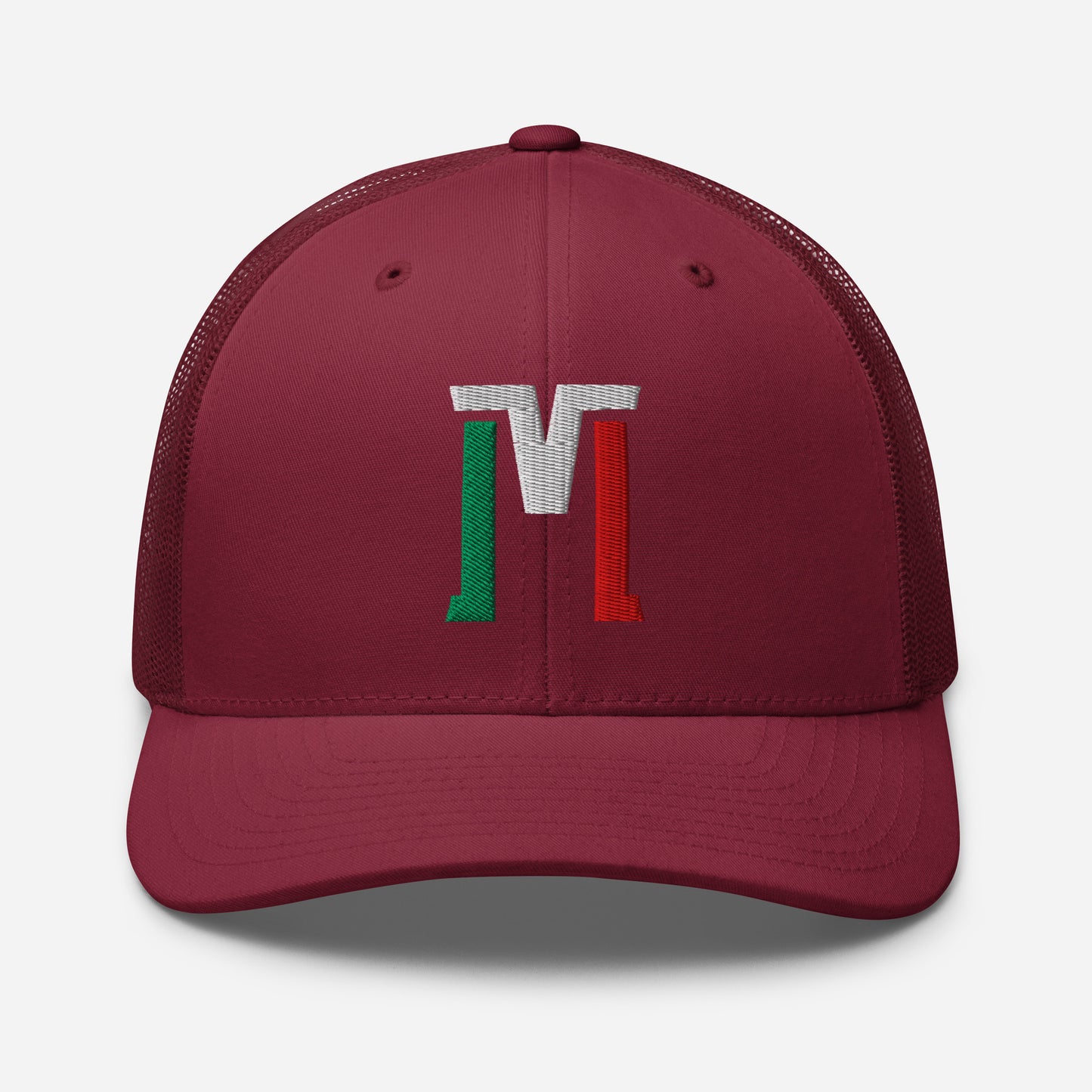 "M" Retro Trucker Hat | E Luna Brand CLASSIC | 1 Green, White, Red Thread Logo