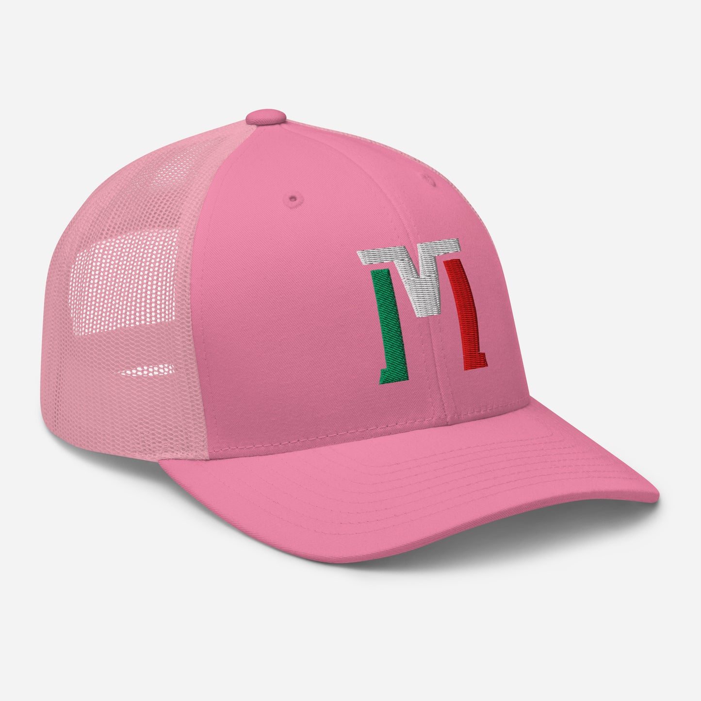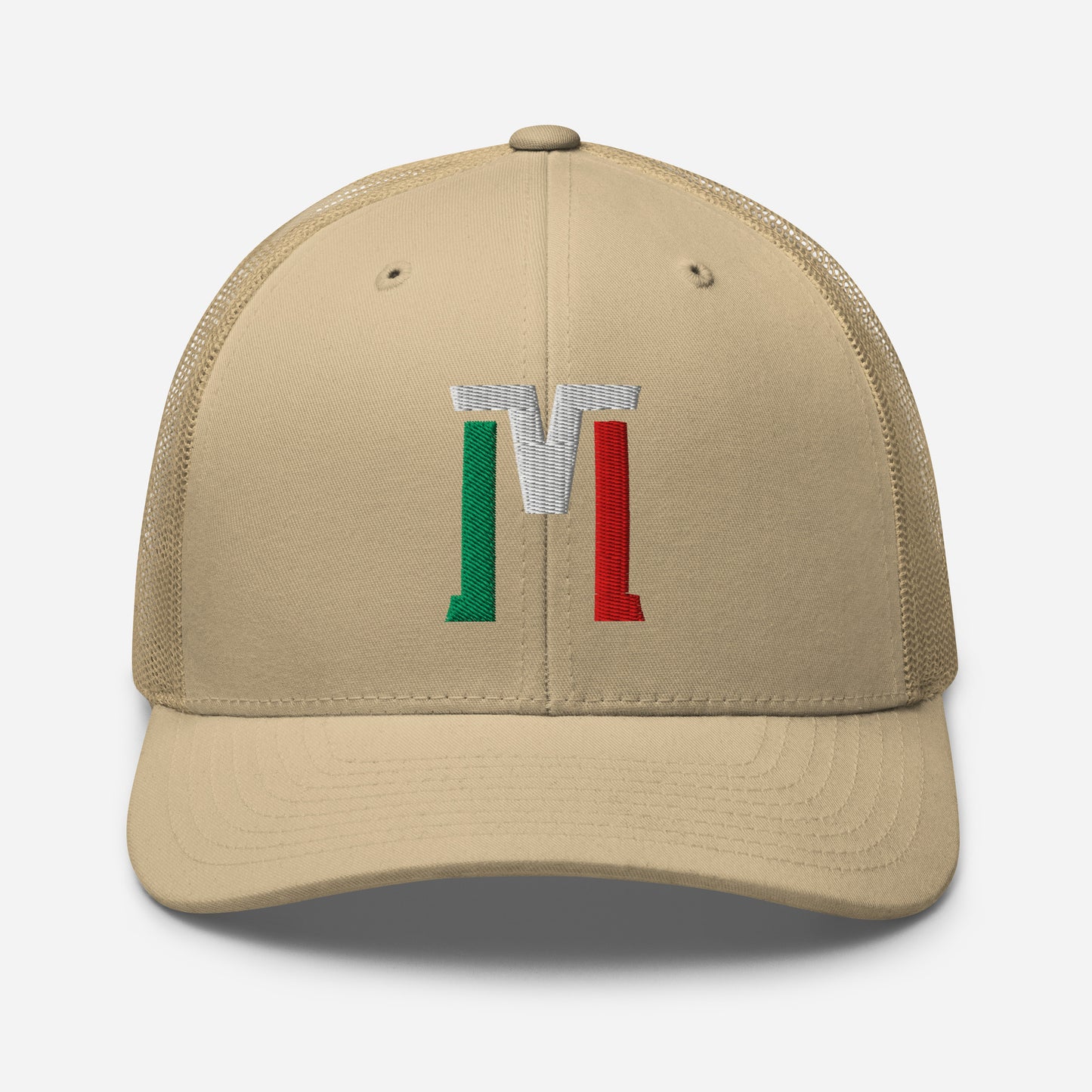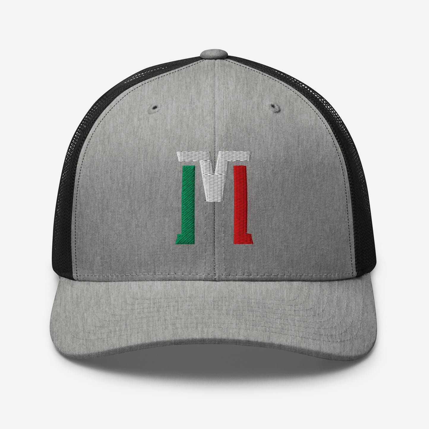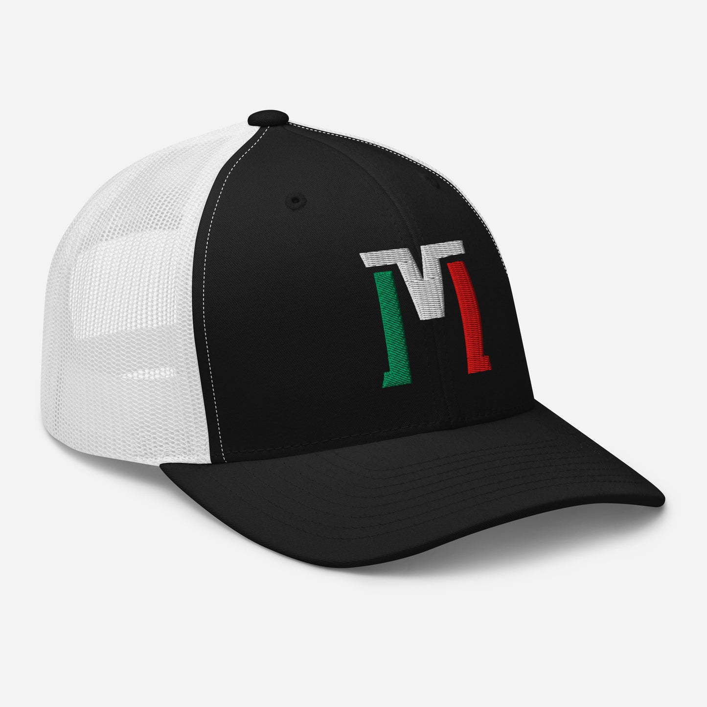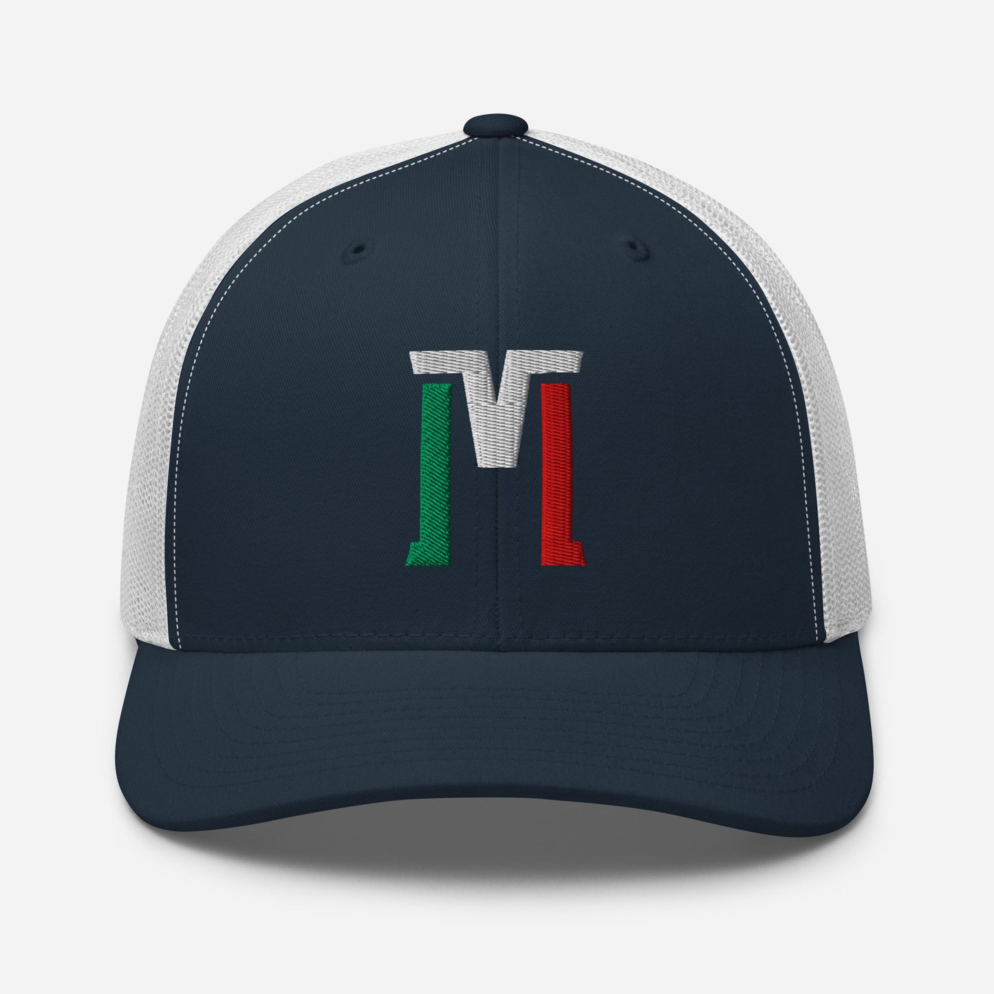 "M" Retro Trucker Hat | E Luna Brand CLASSIC | 1 Green, White, Red Thread Logo