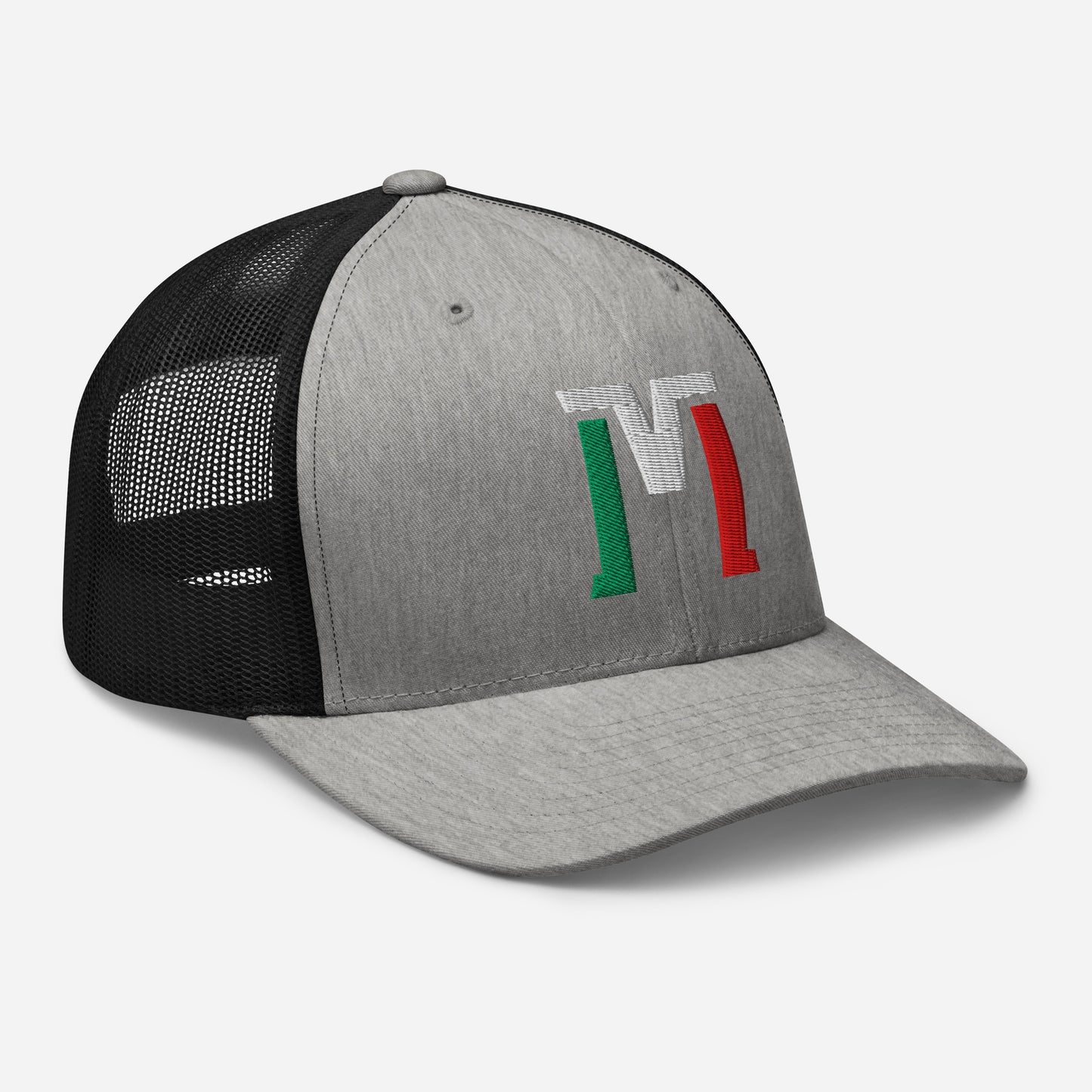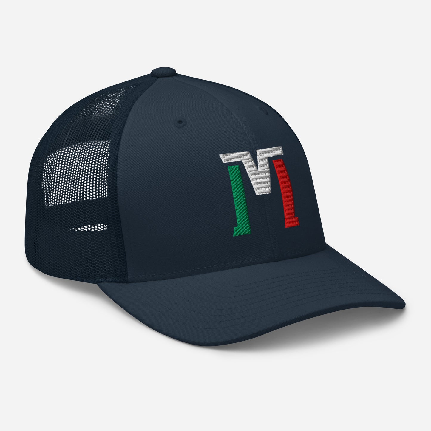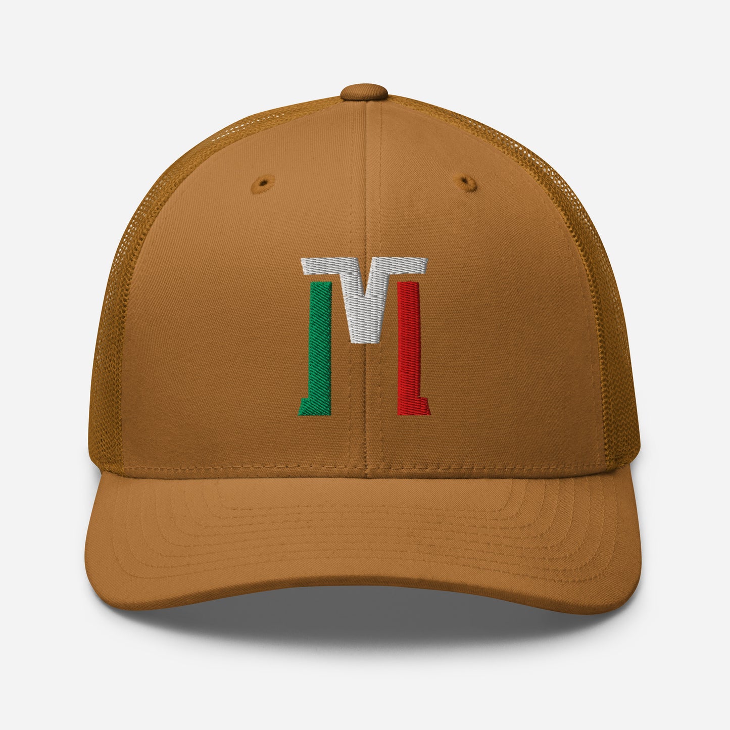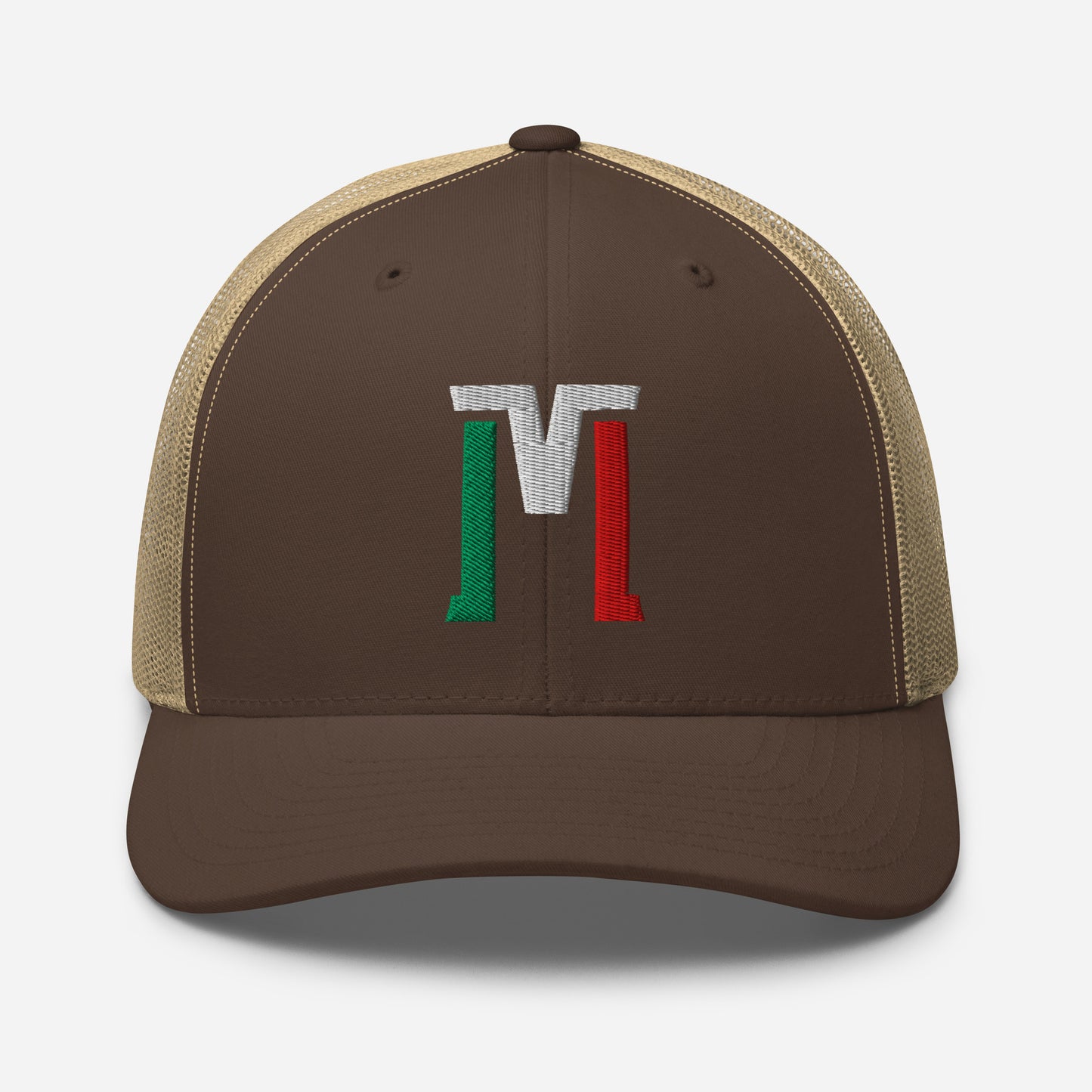 "M" Retro Trucker Hat | E Luna Brand CLASSIC | 1 Green, White, Red Thread Logo