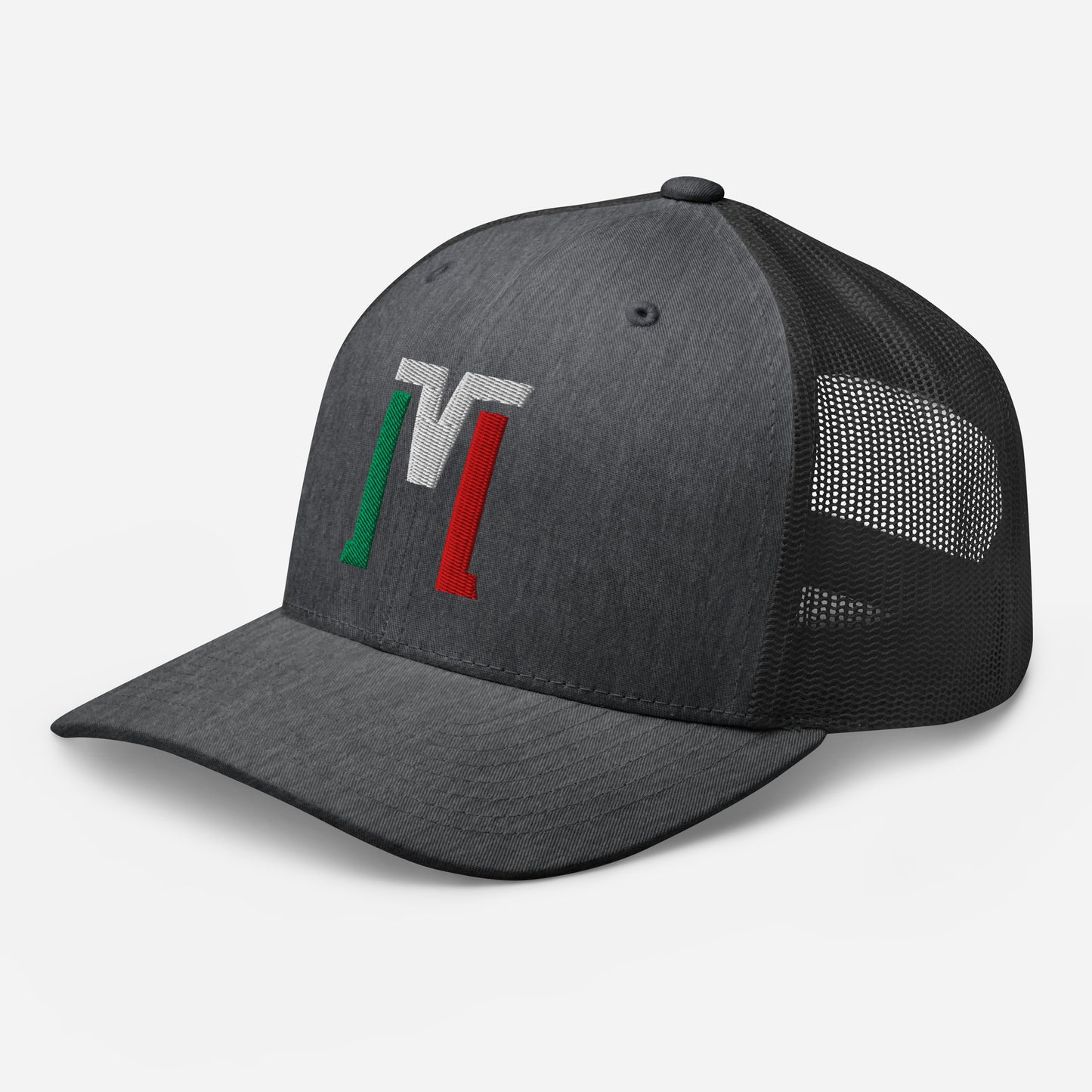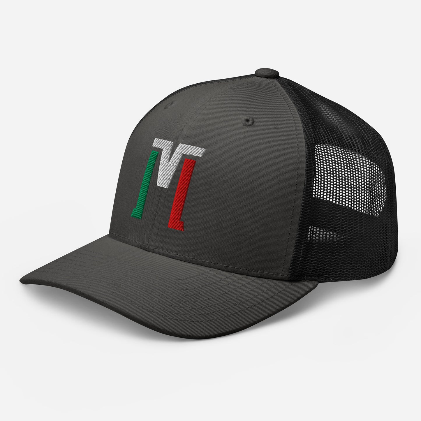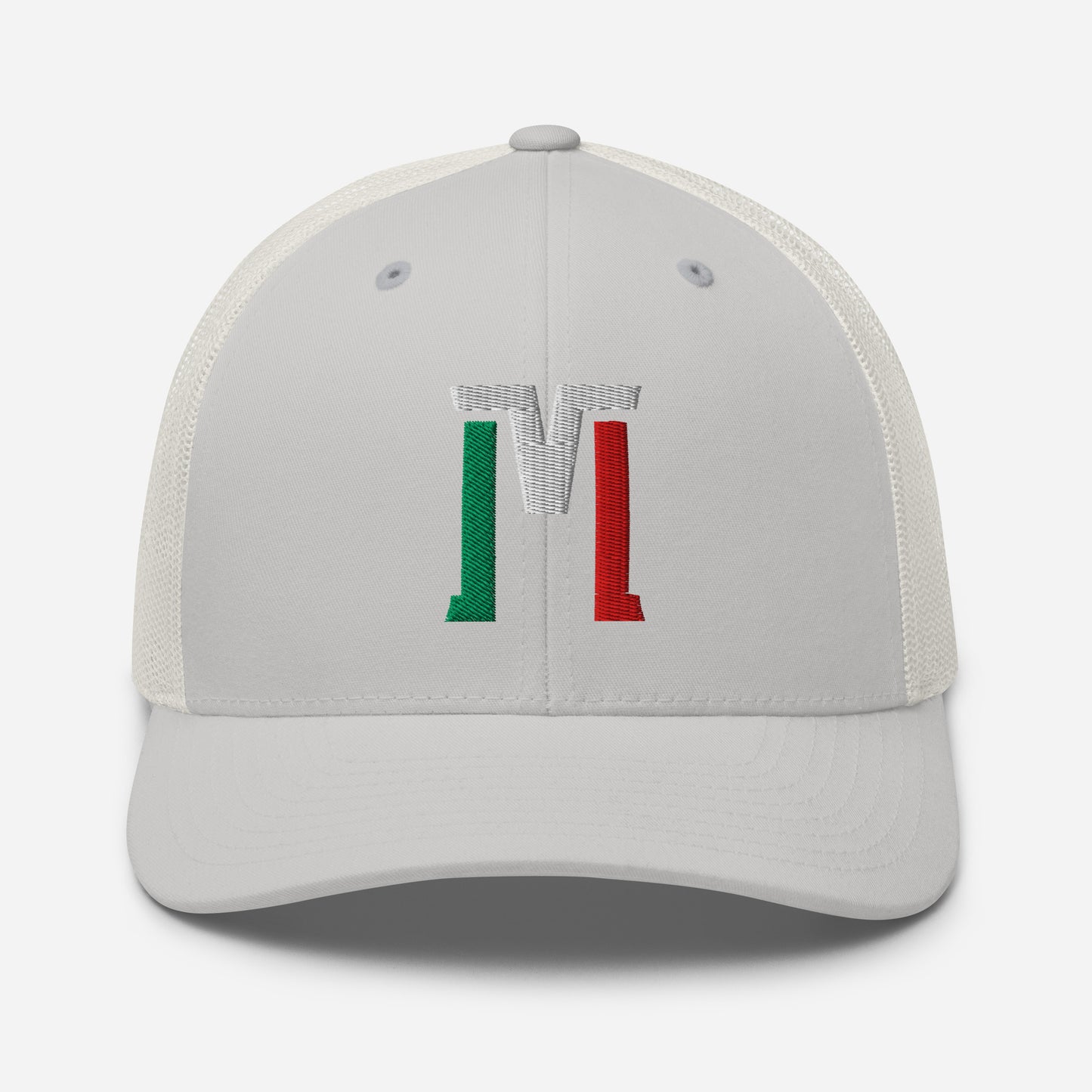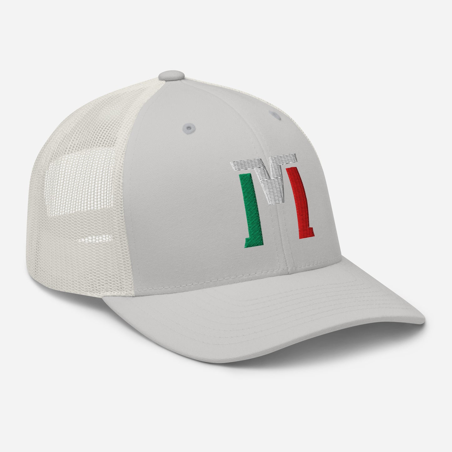 "M" Retro Trucker Hat | E Luna Brand CLASSIC | 1 Green, White, Red Thread Logo