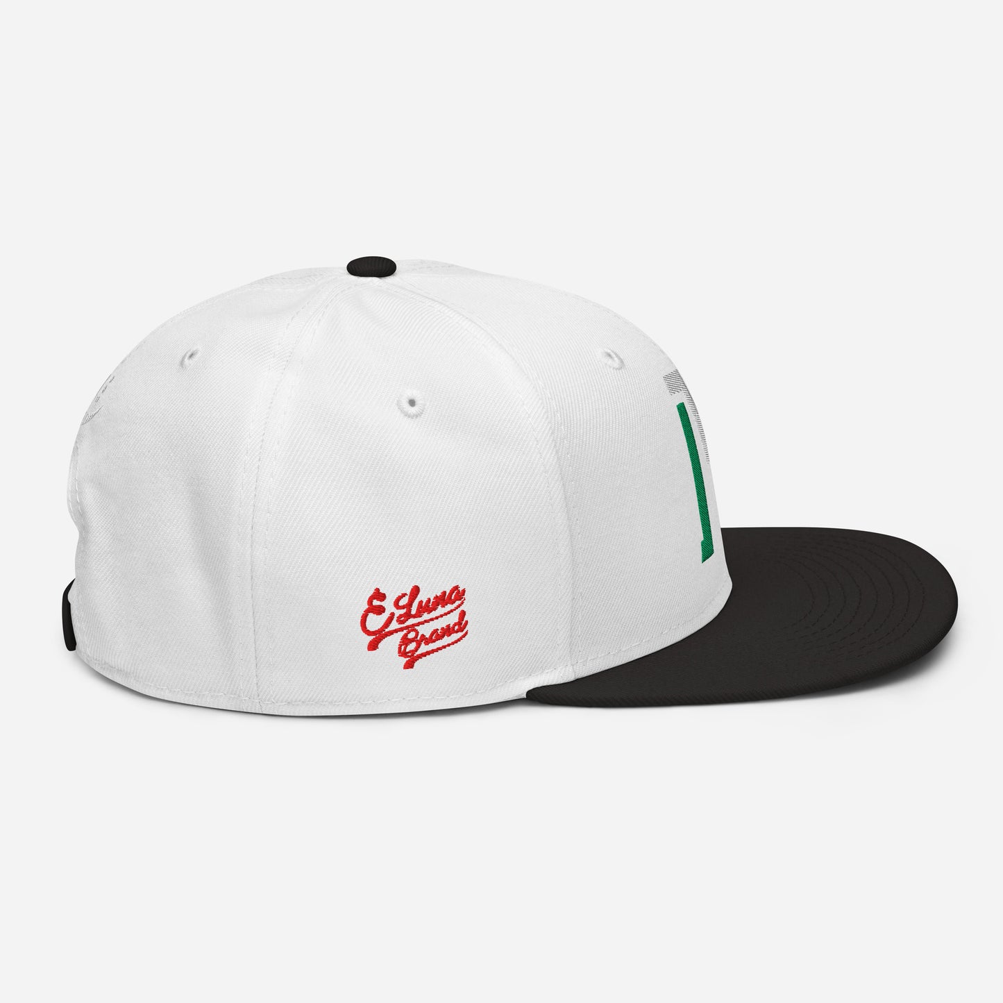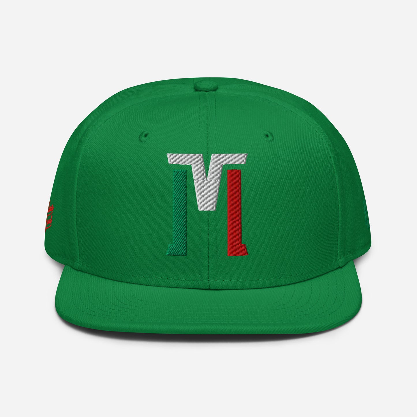"M" Snapback | E Luna Brand PREMIUM | 4 Green, White, Red Thread Logos | 3D Puff Edition