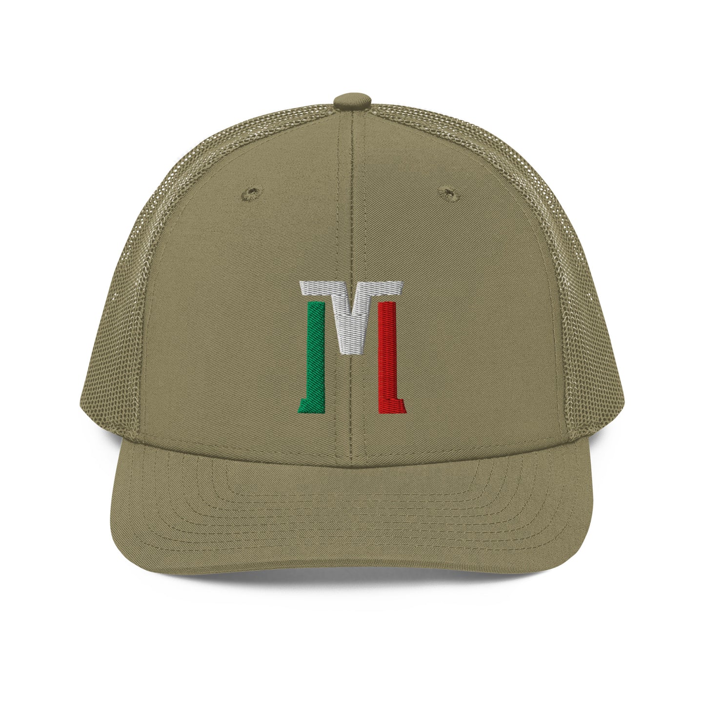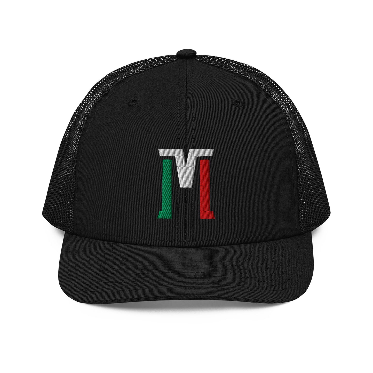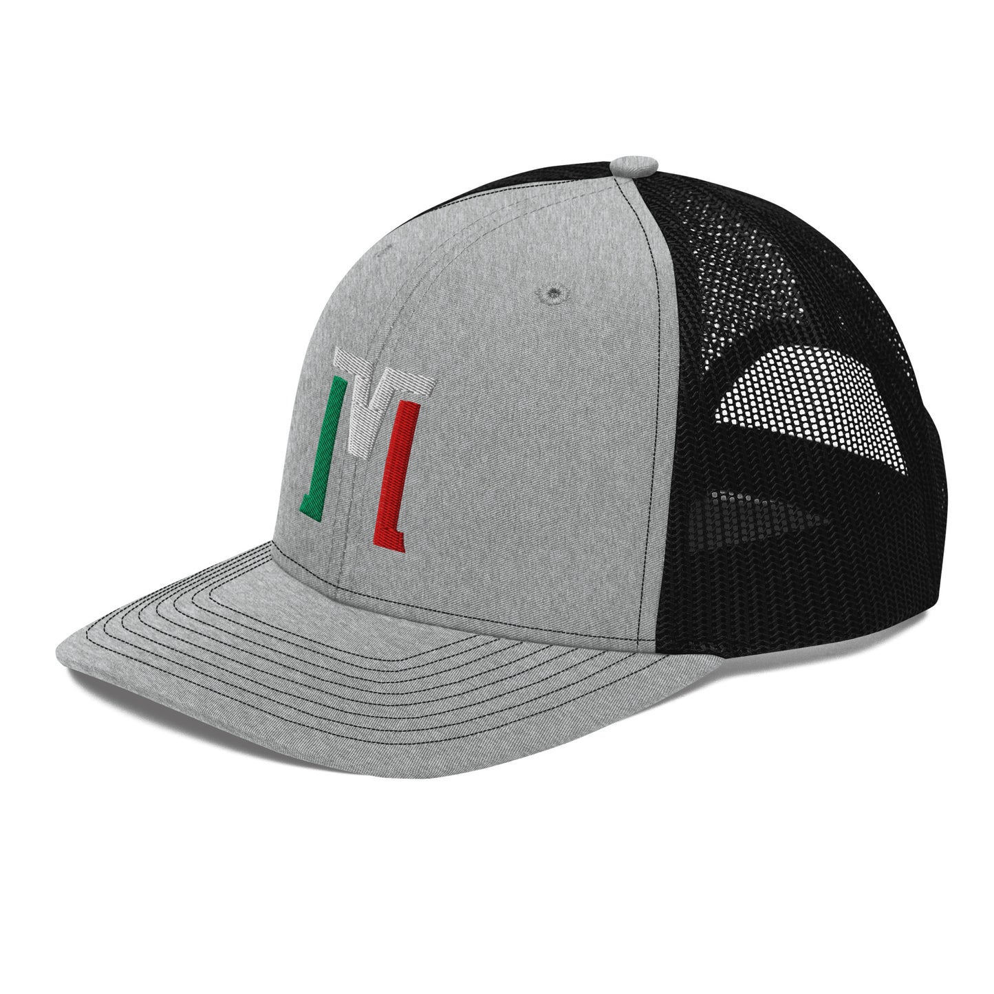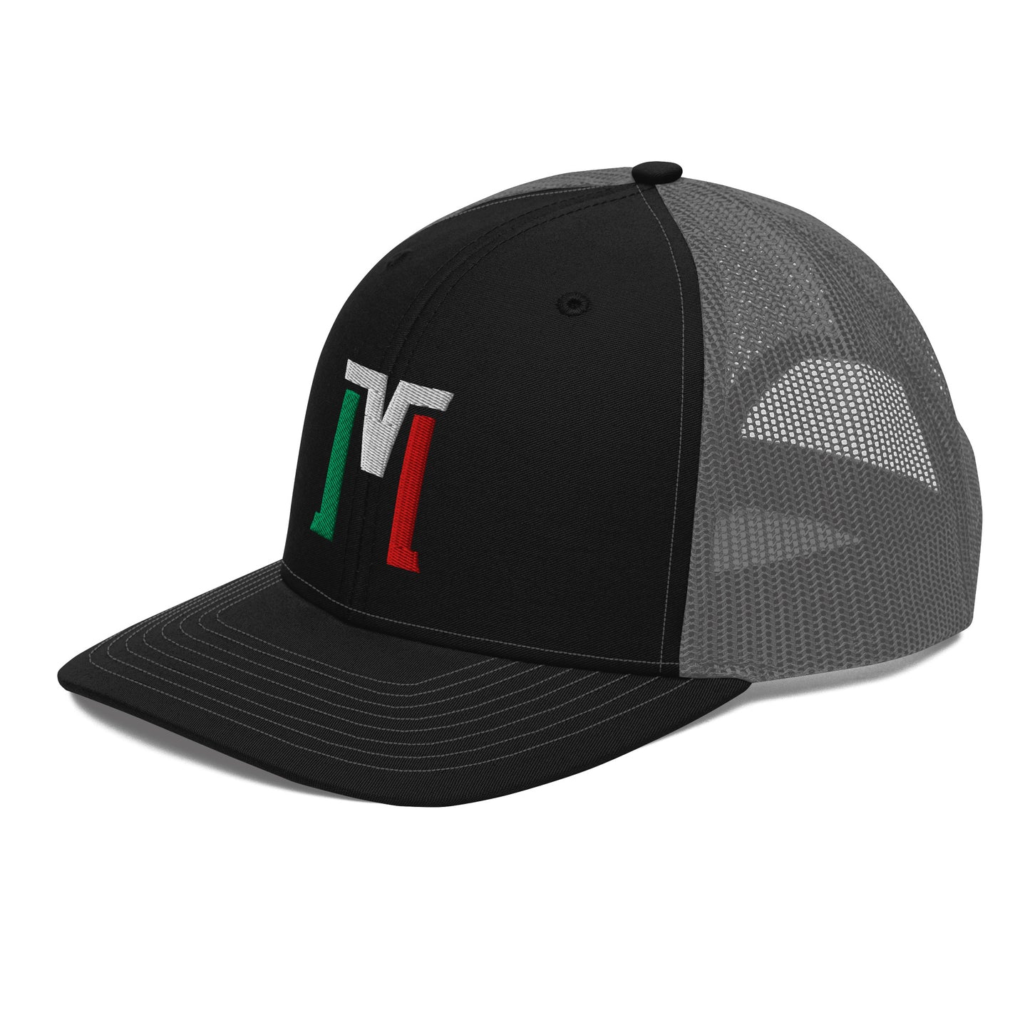 "M" Snapback Trucker Cap | E Luna Brand CLASSIC | 1 Green, White, Red Thread Logo