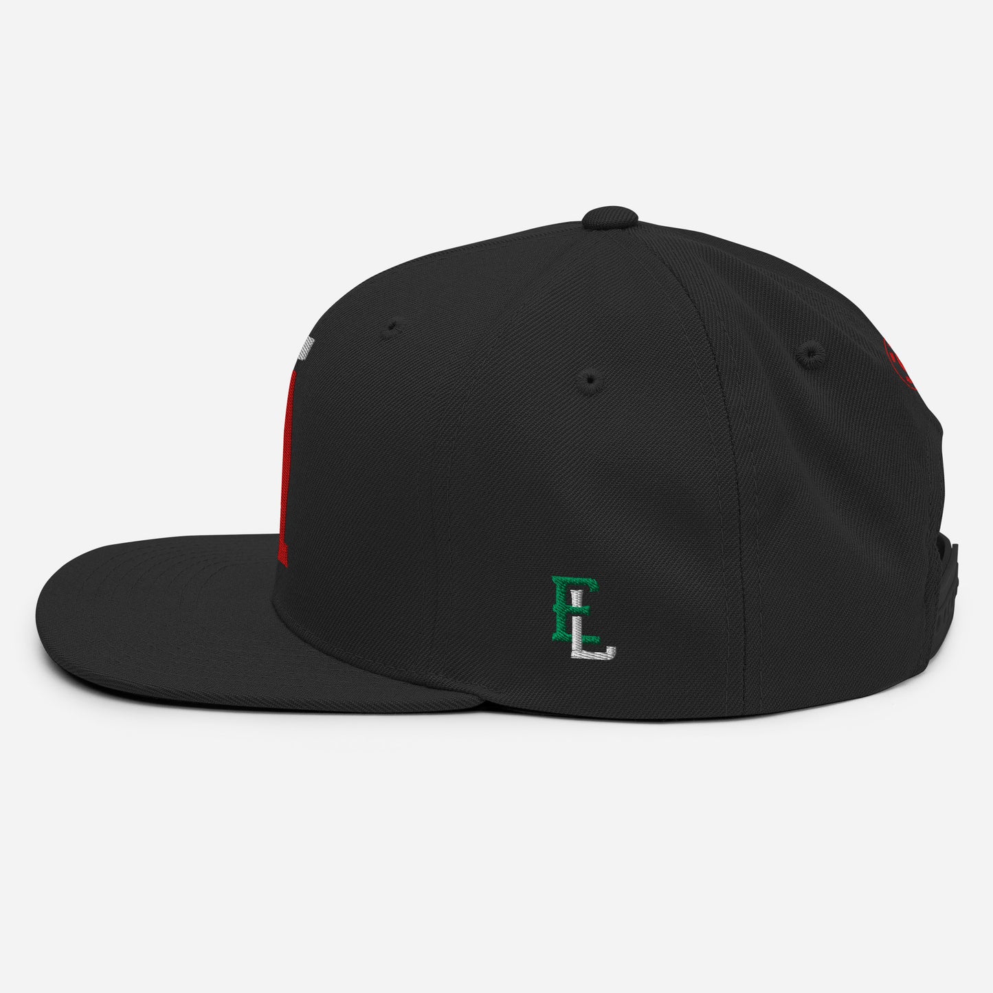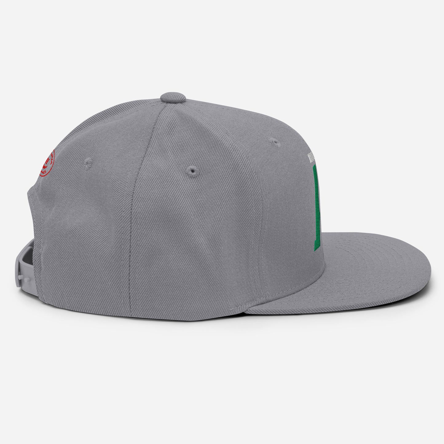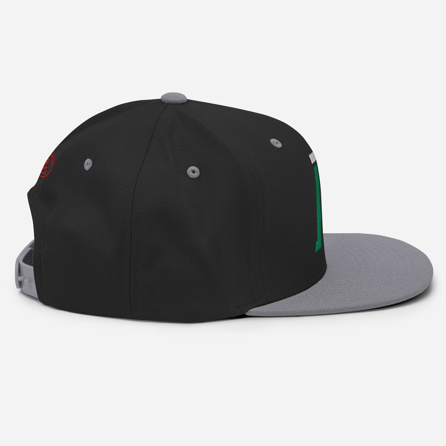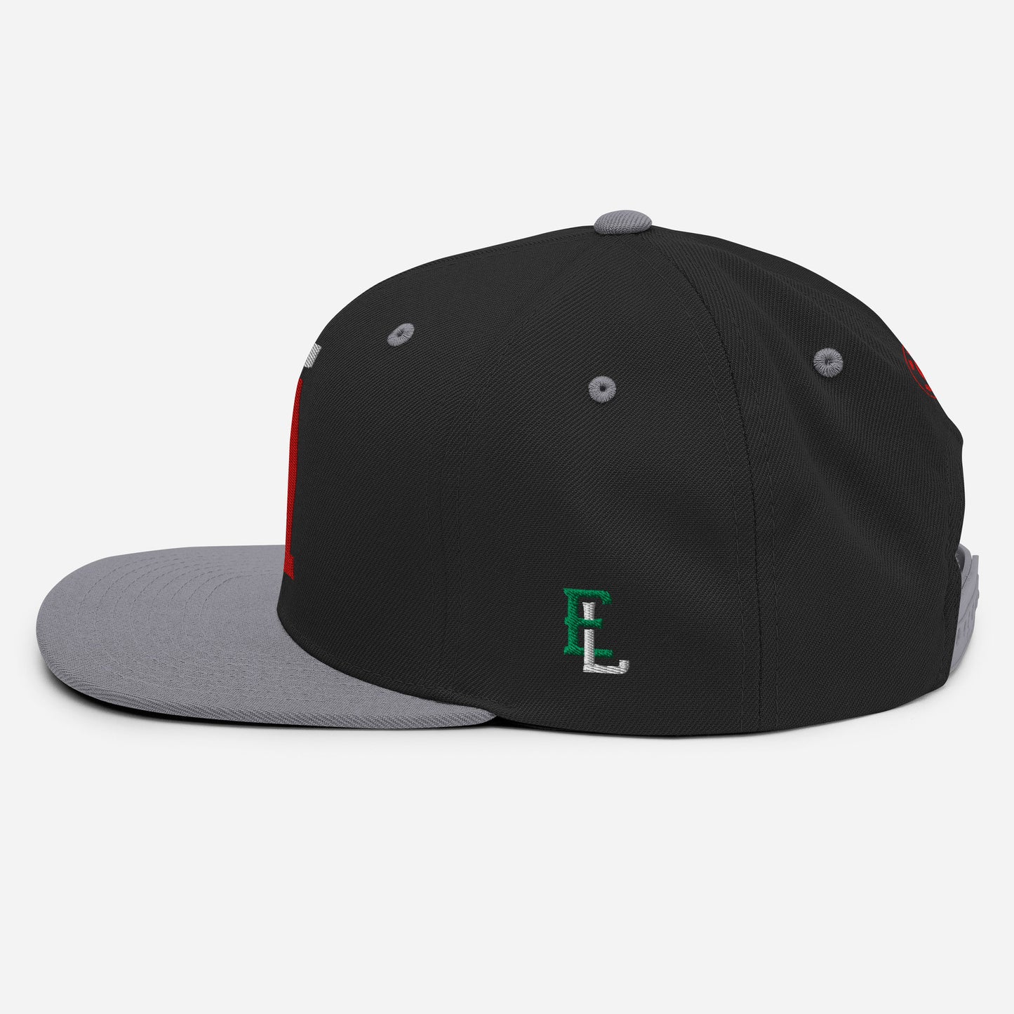 "M" Wool Blend Snapback Hat | E Luna Brand SELECT | 3 Green, White, Red Thread Logos | 3D Puff Edition