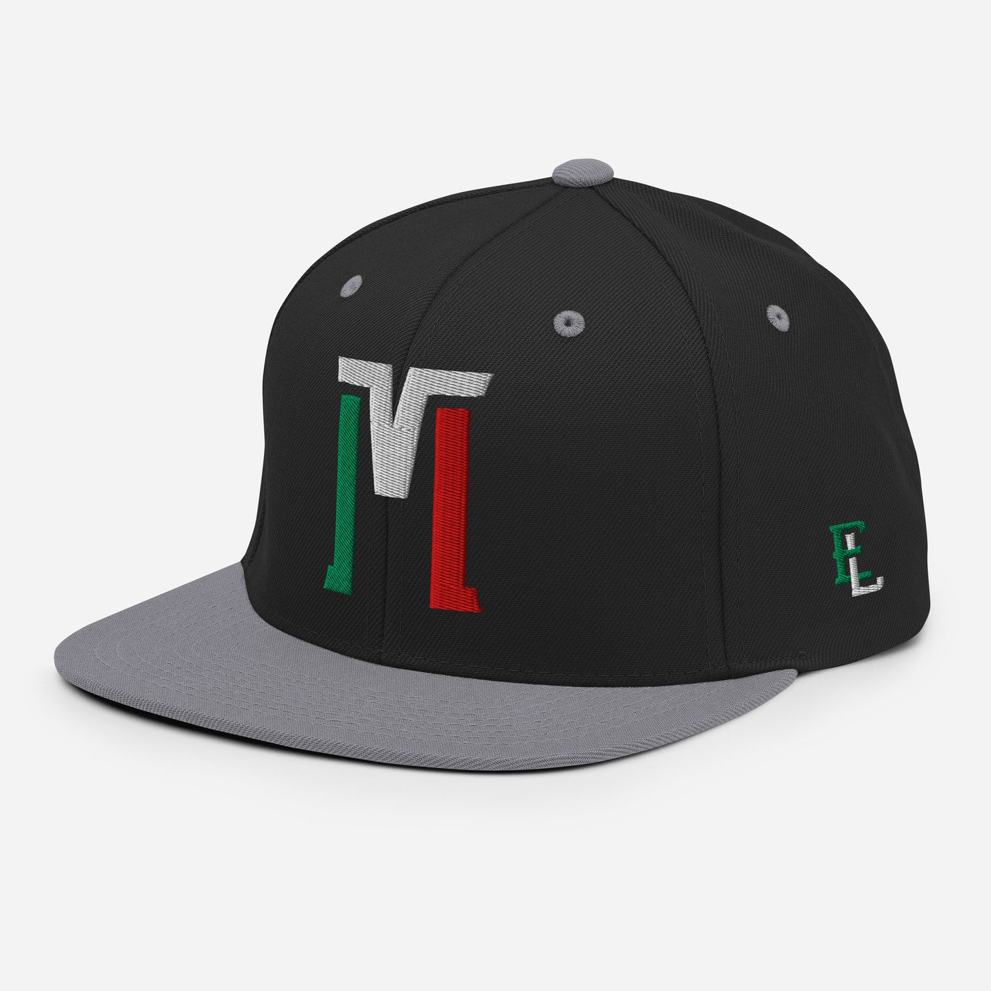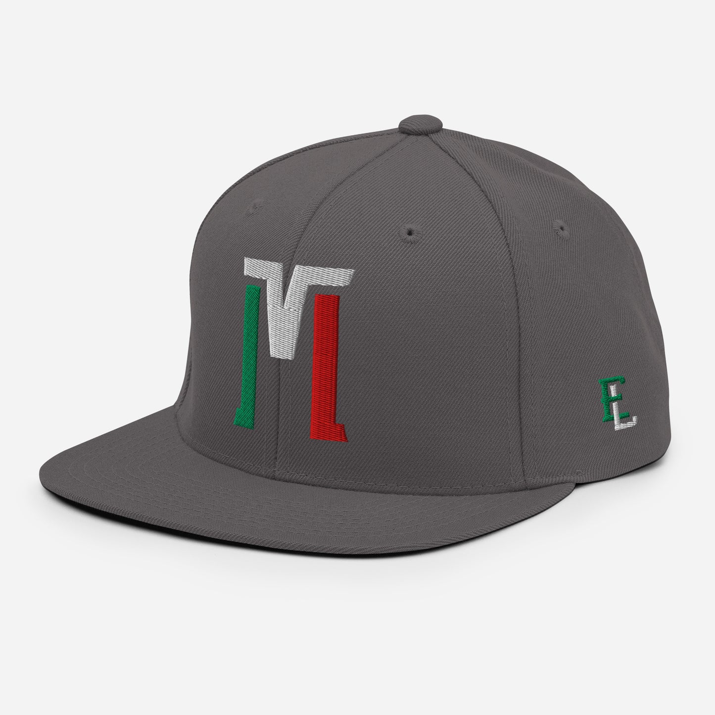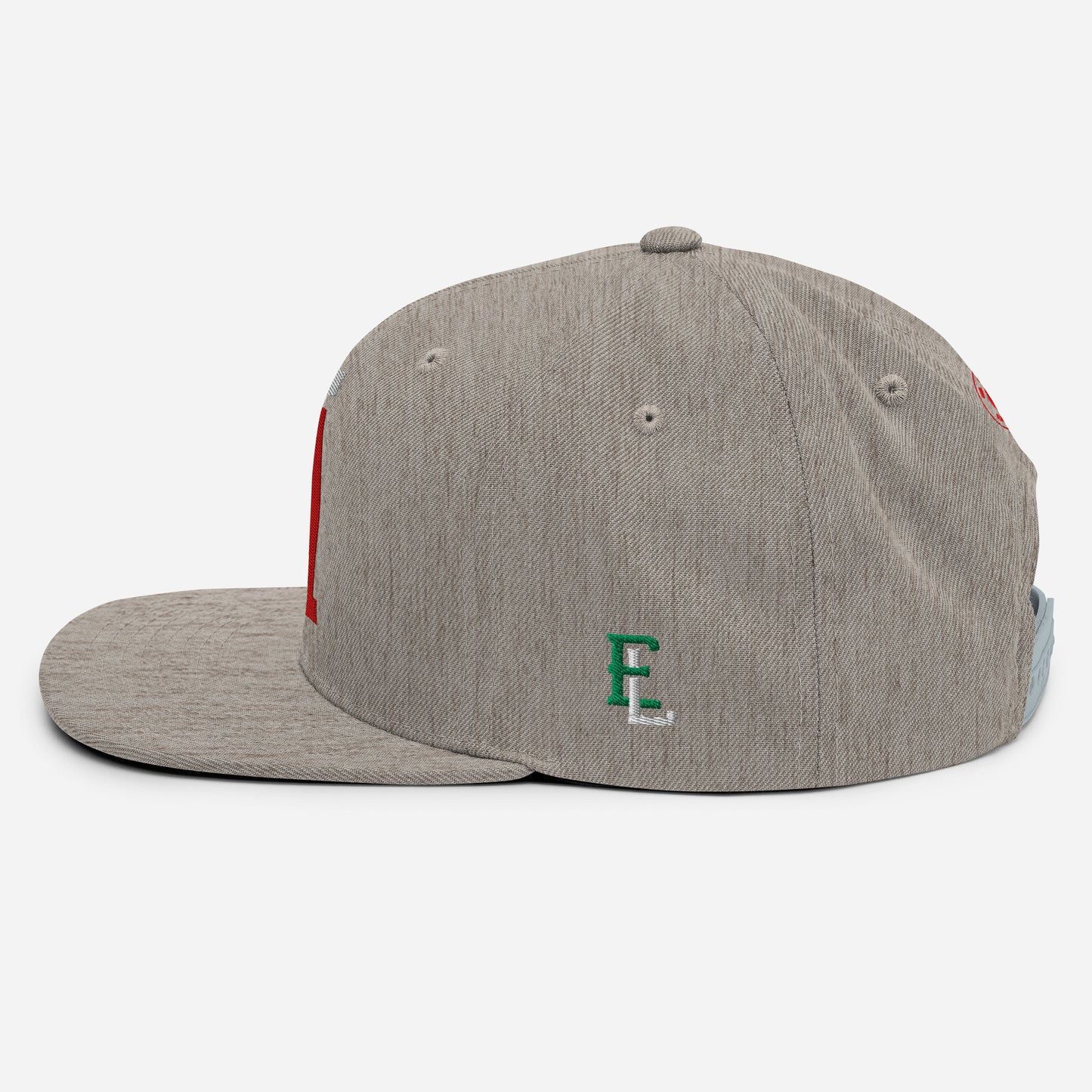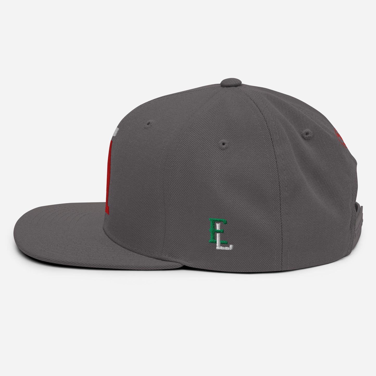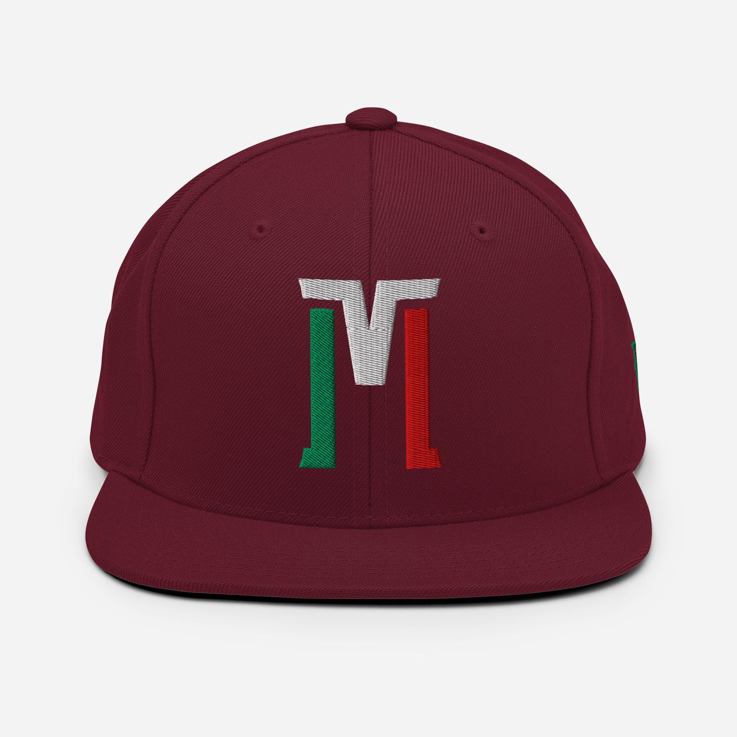 "M" Wool Blend Snapback Hat | E Luna Brand SELECT | 3 Green, White, Red Thread Logos | 3D Puff Edition