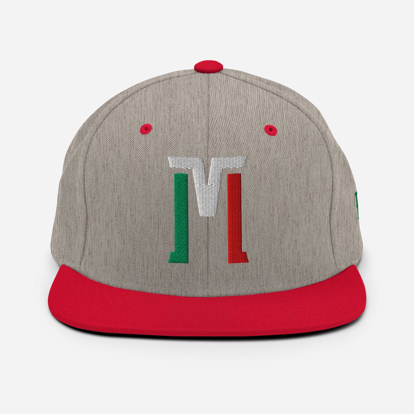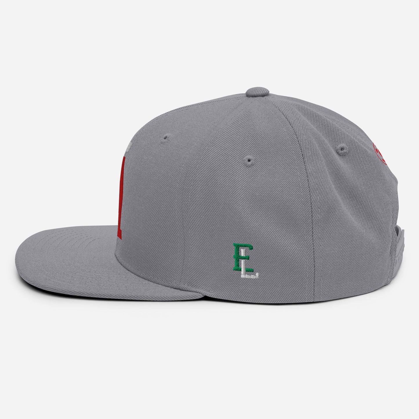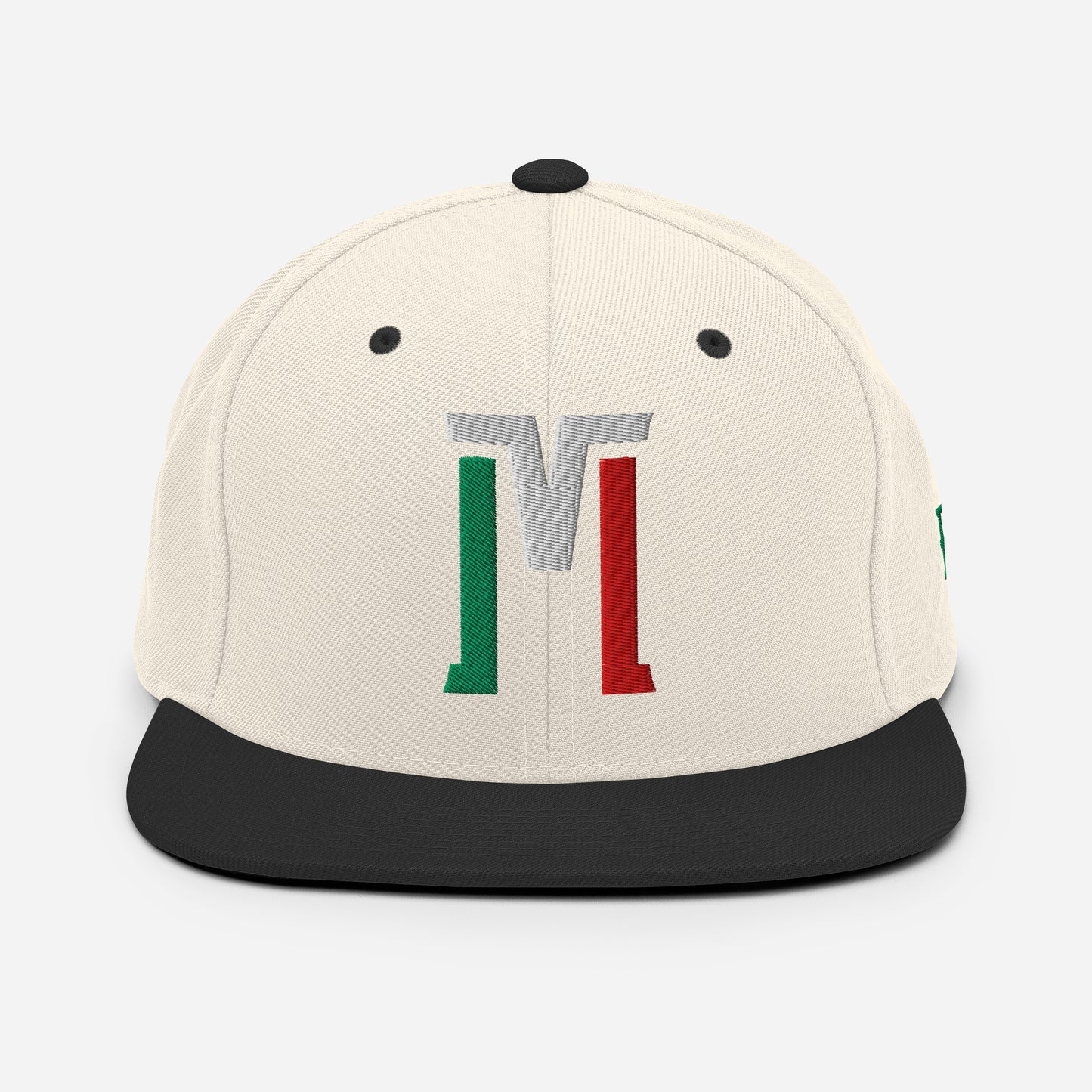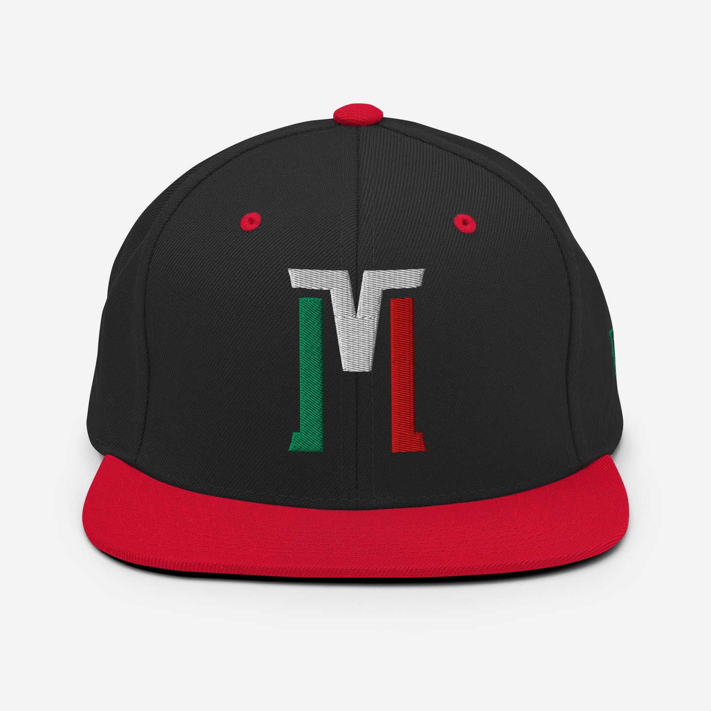 "M" Wool Blend Snapback Hat | E Luna Brand SELECT | 3 Green, White, Red Thread Logos | 3D Puff Edition
