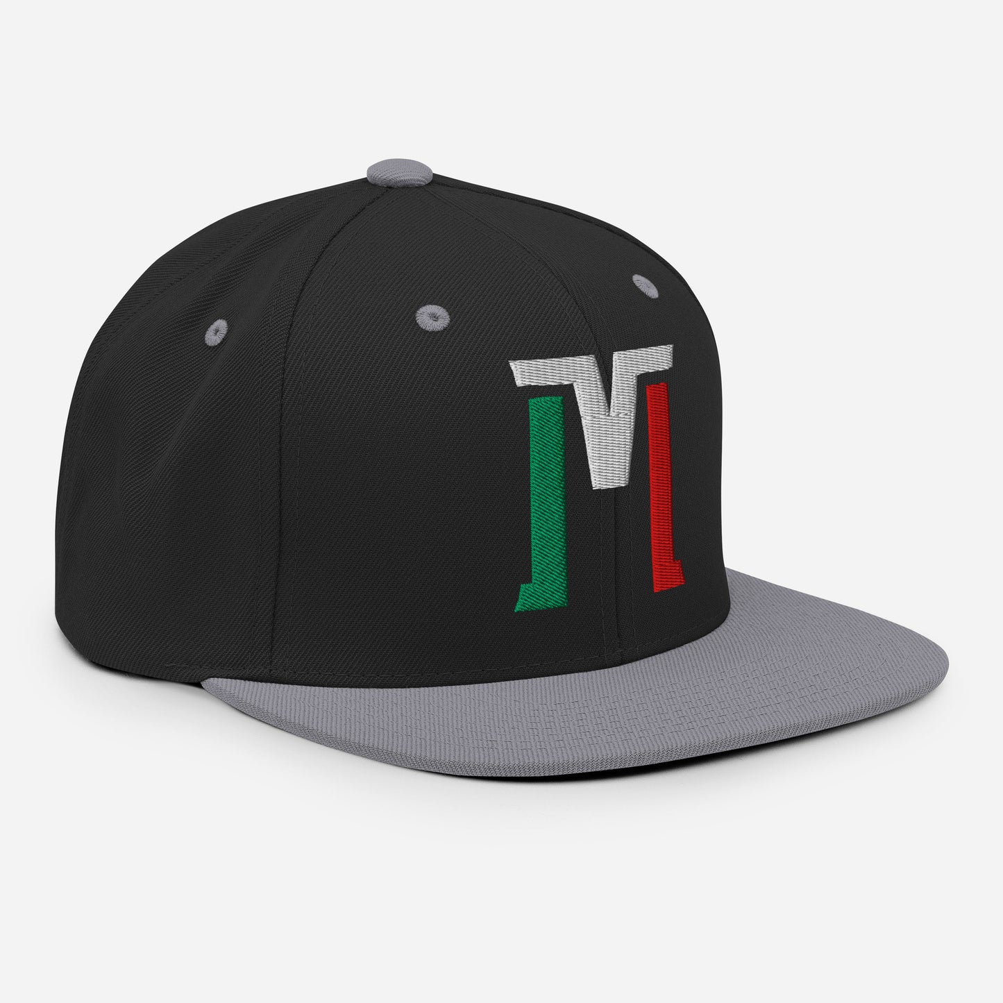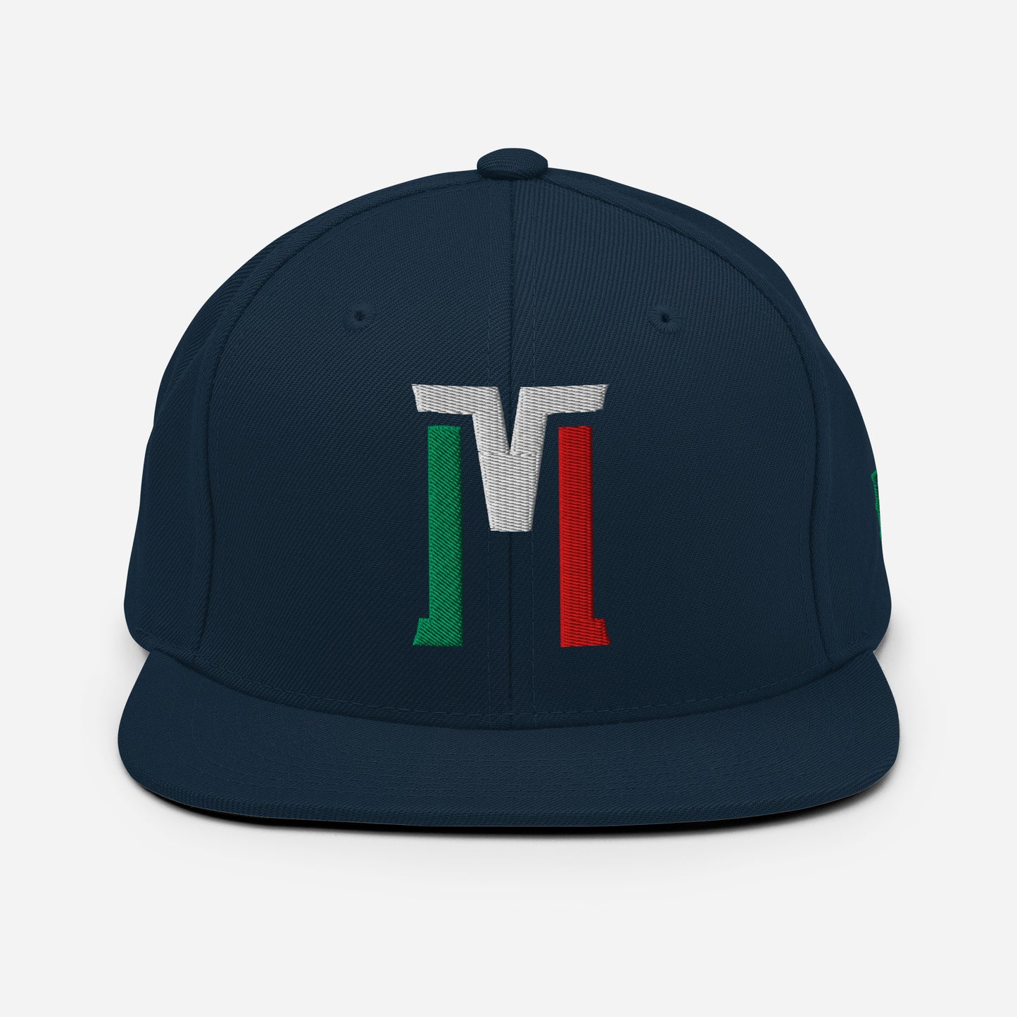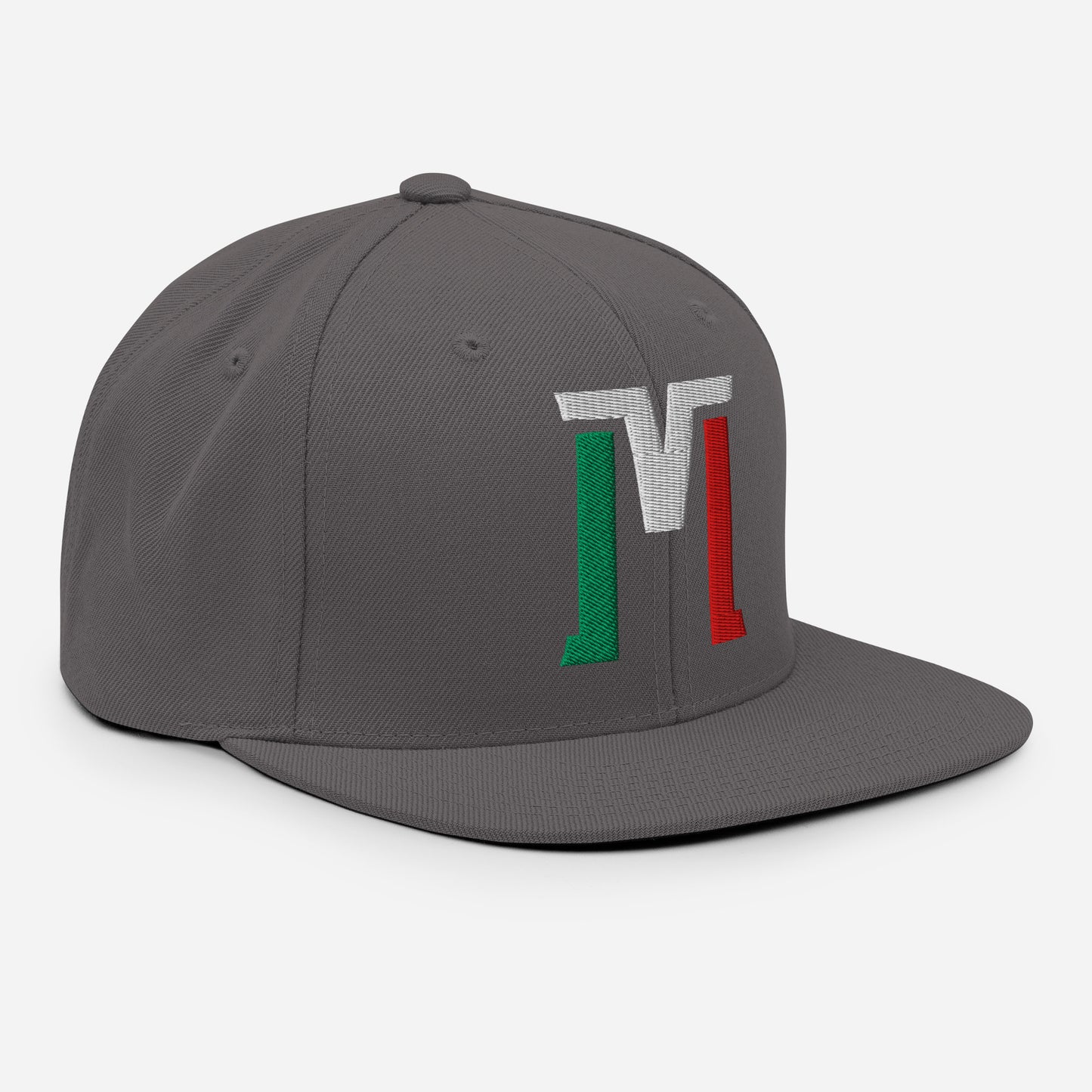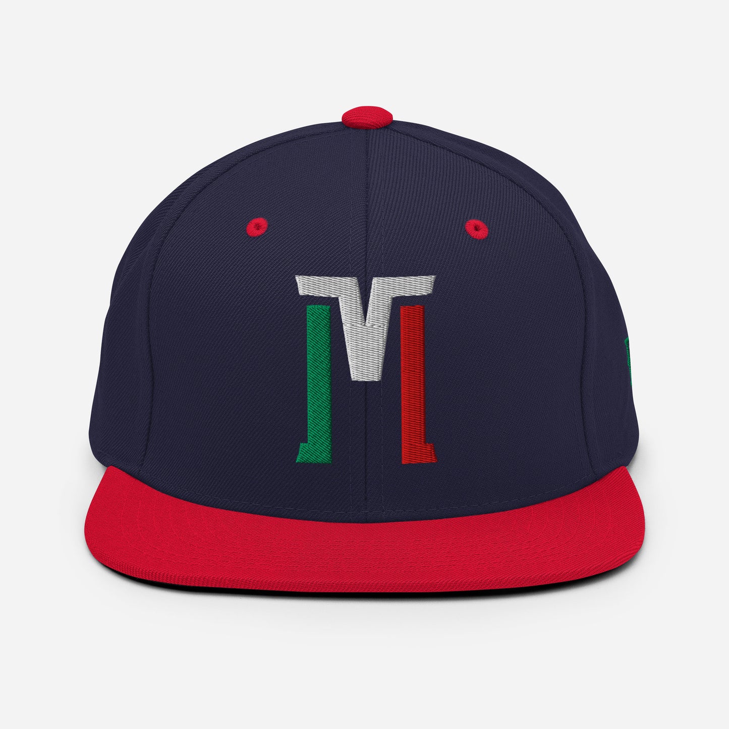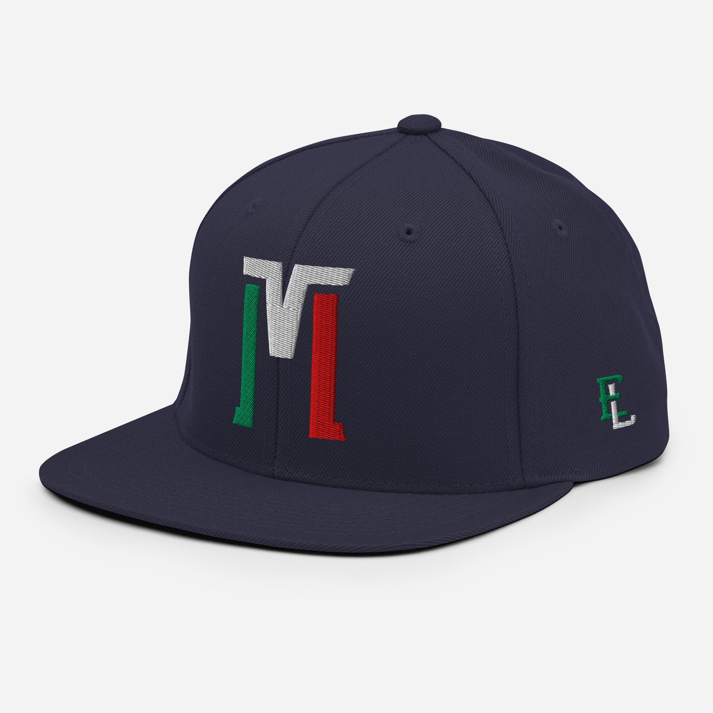 "M" Wool Blend Snapback Hat | E Luna Brand SELECT | 3 Green, White, Red Thread Logos | 3D Puff Edition