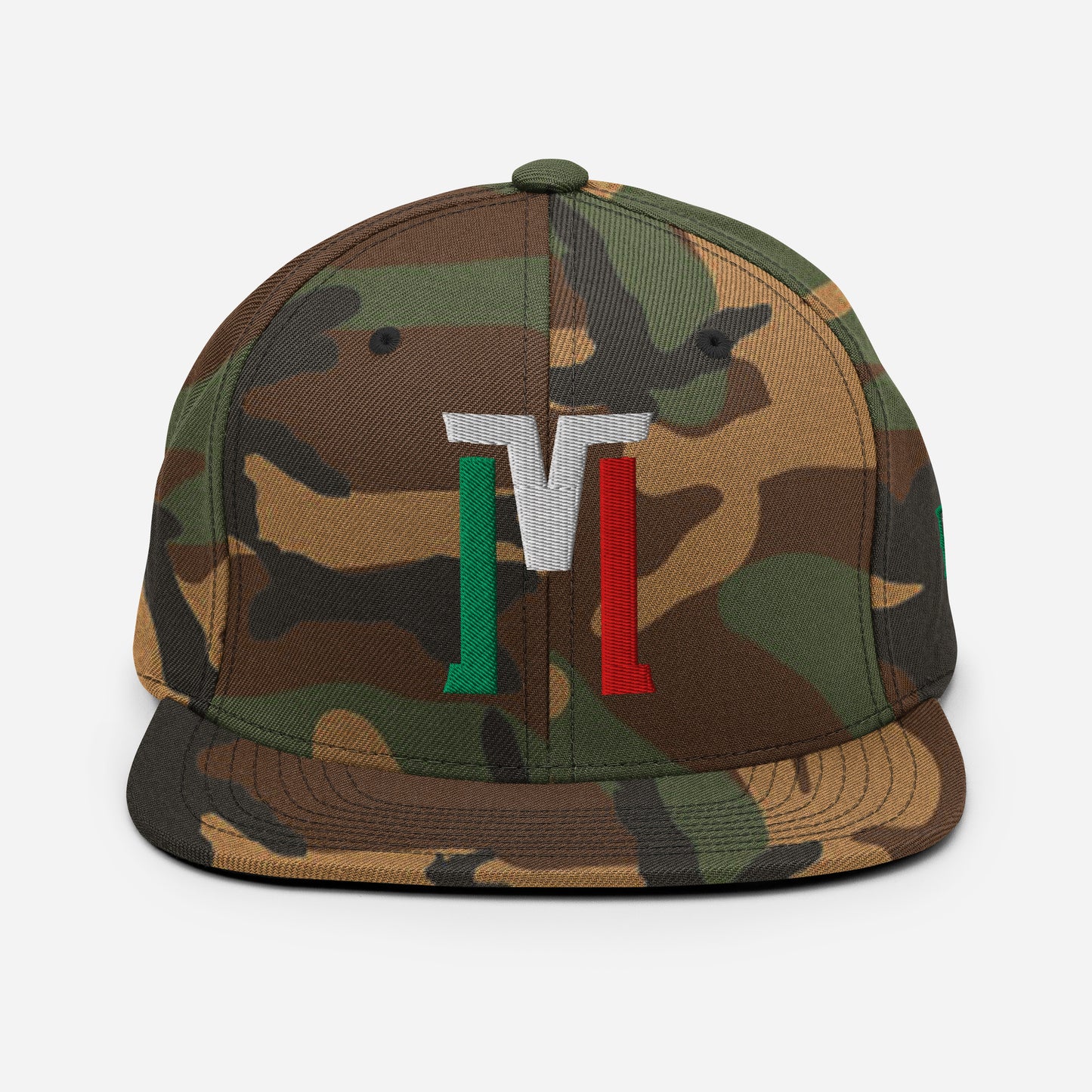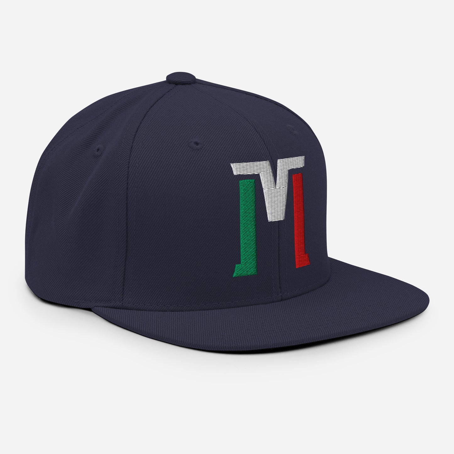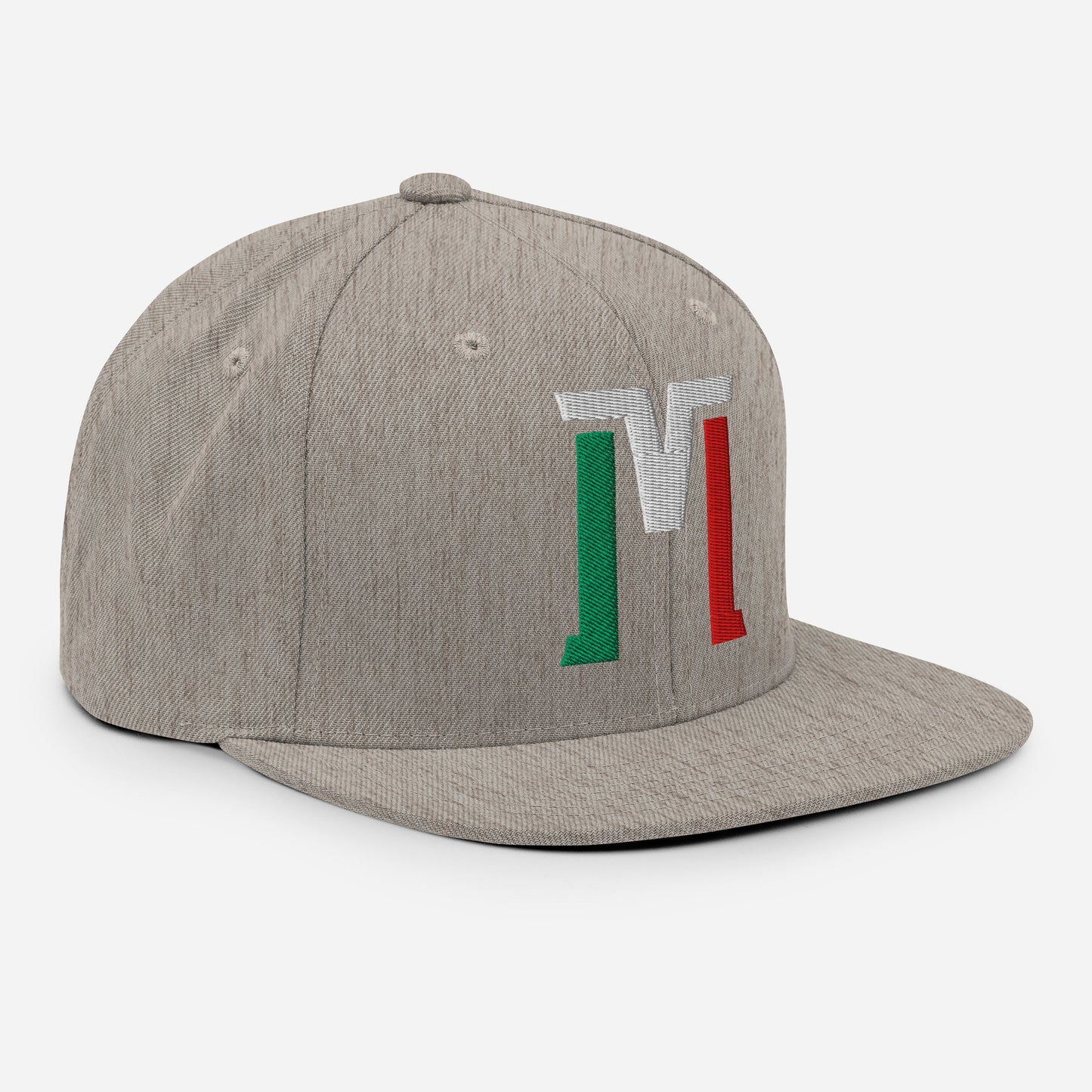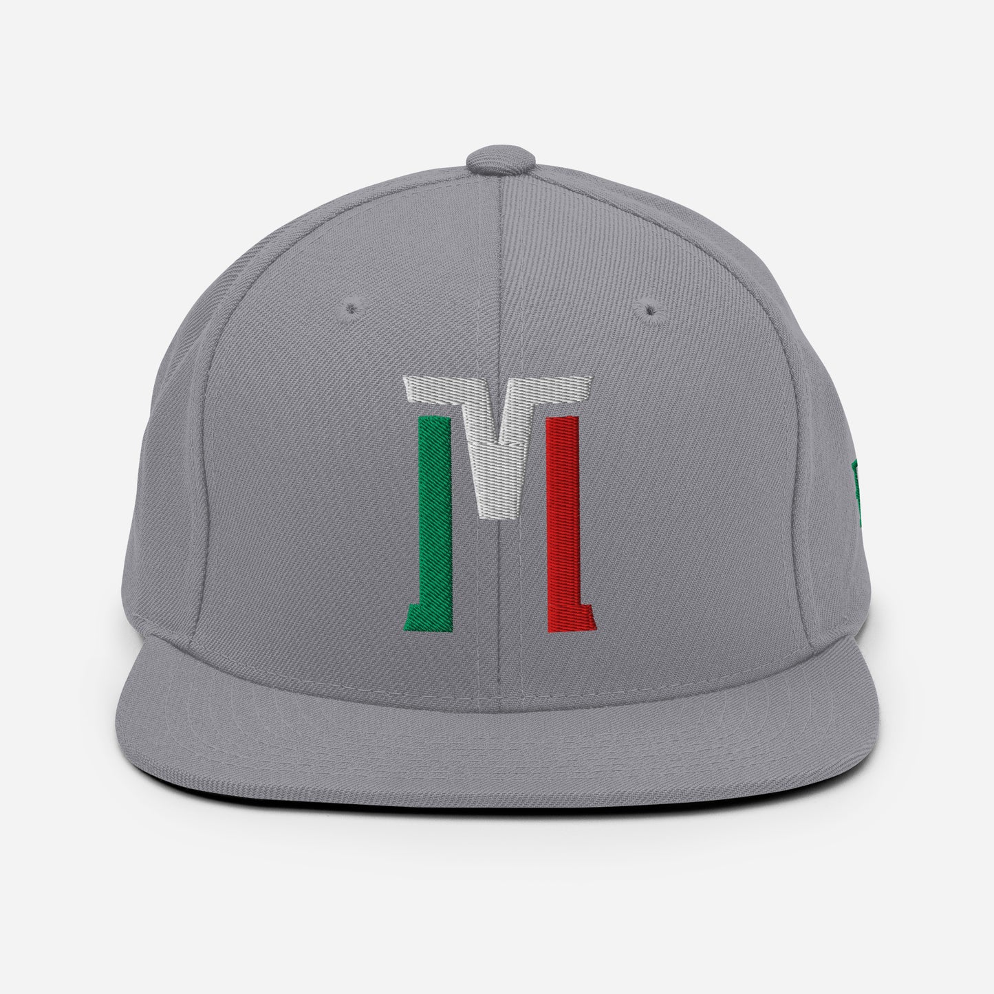"M" Wool Blend Snapback Hat | E Luna Brand SELECT | 3 Green, White, Red Thread Logos | 3D Puff Edition
