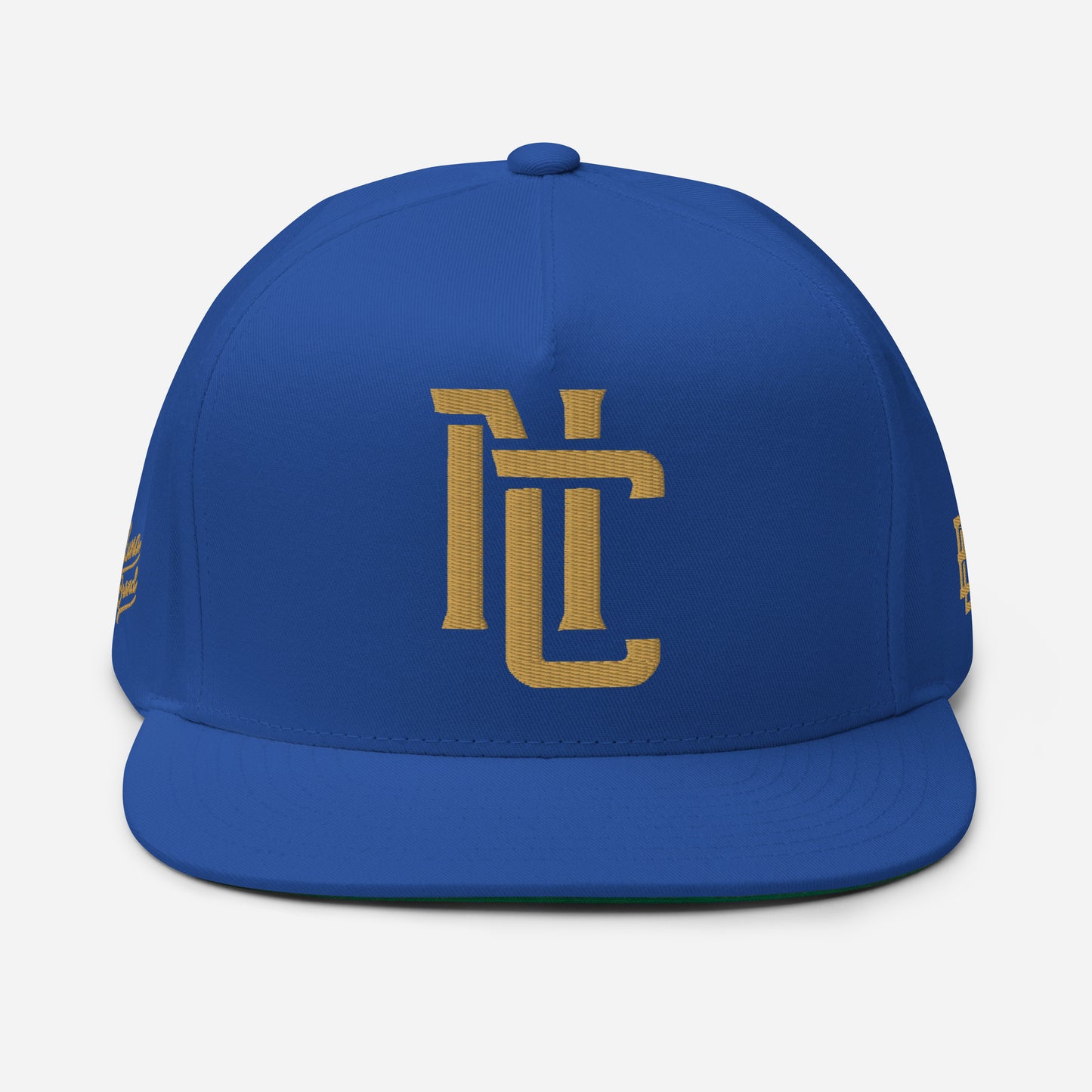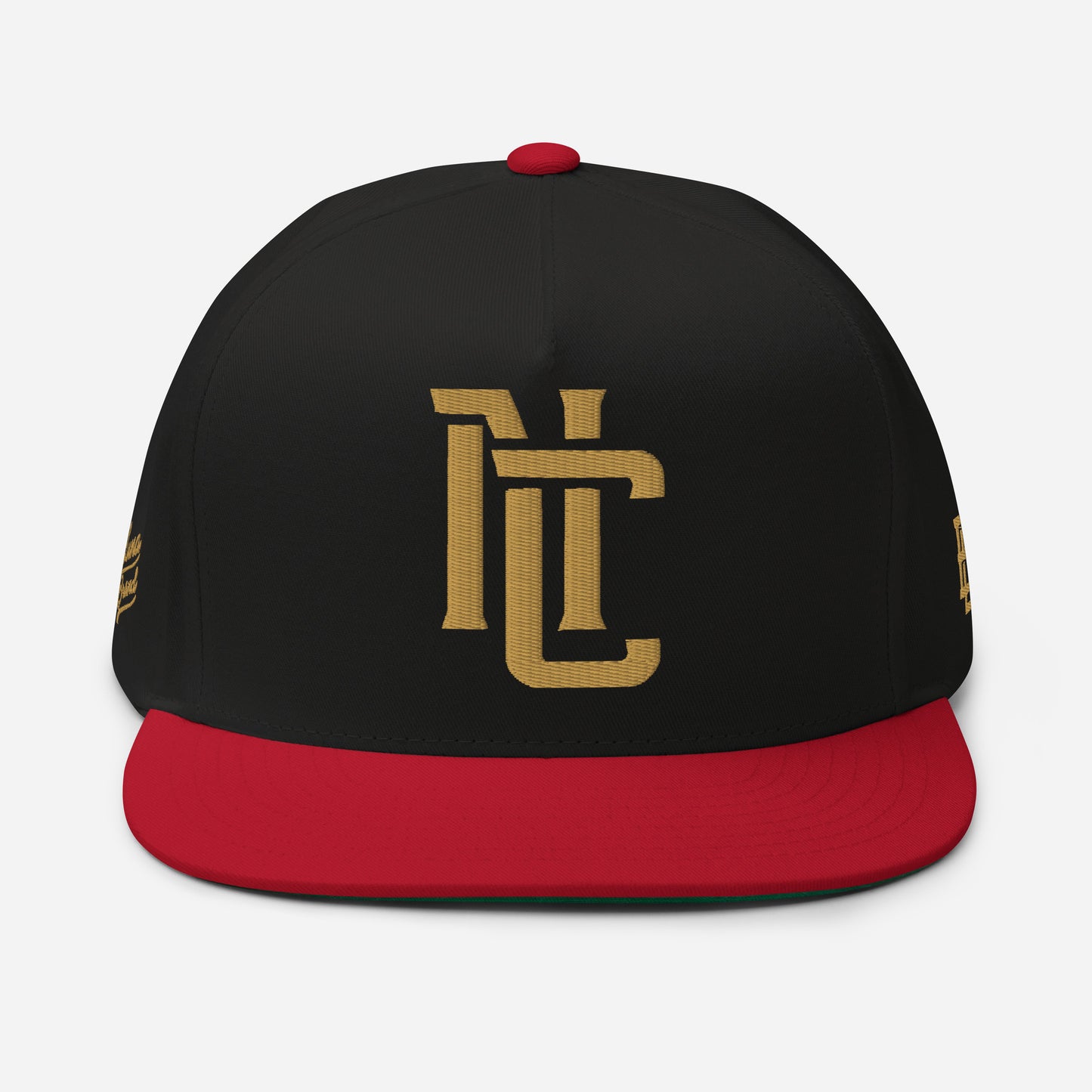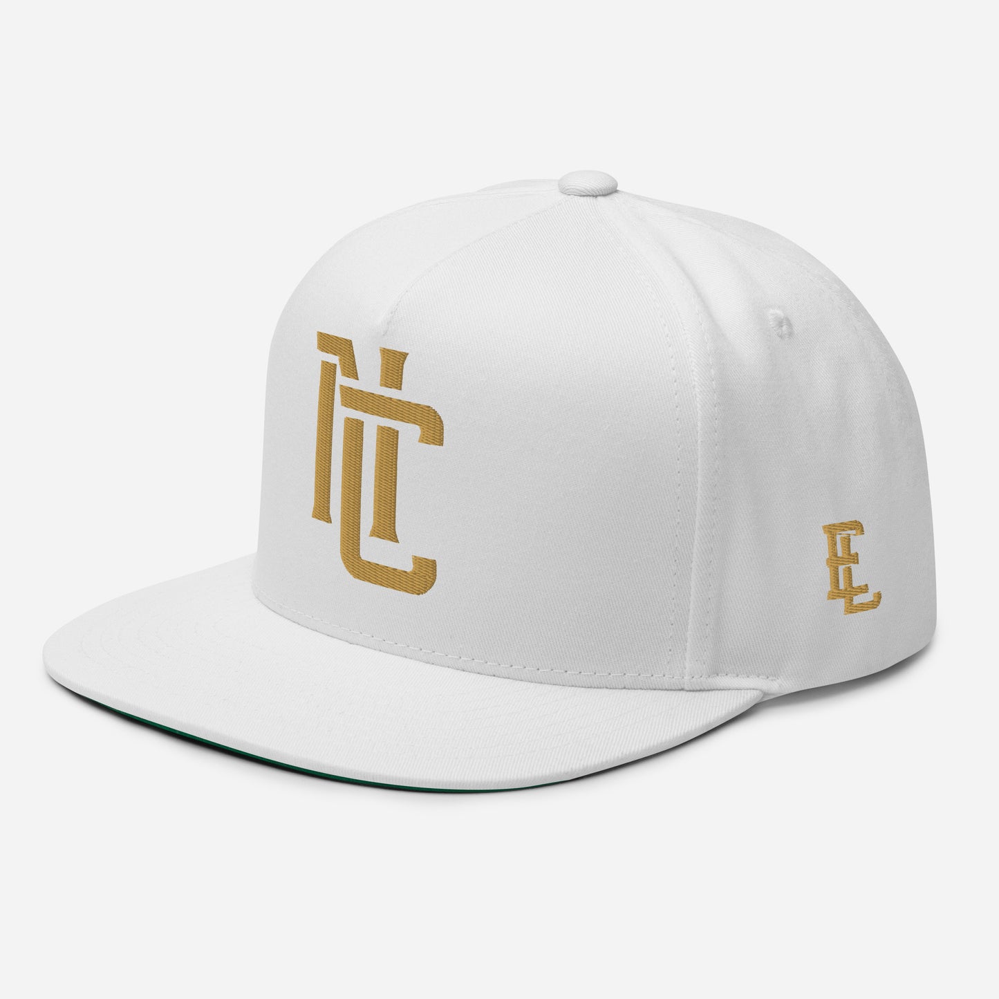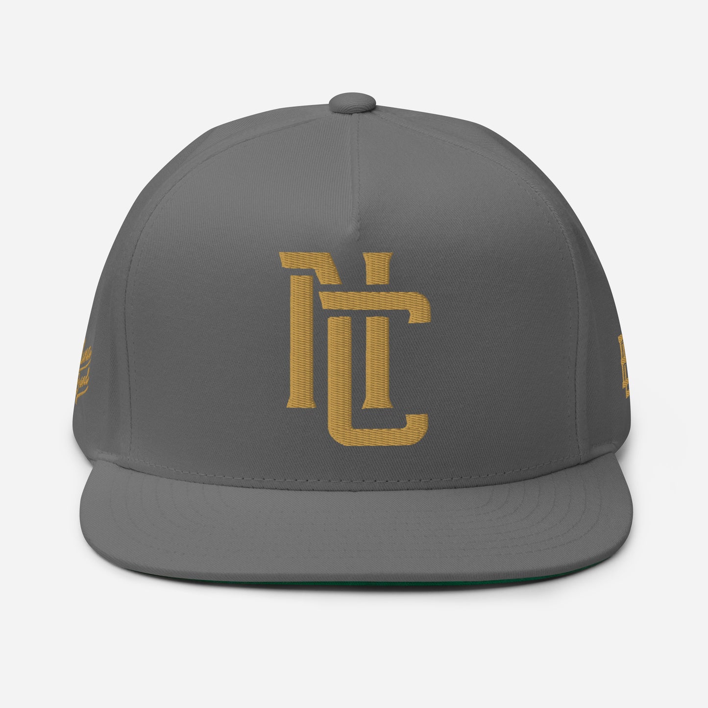 "NC" 2.0 Flat Bill Cap | E Luna Brand PREMIUM | 4 Old Gold Thread Logos | 3D Puff Edition
