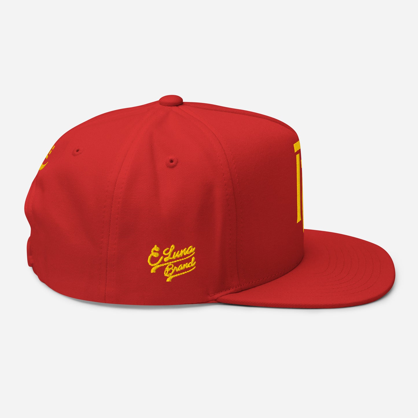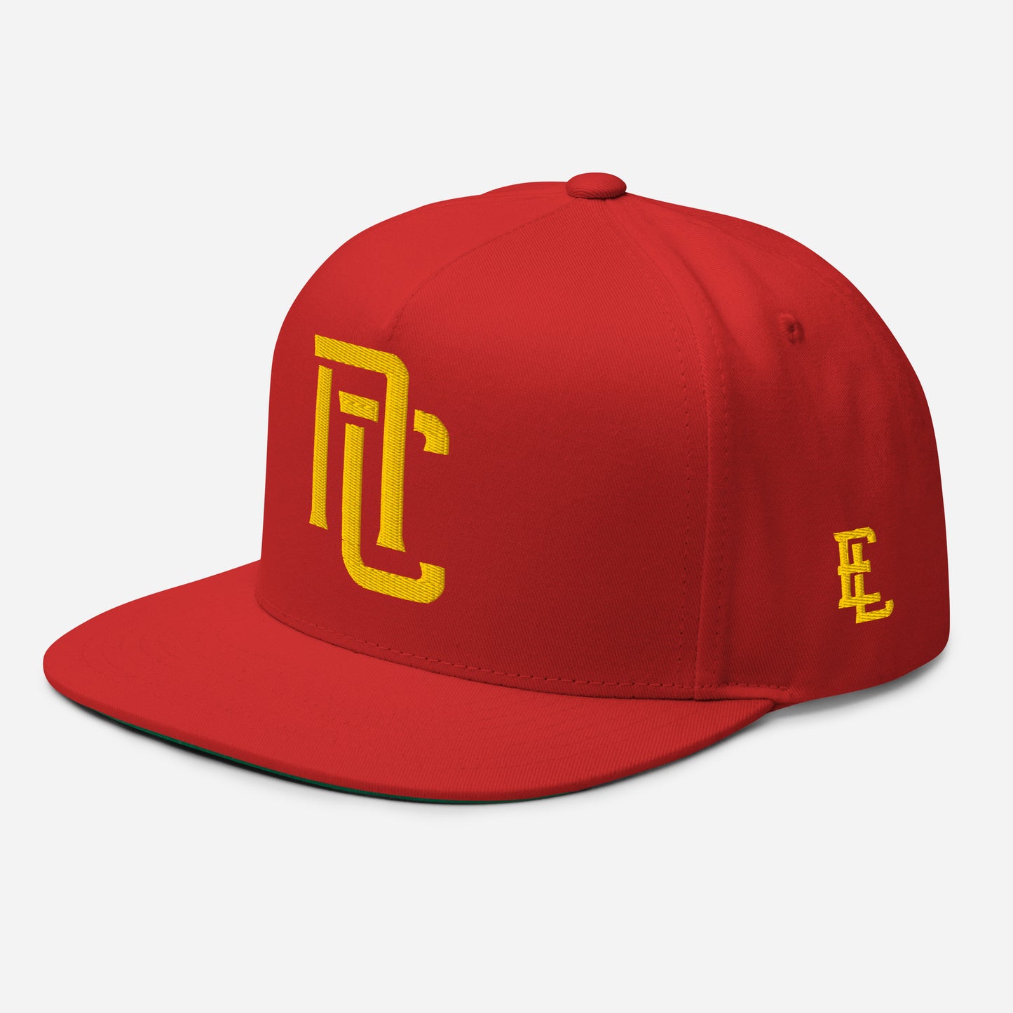 "NC" Flat Bill Cap | E Luna Brand PREMIUM | 4 Gold Thread Logos | 3D Puff Edition