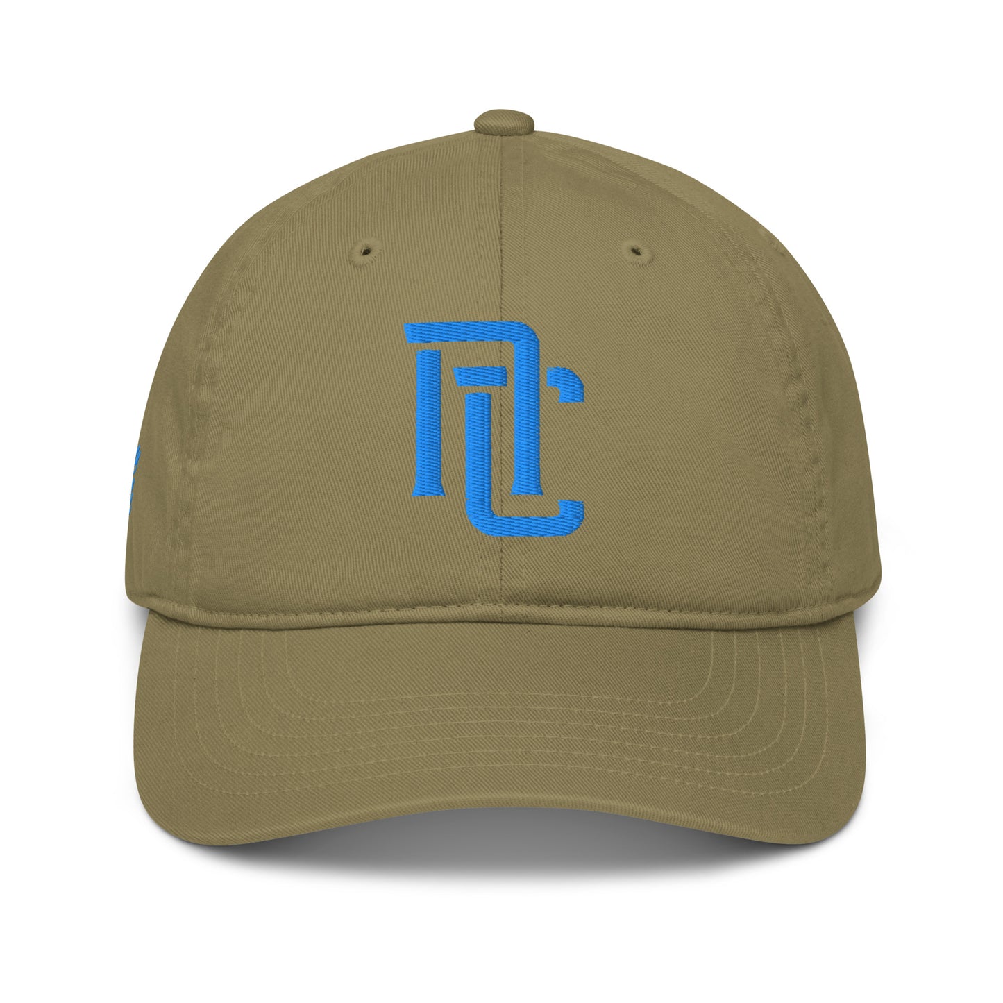 "NC" Organic Baseball Cap | E Luna Brand PREMIUM | 4 Aqua/Teal Thread Logos | 3D Puff Edition