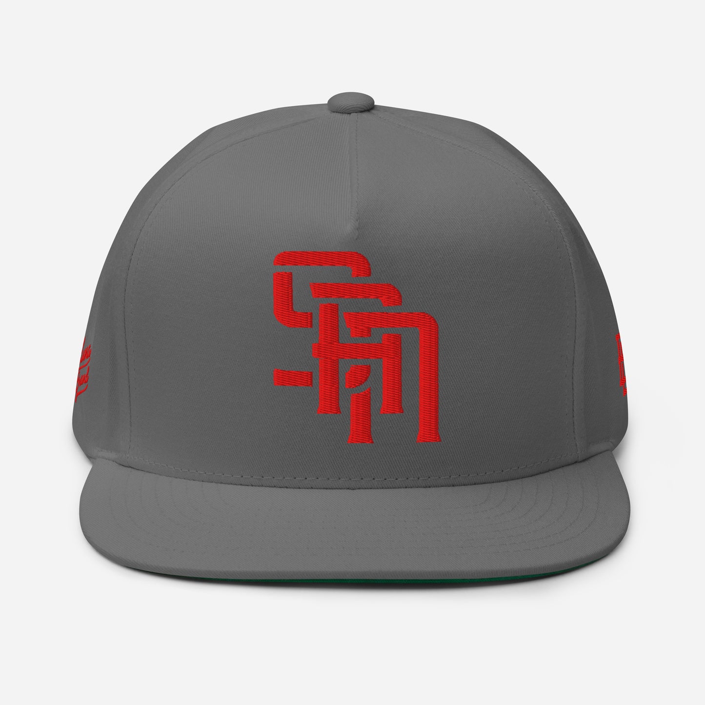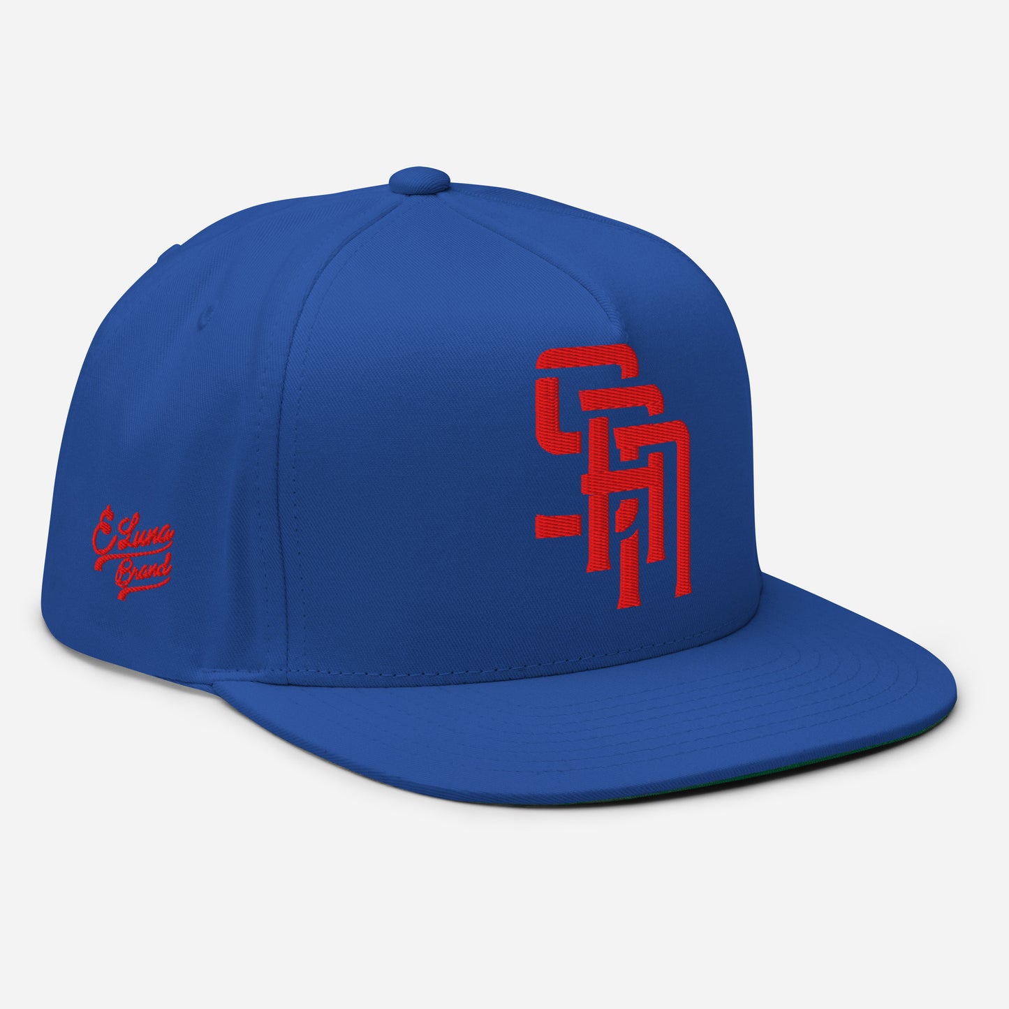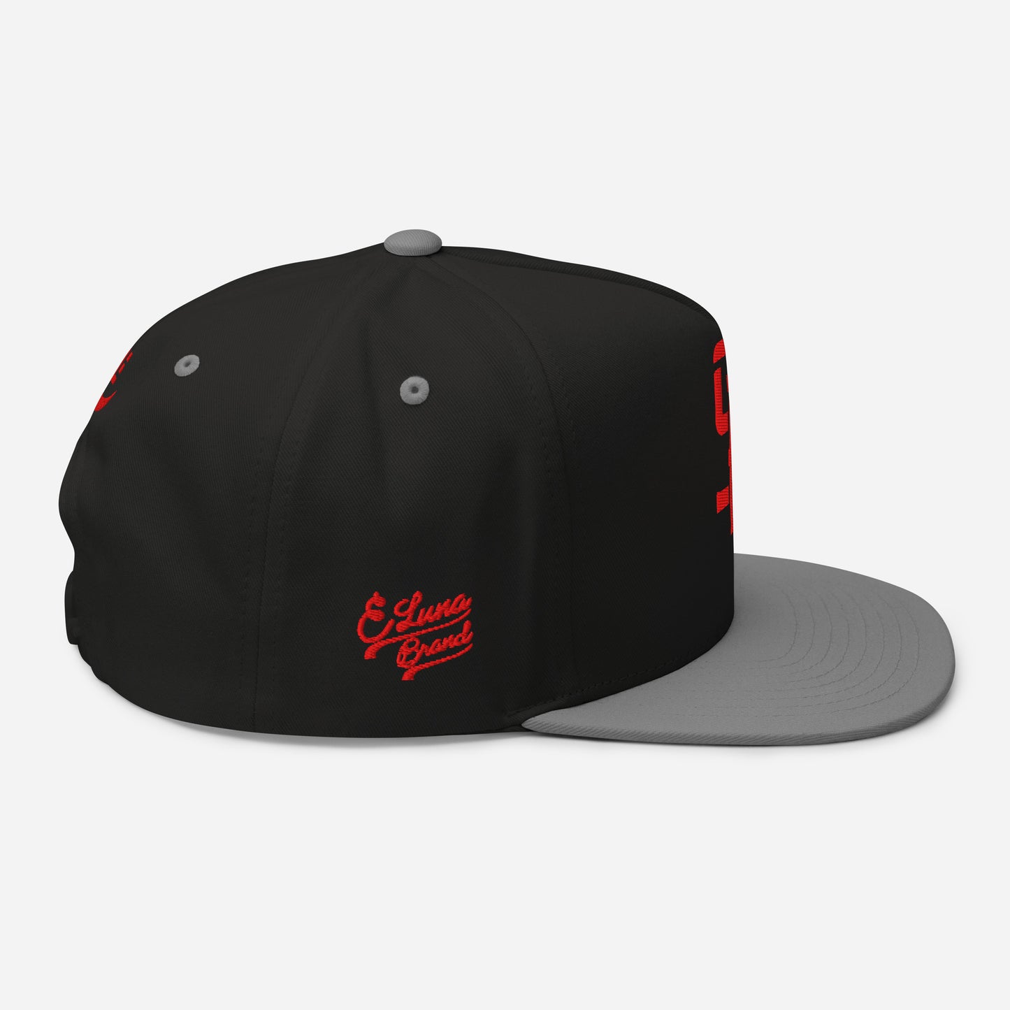 "SAN" 2.0 Flat Bill Cap | E Luna Brand PREMIUM | 4 Red Thread Logos [3D Puff Edition]
