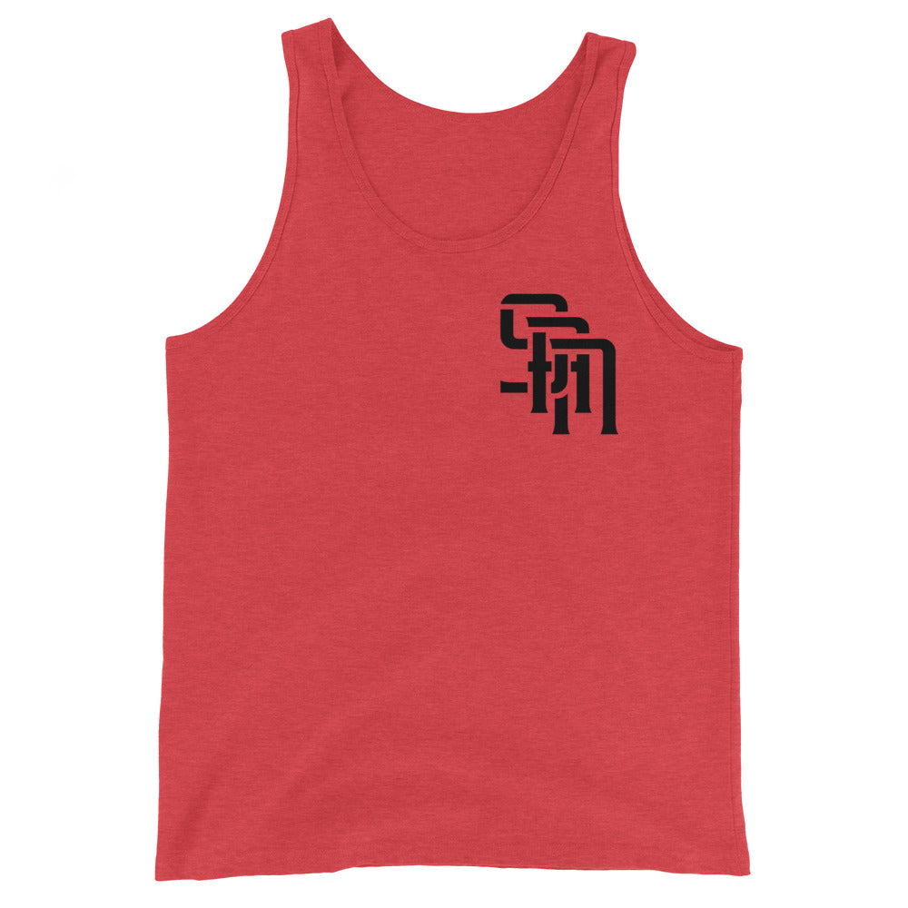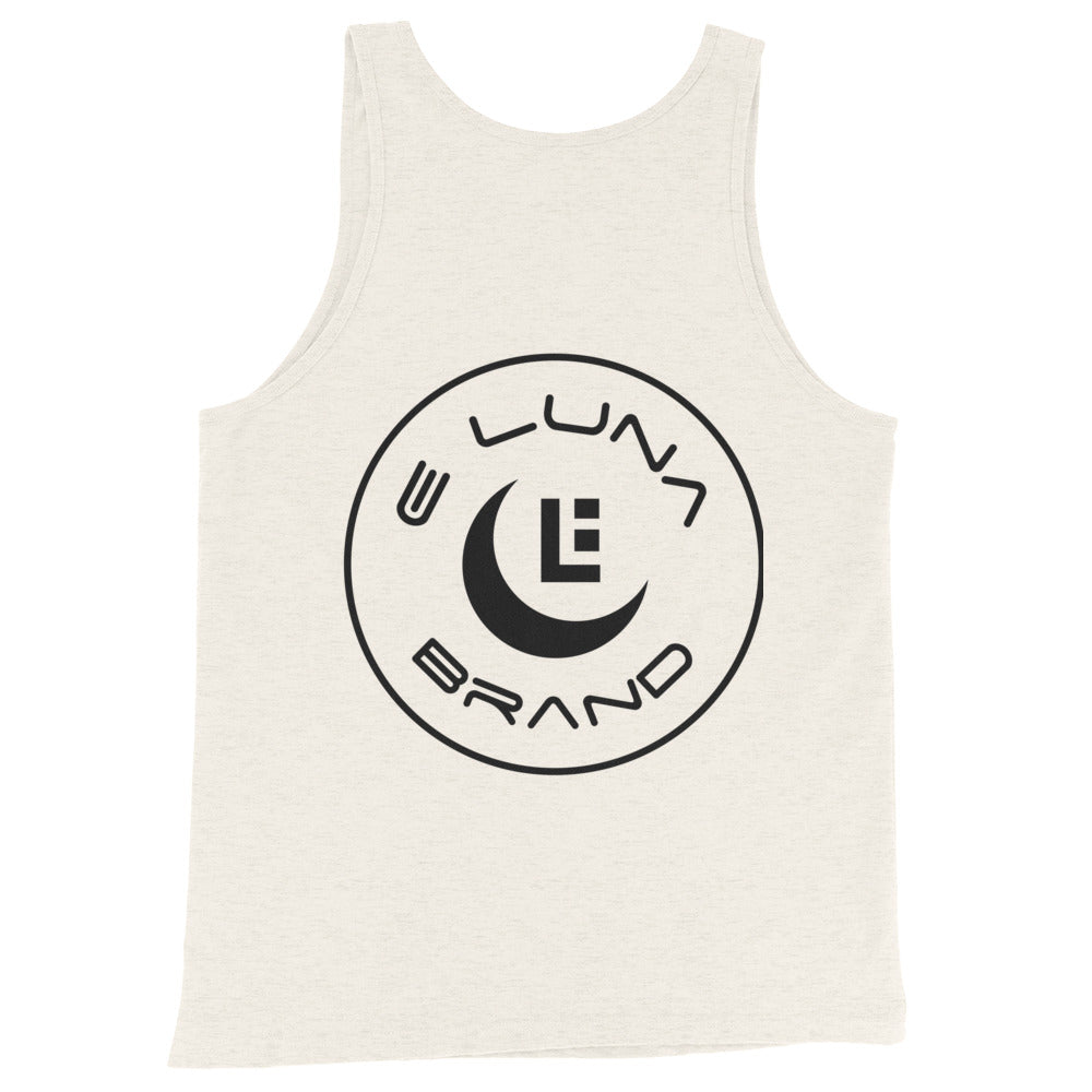 "SAN" 2.0 Men’s Staple Tank Top | E Luna Brand CHOICE | 2 Black Logos: Front Left & Back