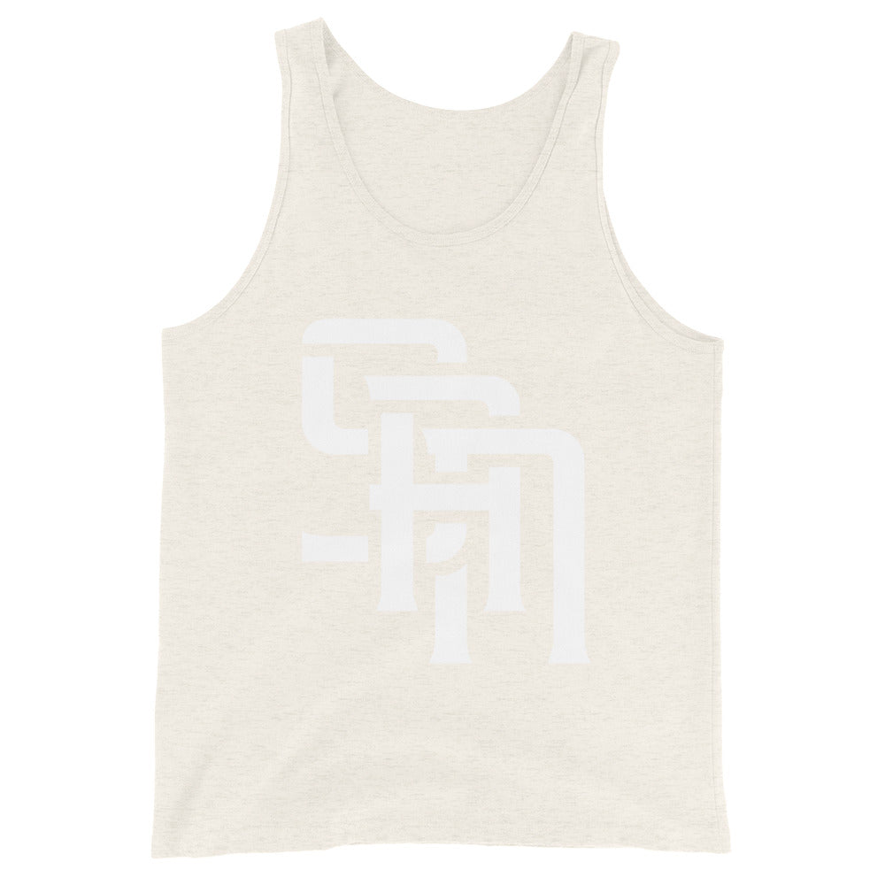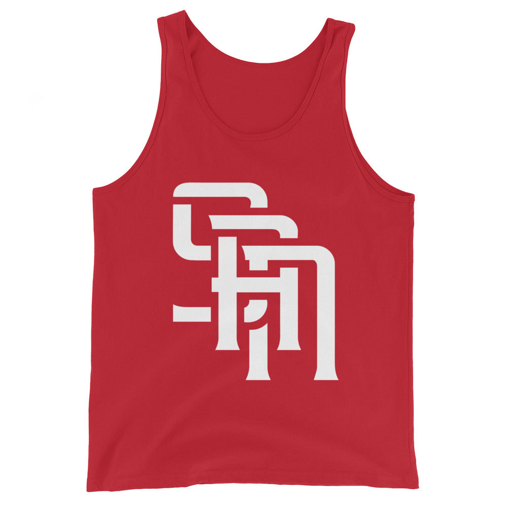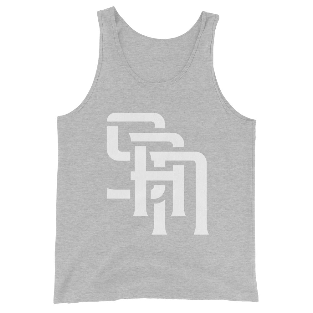 "SAN" 2.0 Men’s Staple Tank Top | E Luna Brand CHOICE | 2 White Logos: Front & Back Signature
