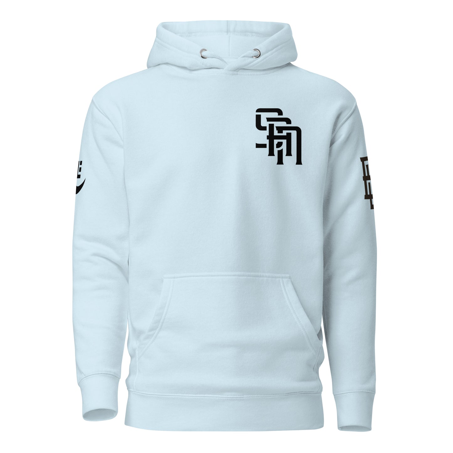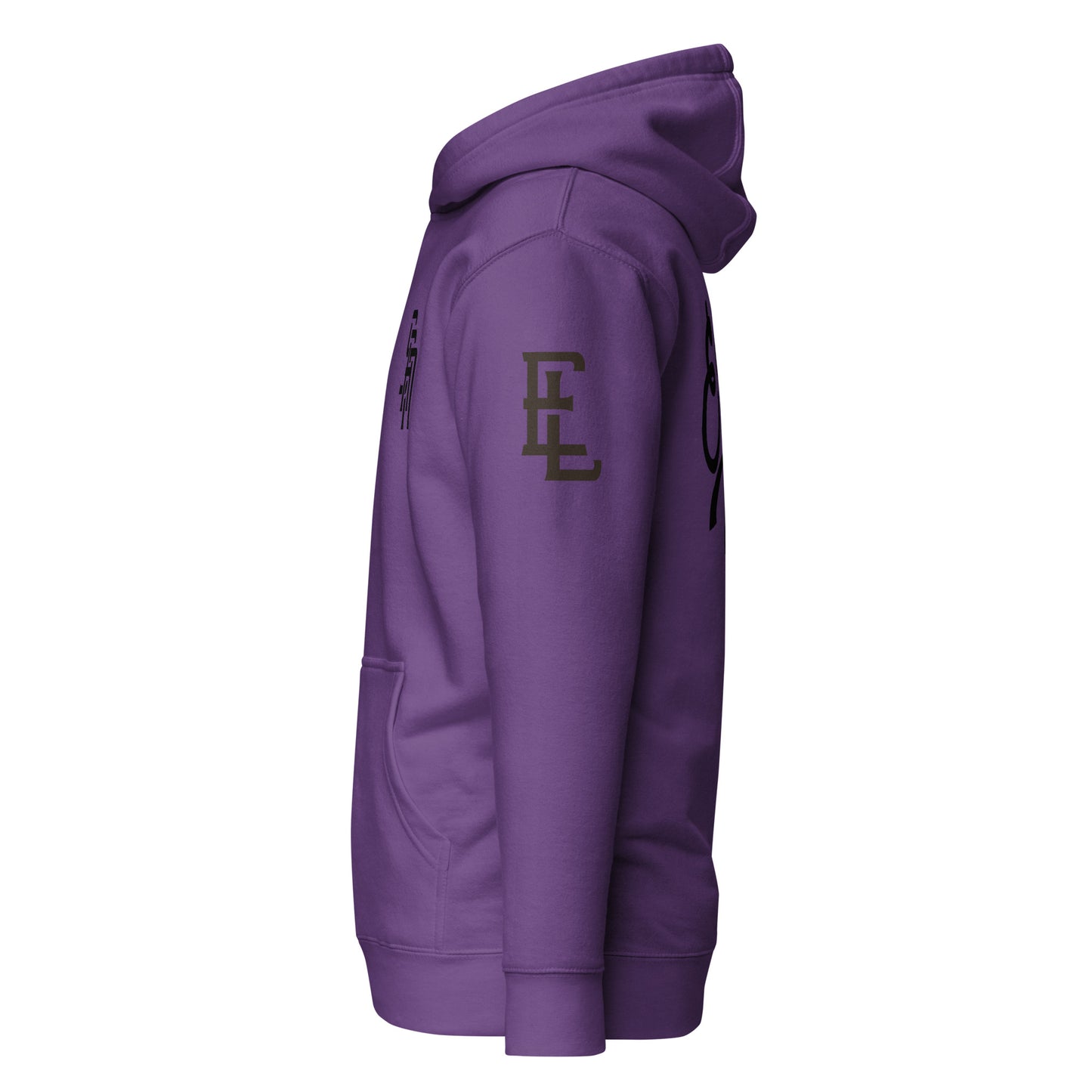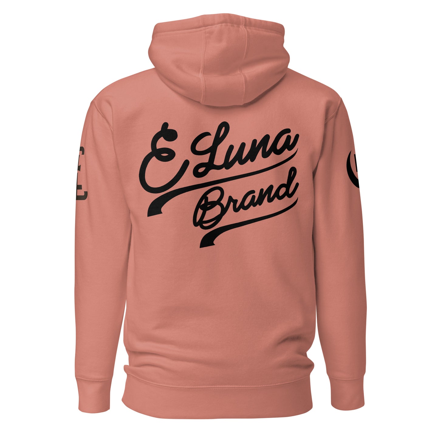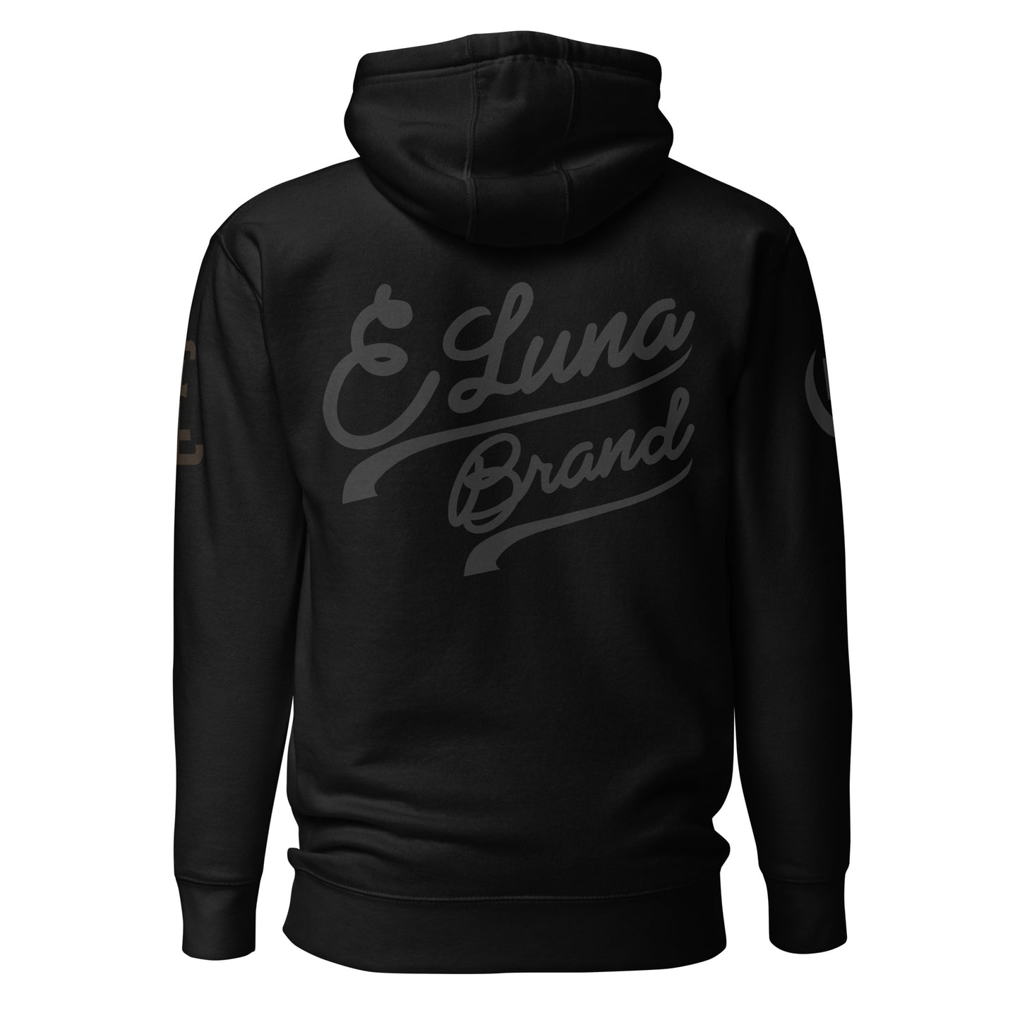 "SAN" 2.0 Unisex Premium Hoodie | E Luna Brand EXCLUSIVE | 4 Black Logos: Front Left, Left/Right Sleeves & Back Signature