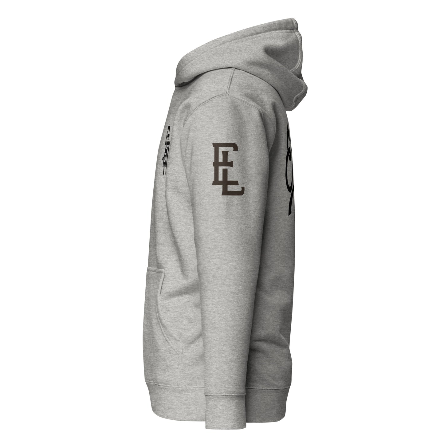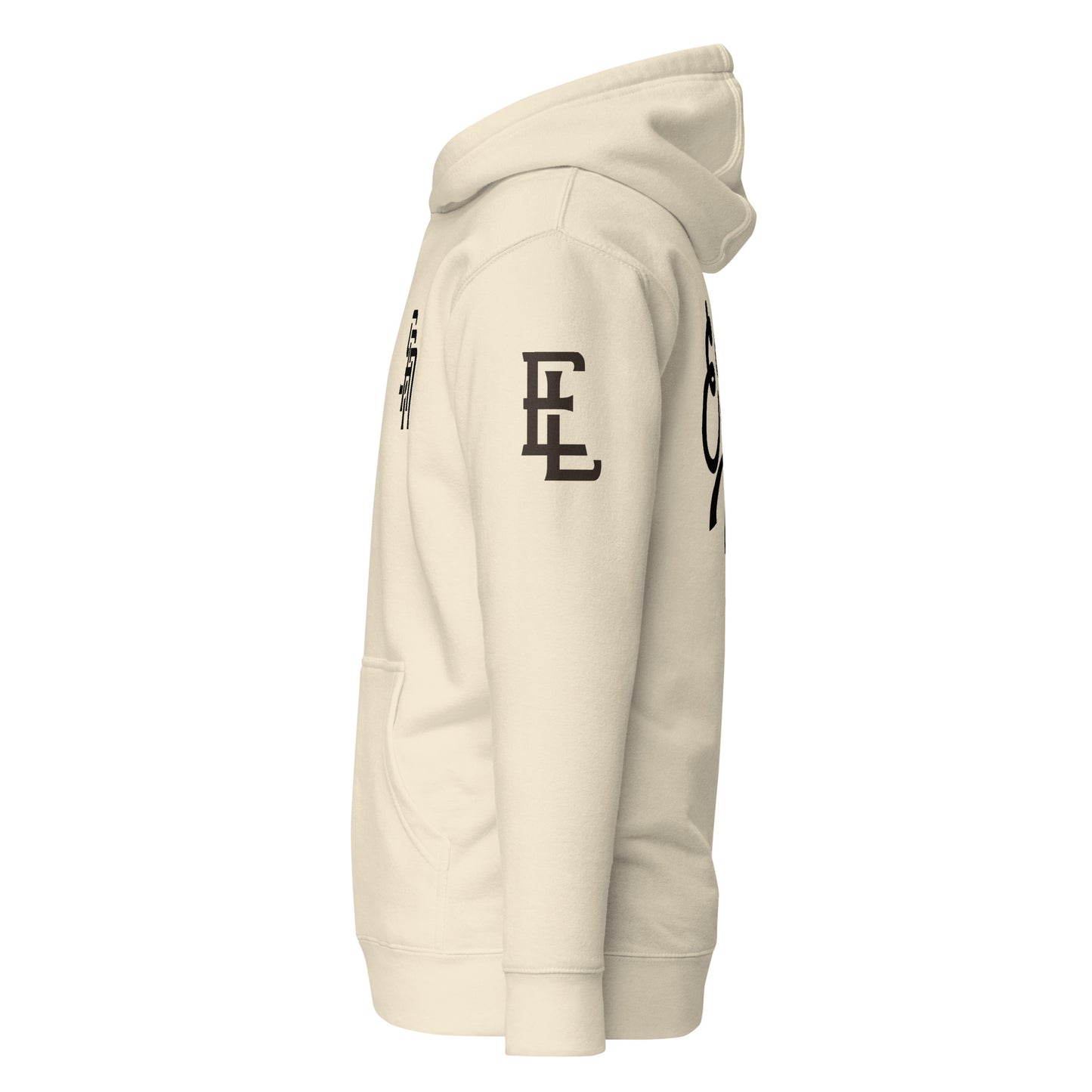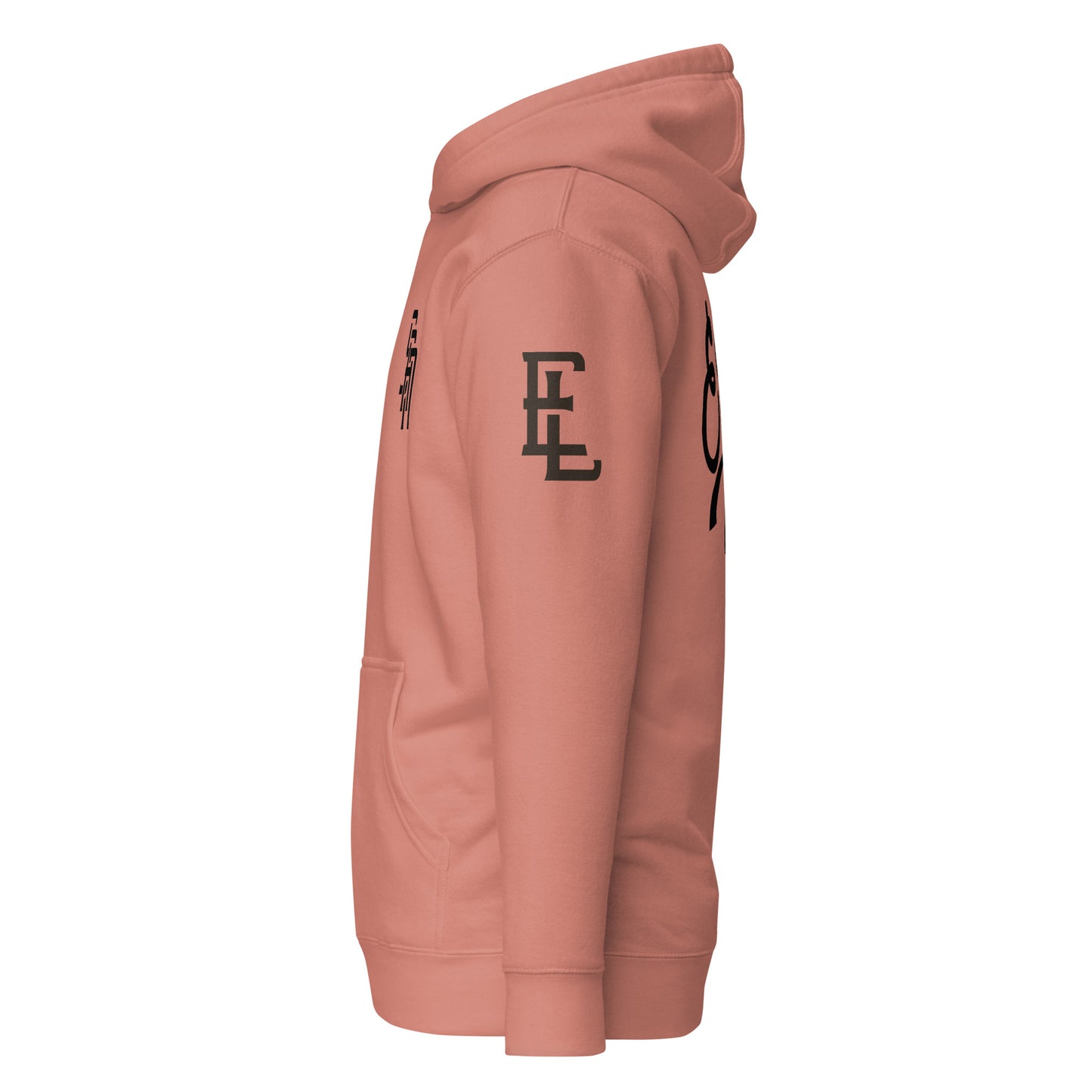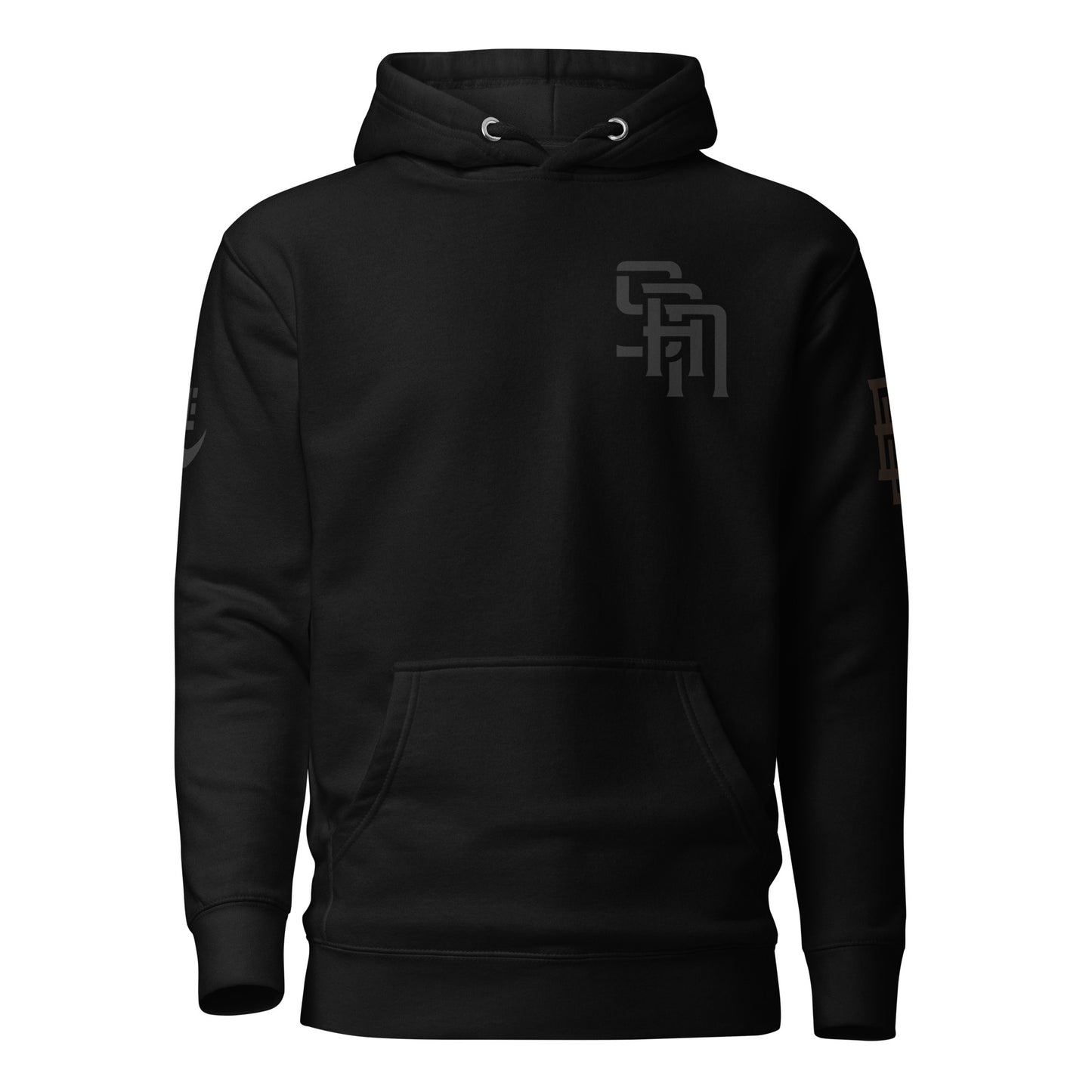 "SAN" 2.0 Unisex Premium Hoodie | E Luna Brand EXCLUSIVE | 4 Black Logos: Front Left, Left/Right Sleeves & Back Signature