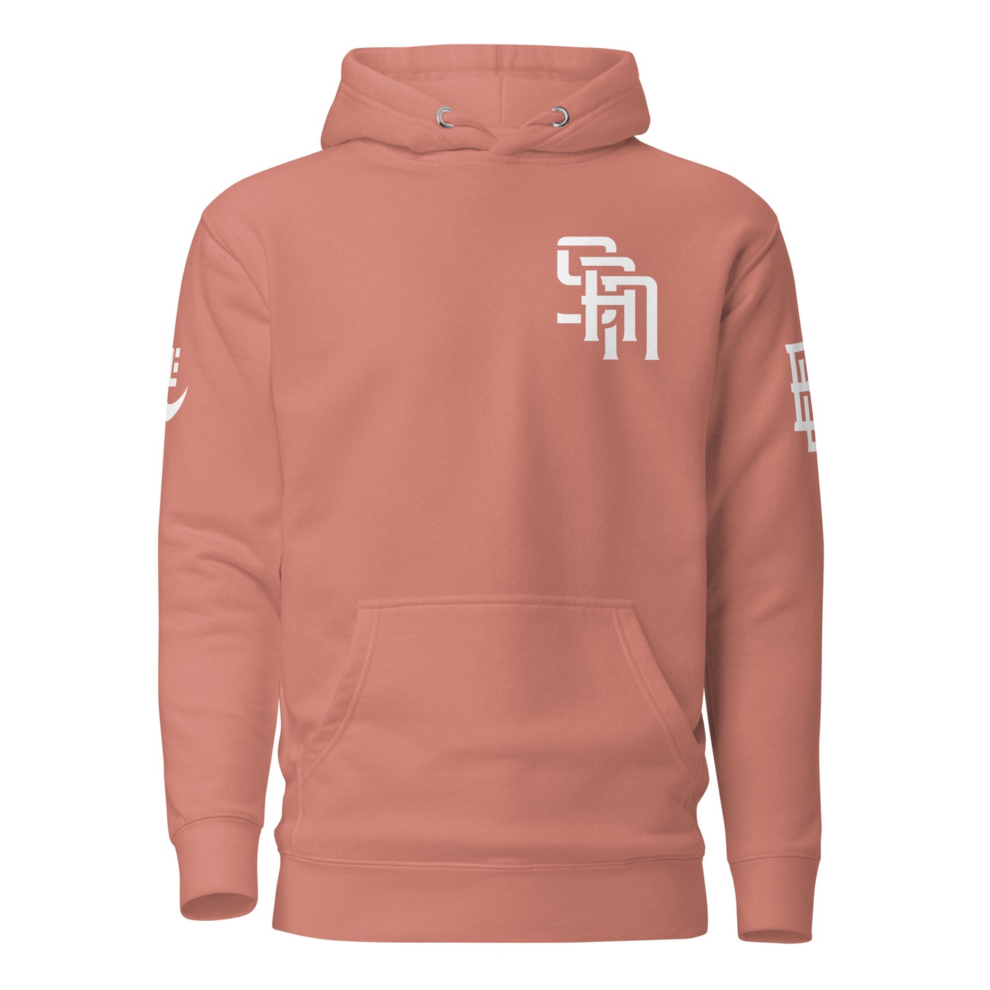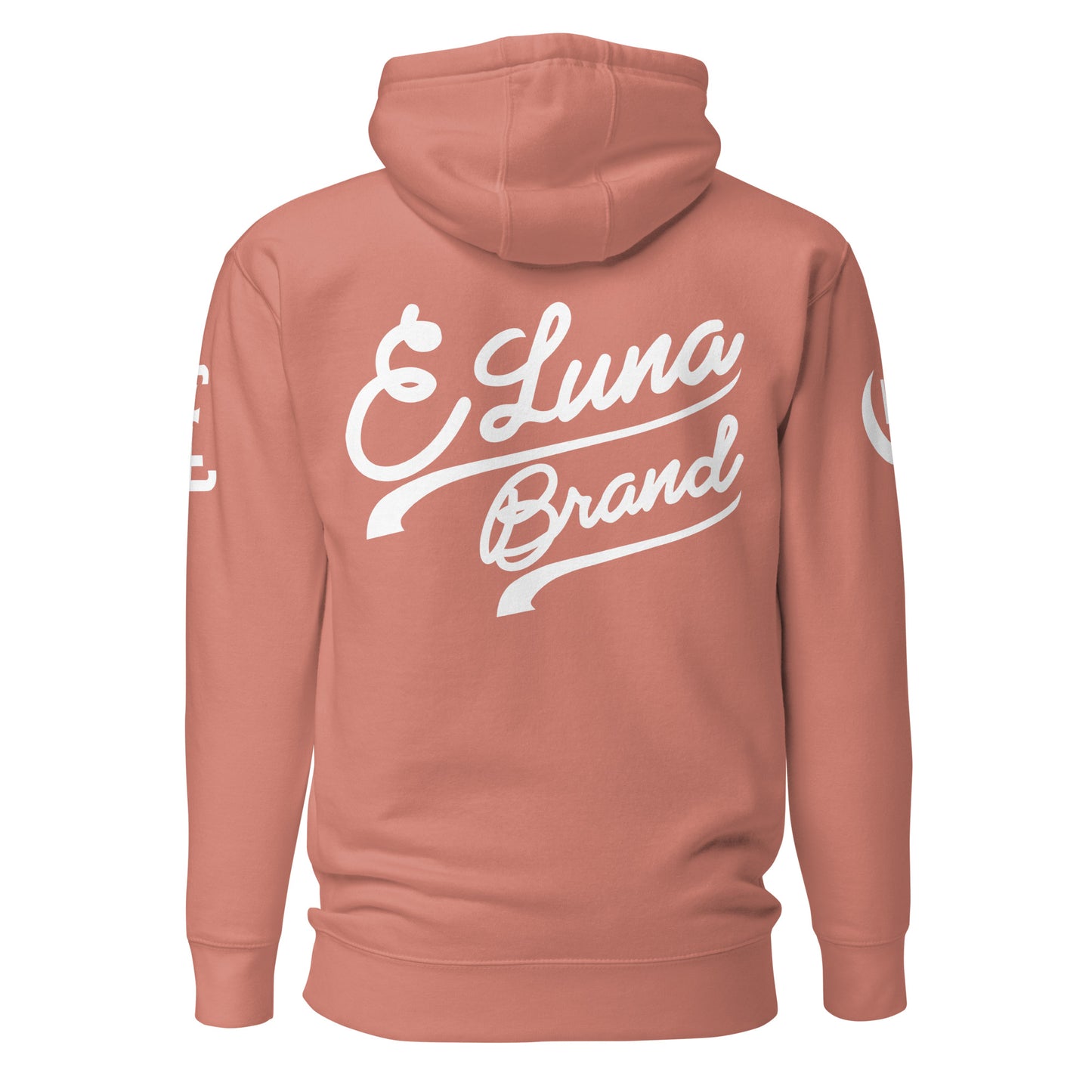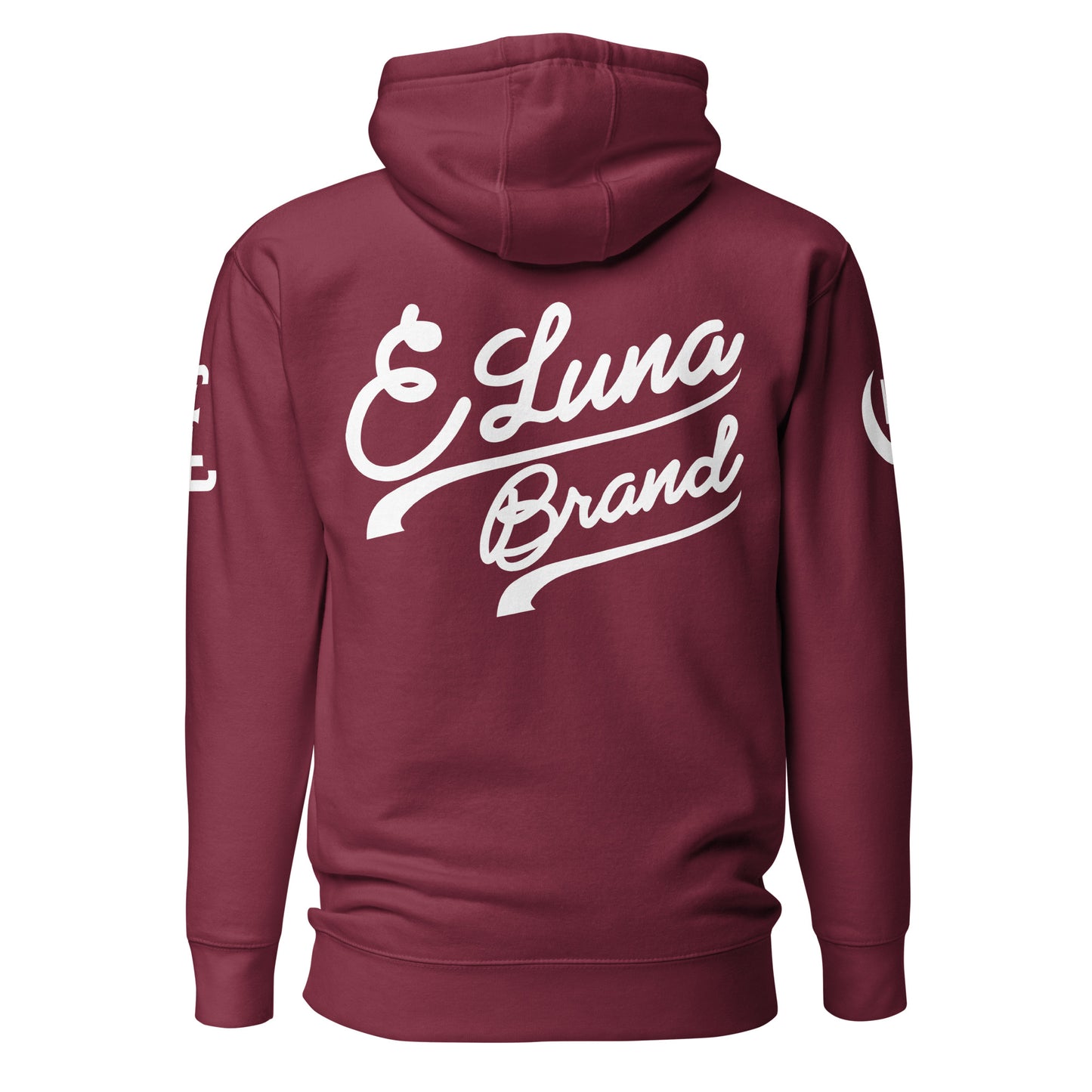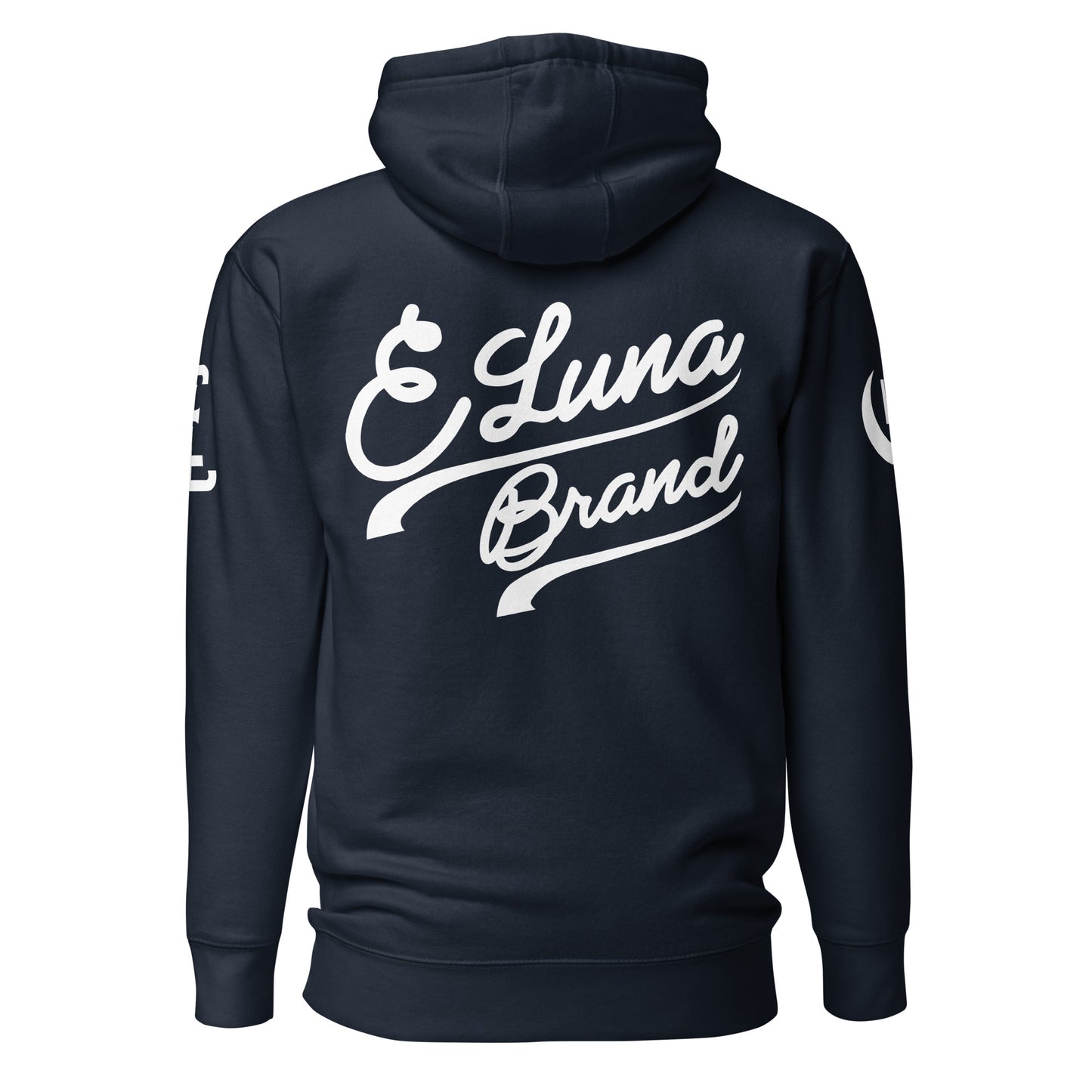 "SAN" 2.0 Unisex Premium Hoodie | E Luna Brand EXCLUSIVE | 4 White Logos: Front Left, Left/Right Sleeves & Back Signature