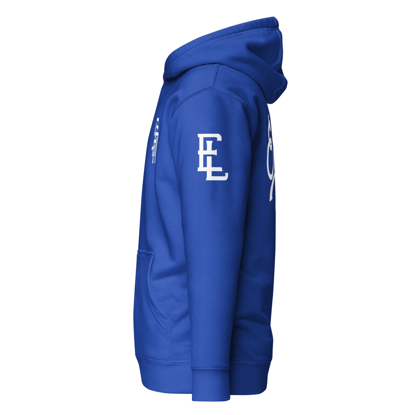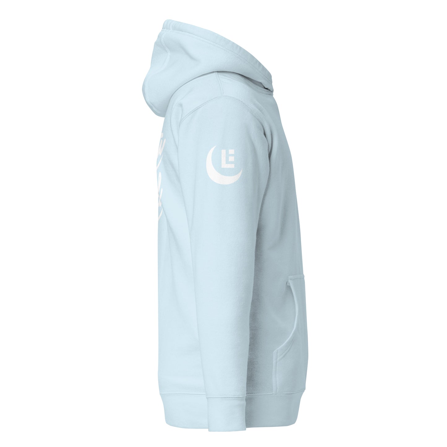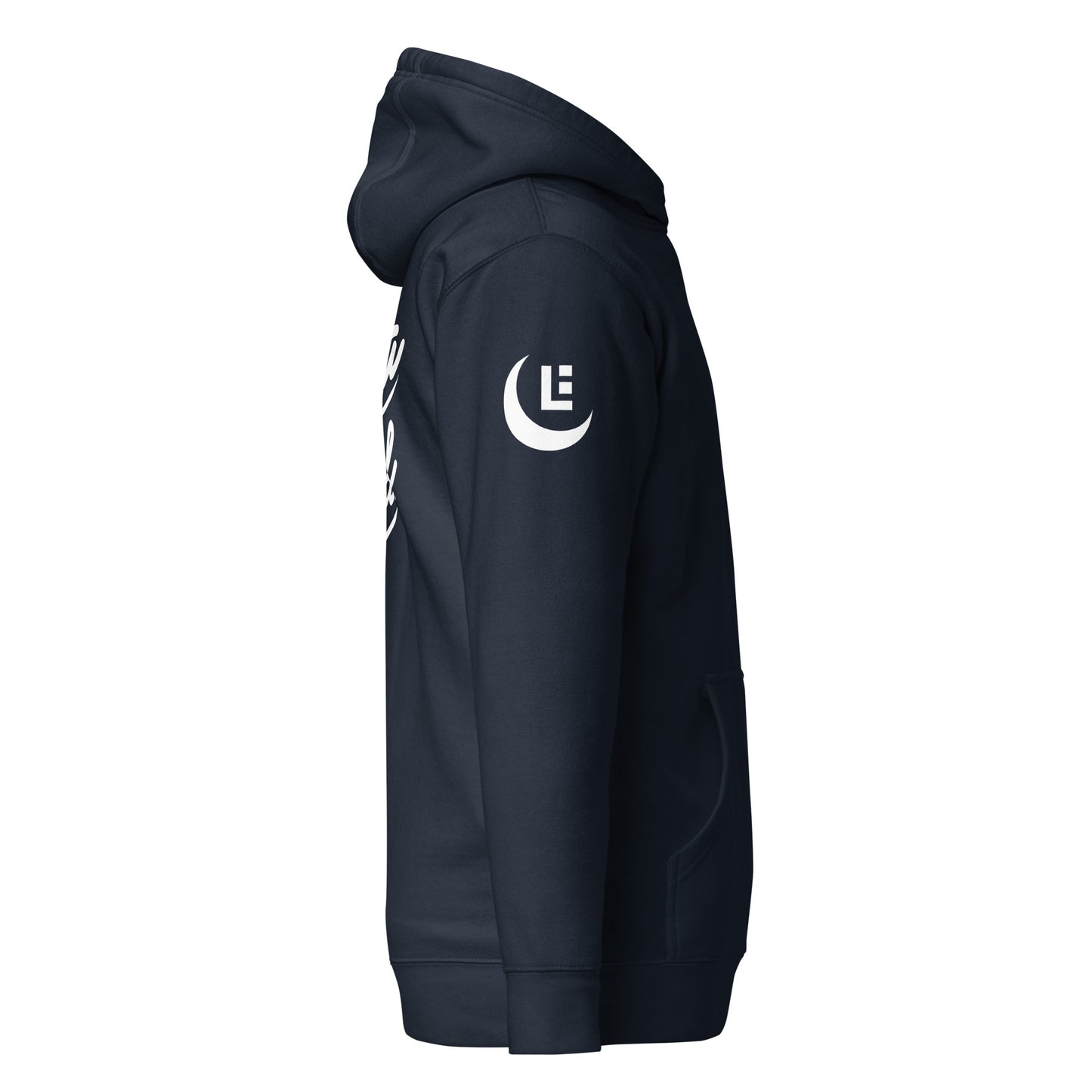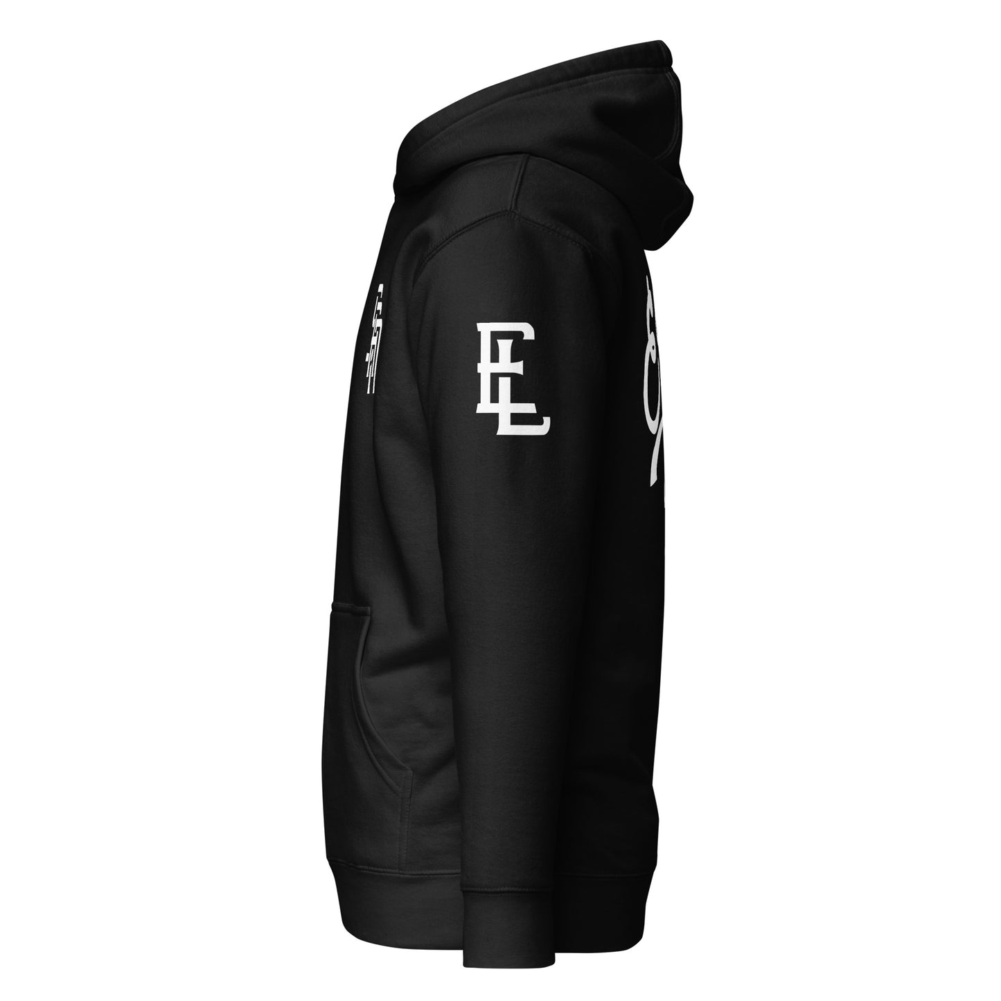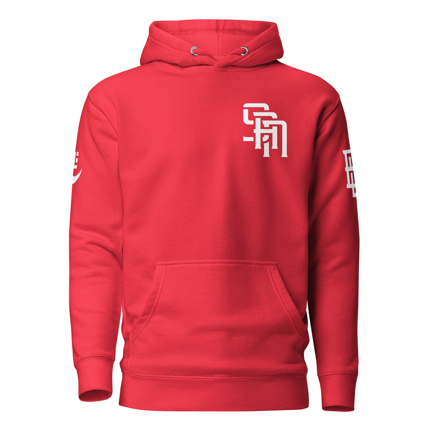 "SAN" 2.0 Unisex Premium Hoodie | E Luna Brand EXCLUSIVE | 4 White Logos: Front Left, Left/Right Sleeves & Back Signature