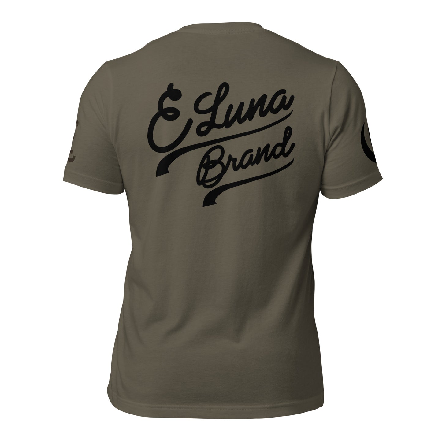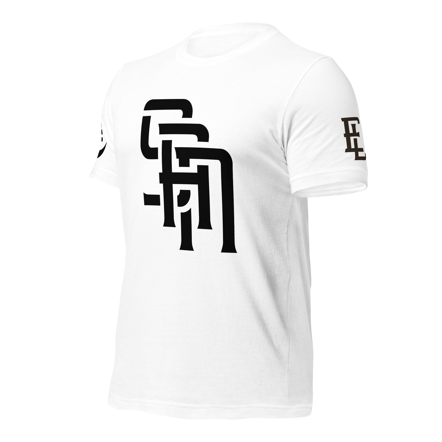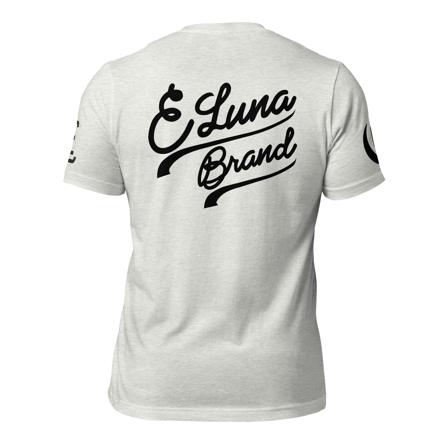 "SAN" 2.0 Unisex Staple T-Shirt | E Luna Brand EXCLUSIVE | 4 Black Logos: Front, Left/Right Sleeves & Back Signature