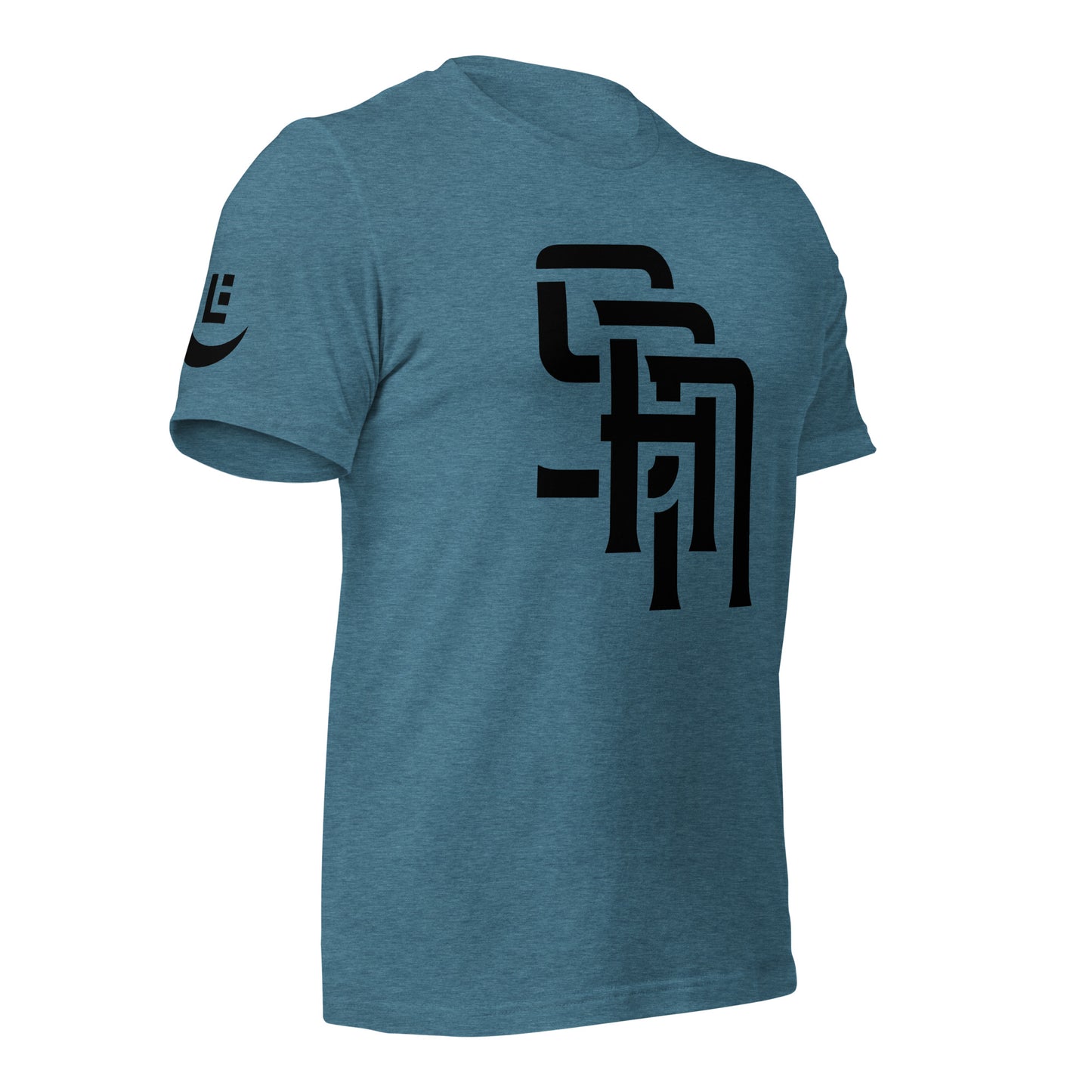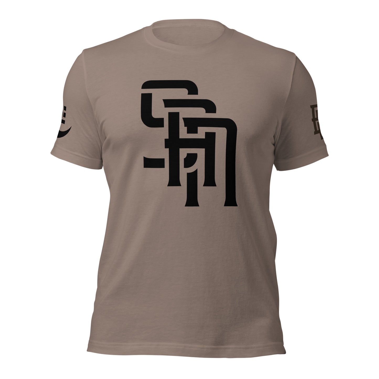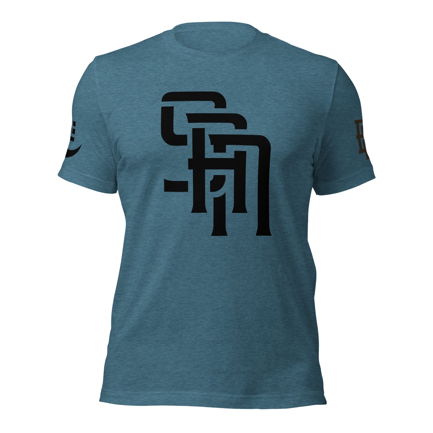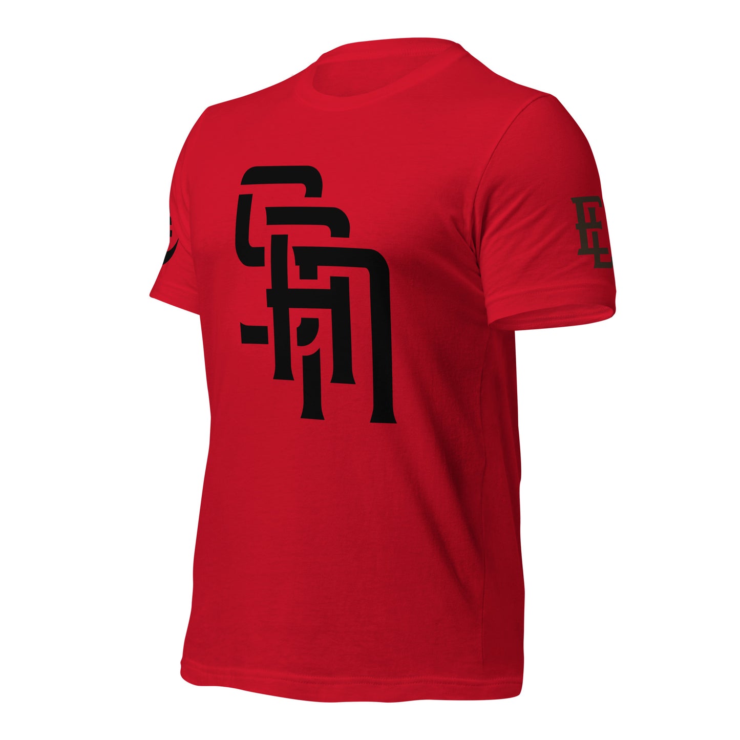 "SAN" 2.0 Unisex Staple T-Shirt | E Luna Brand EXCLUSIVE | 4 Black Logos: Front, Left/Right Sleeves & Back Signature