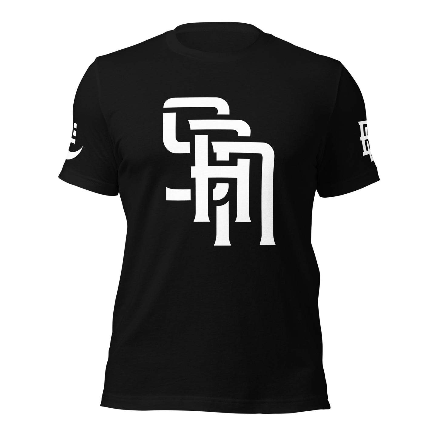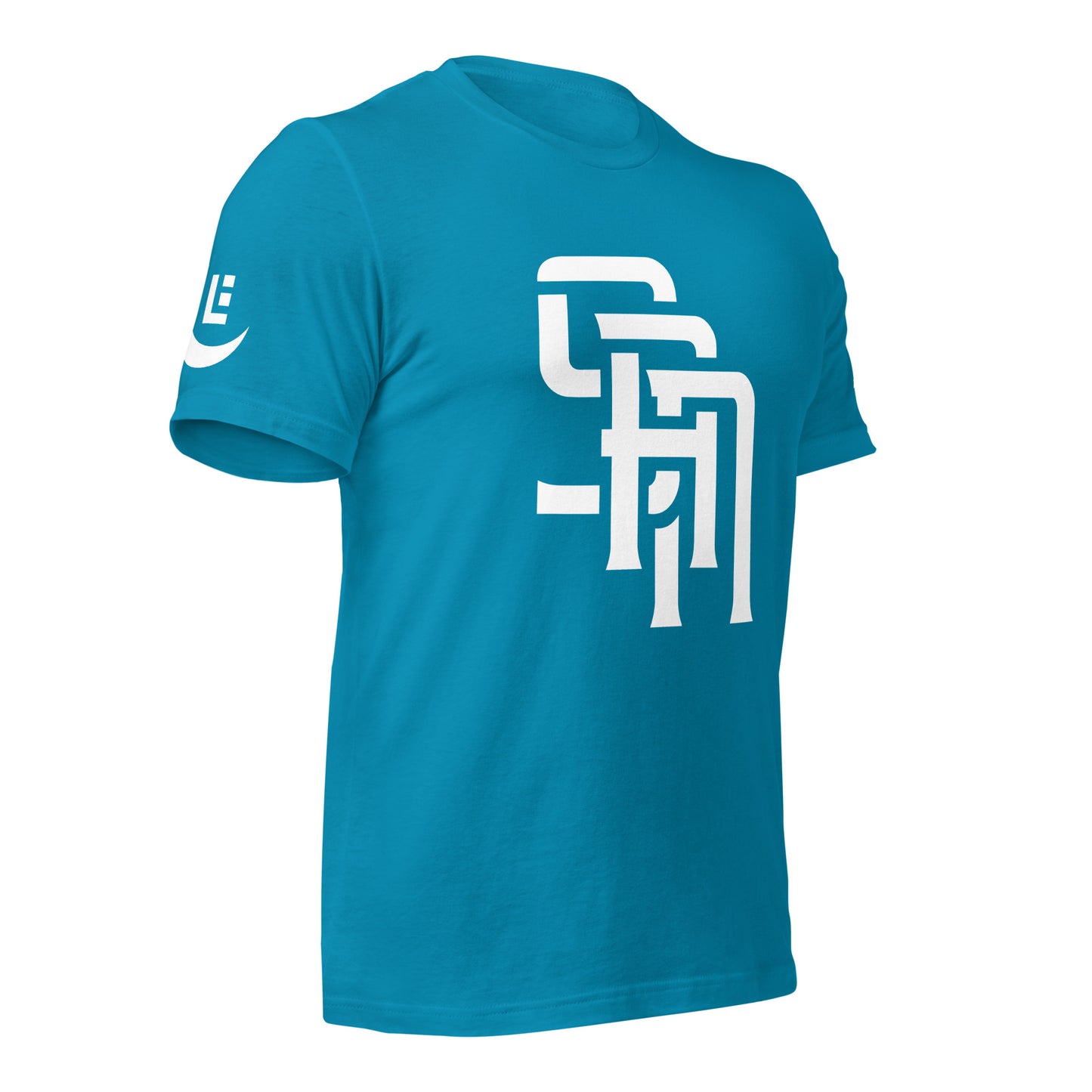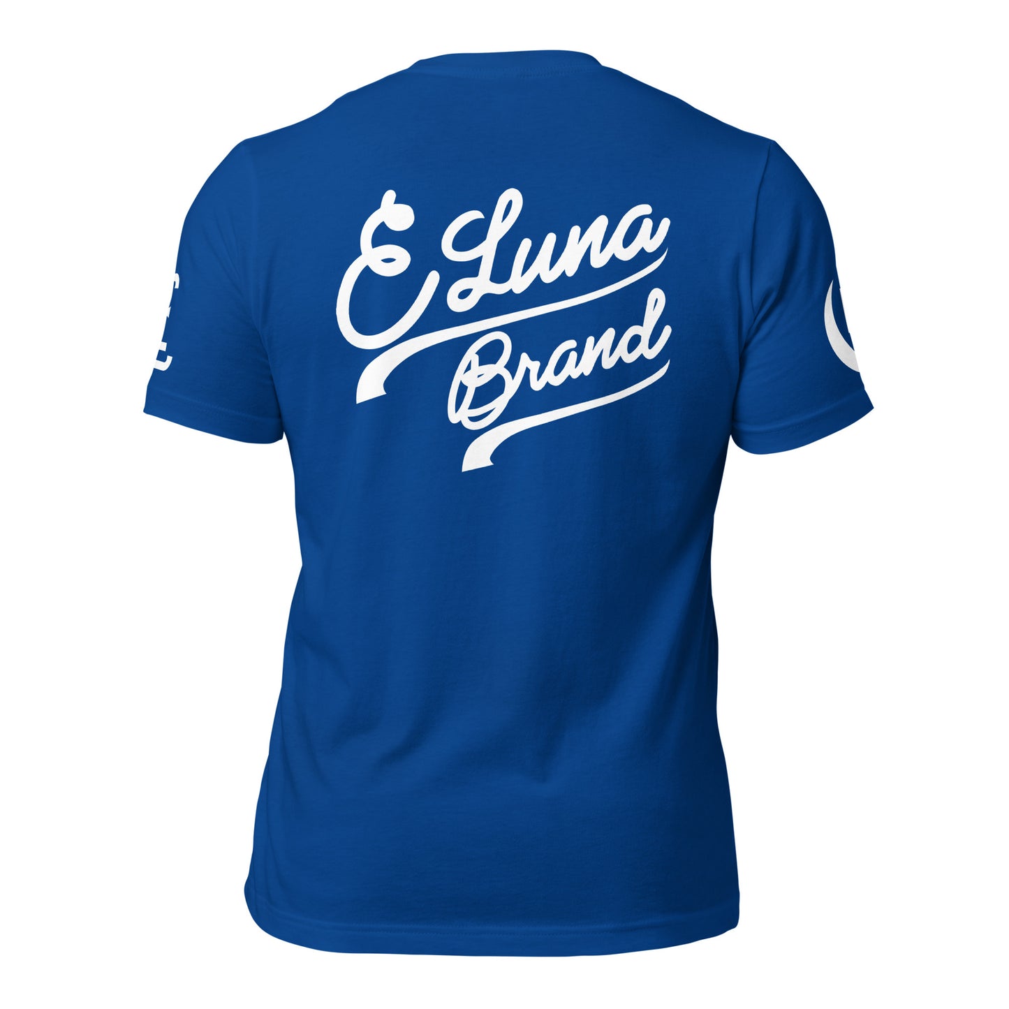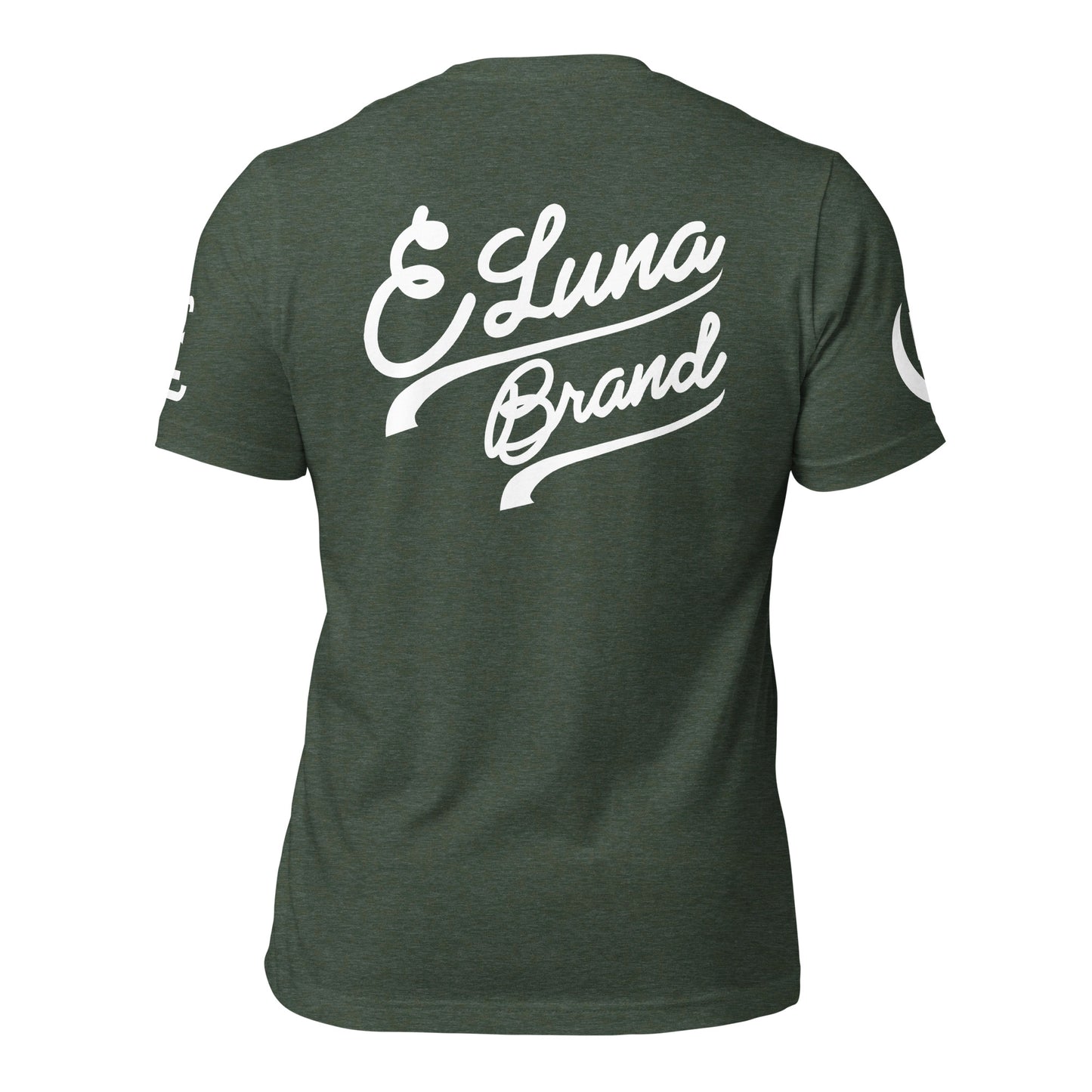 "SAN" 2.0 Unisex Staple T-Shirt | E Luna Brand EXCLUSIVE | 4 White Logos: Front, Left/Right Sleeves & Back Signature