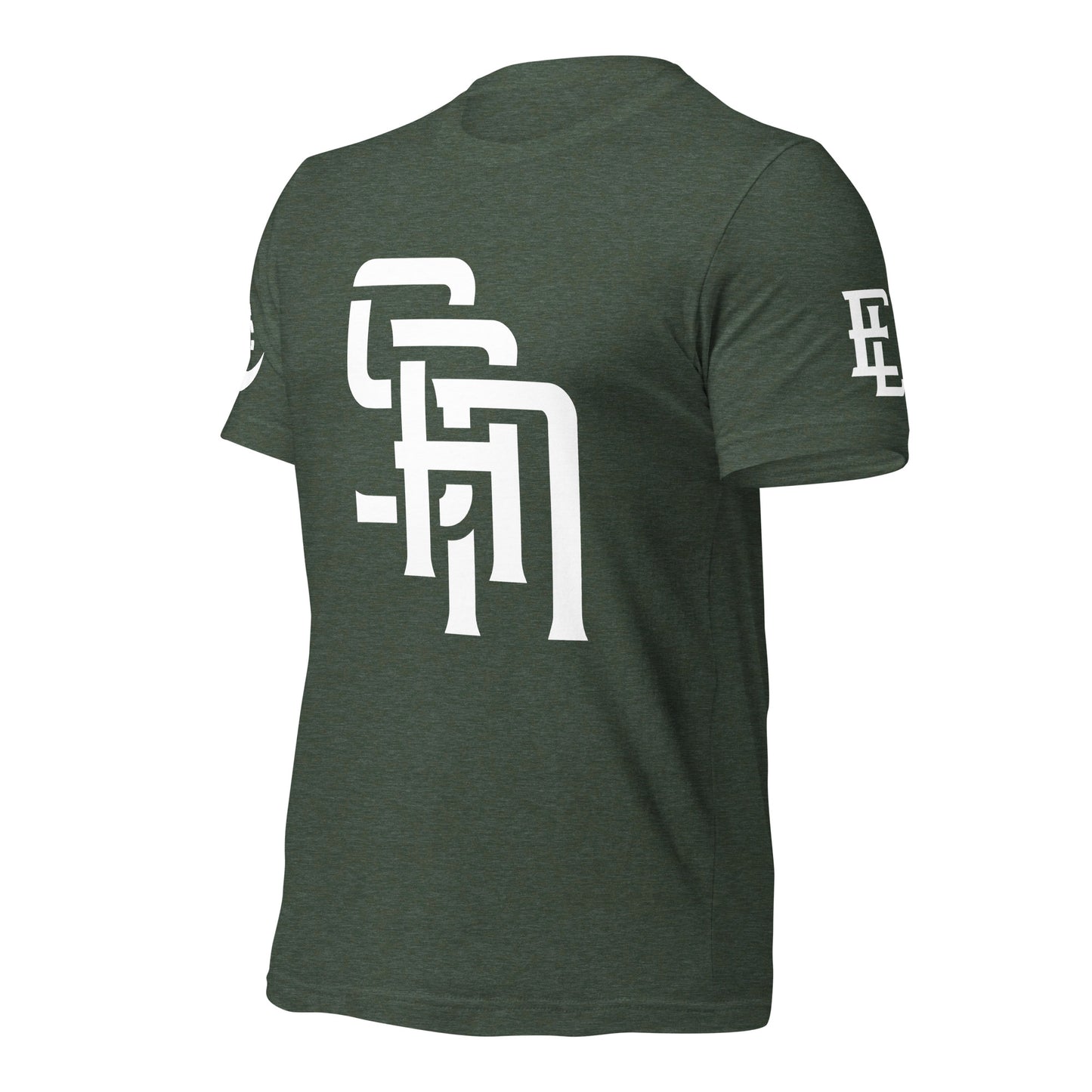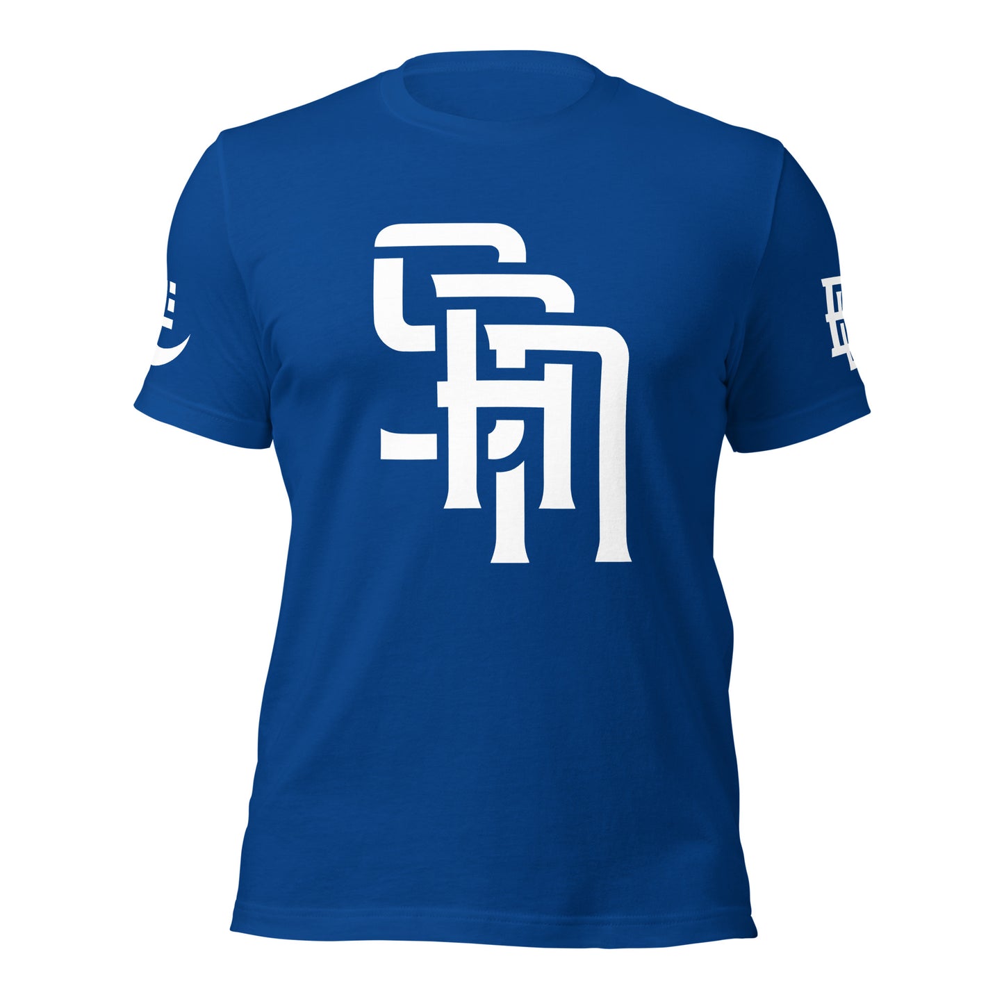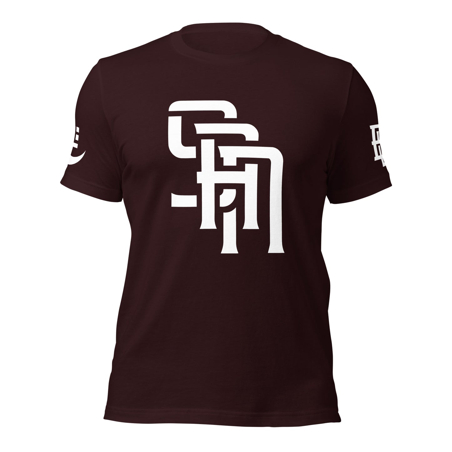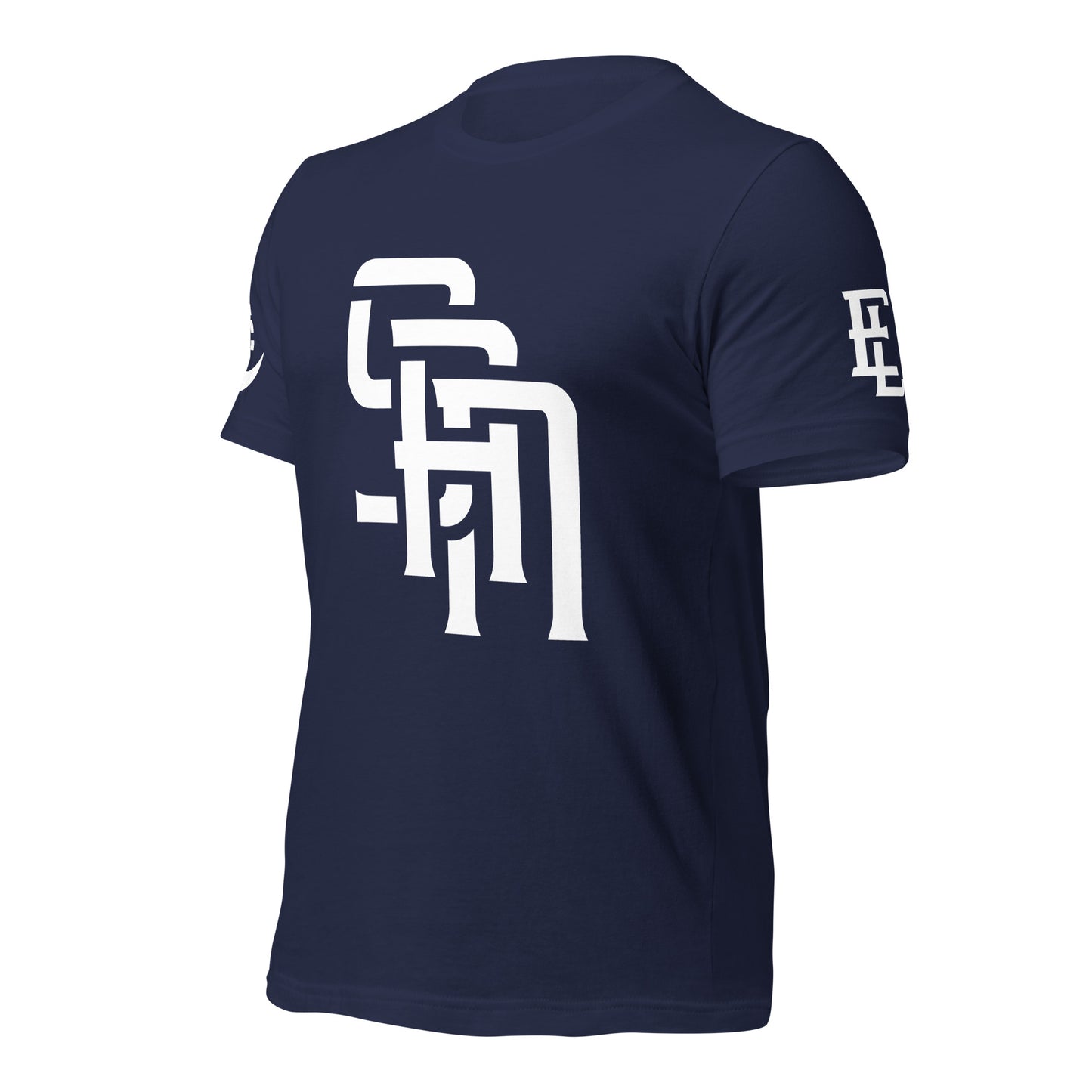 "SAN" 2.0 Unisex Staple T-Shirt | E Luna Brand EXCLUSIVE | 4 White Logos: Front, Left/Right Sleeves & Back Signature