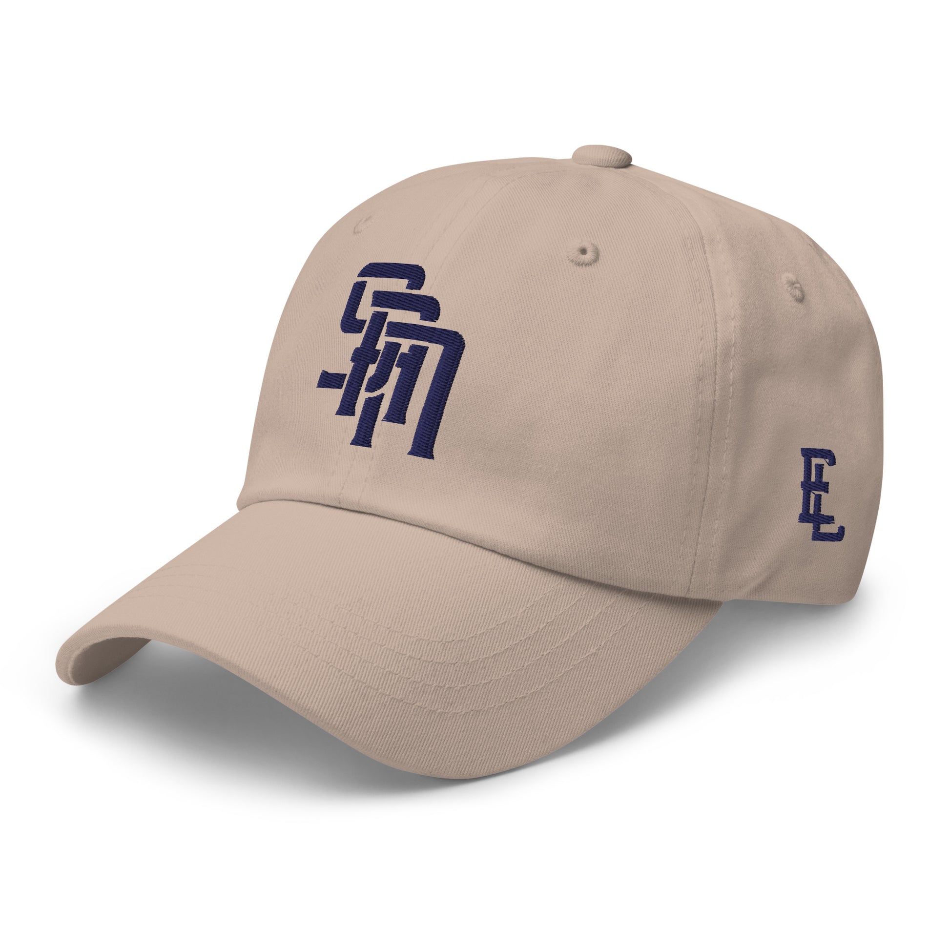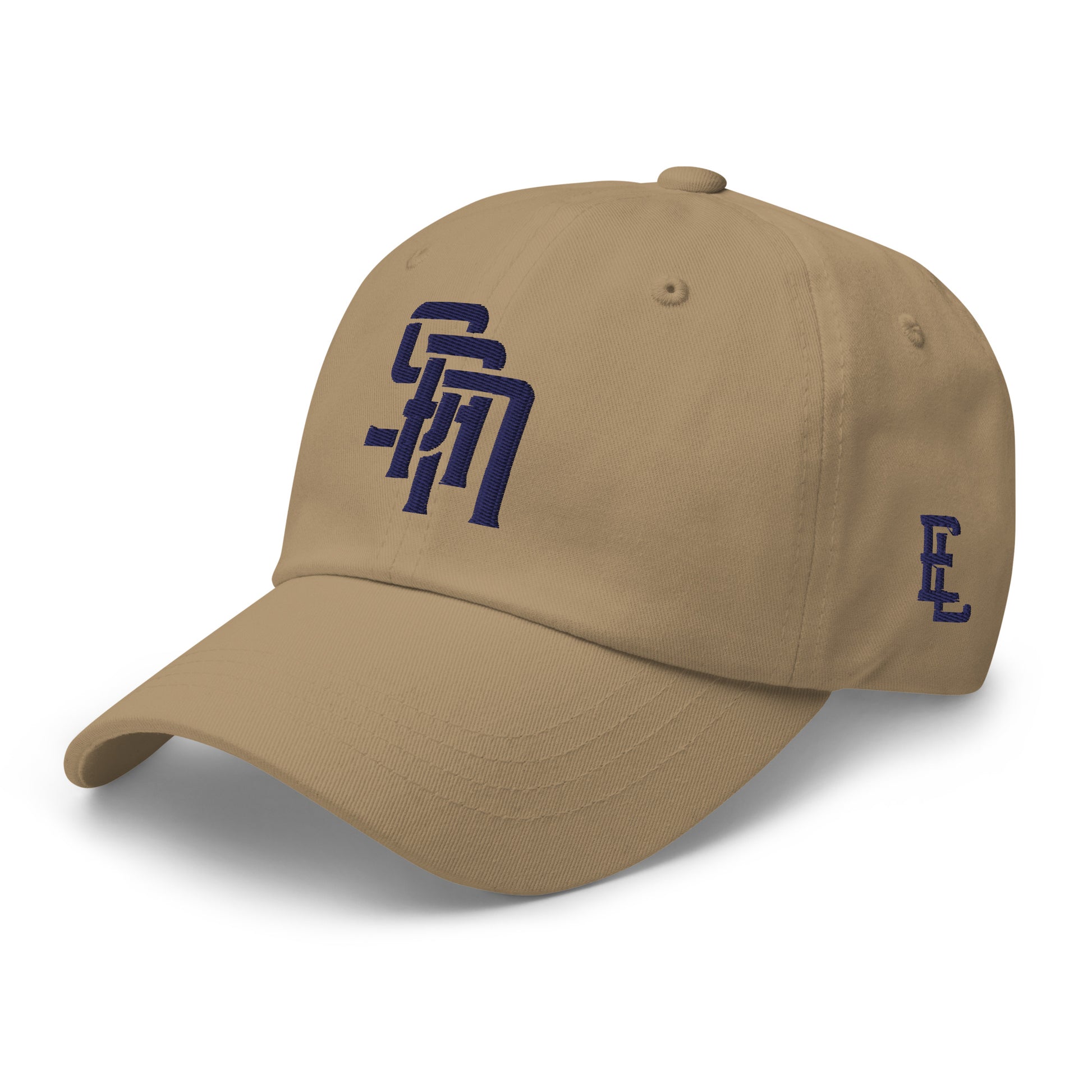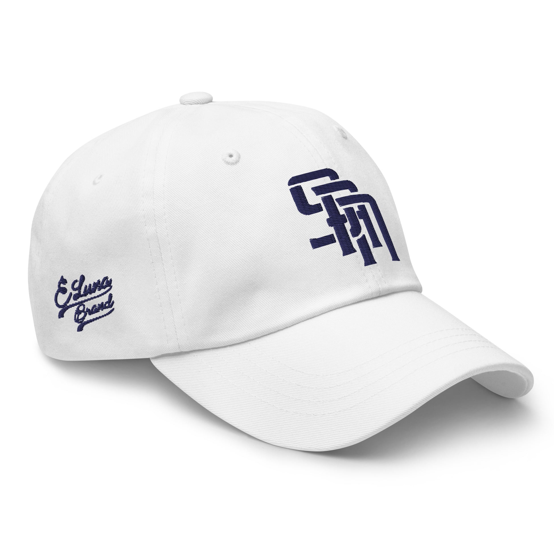 "SAN" Classic Dad Hat | Yupoong 6245CM | E Luna Brand PREMIUM Quadcrest 4 Navy Thread Logos: Front, Left, Right Signature & Back [3D Puff Edition]