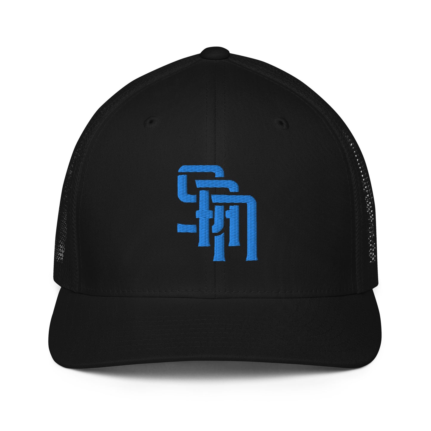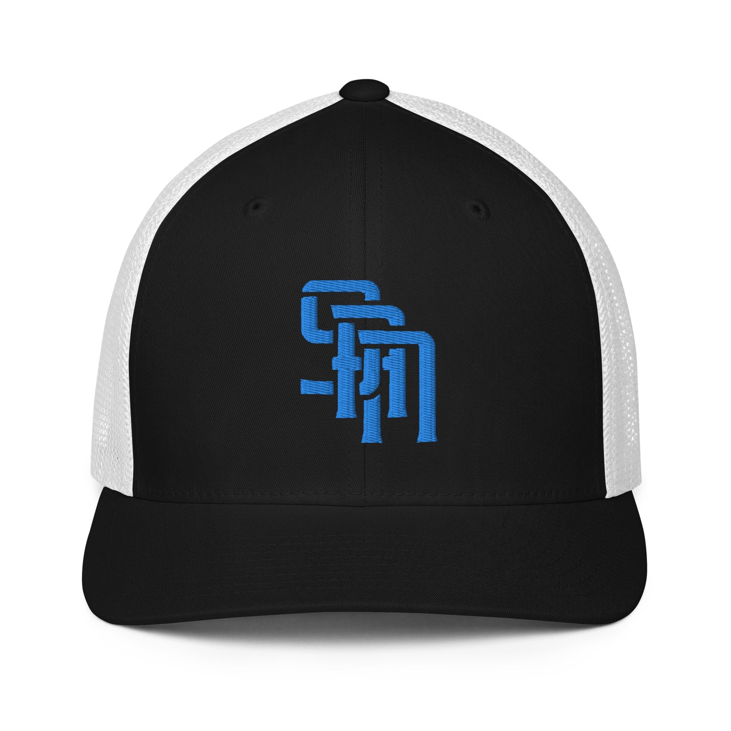 "SAN" Closed-Back Trucker Cap | Flexfit 6511 | E Luna Brand CLASSIC Solocrest 1 Aqua/Teal Thread Front Logo