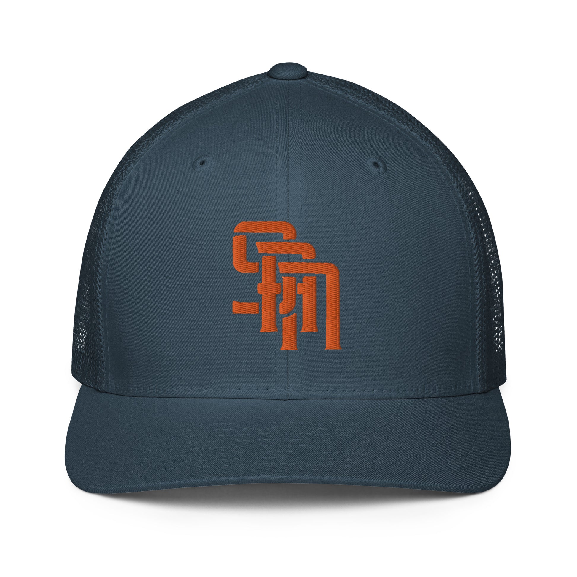 "SAN" Closed-Back Trucker Cap | Flexfit 6511 | E Luna Brand CLASSIC Solocrest 1 Orange Thread Front Logo [3D Puff Edition]