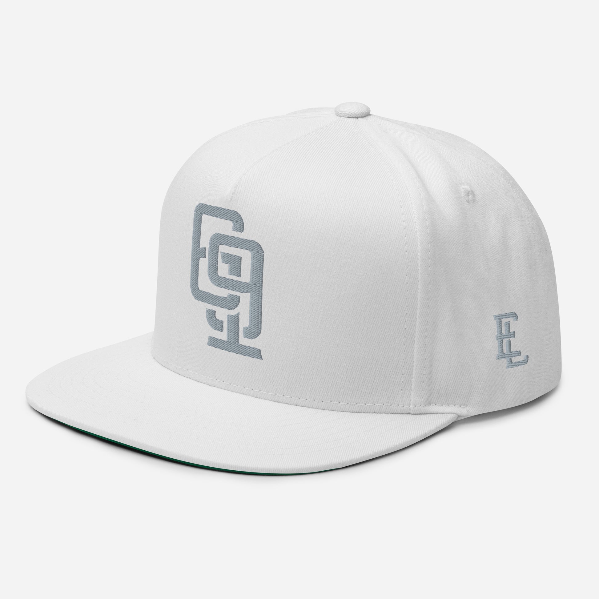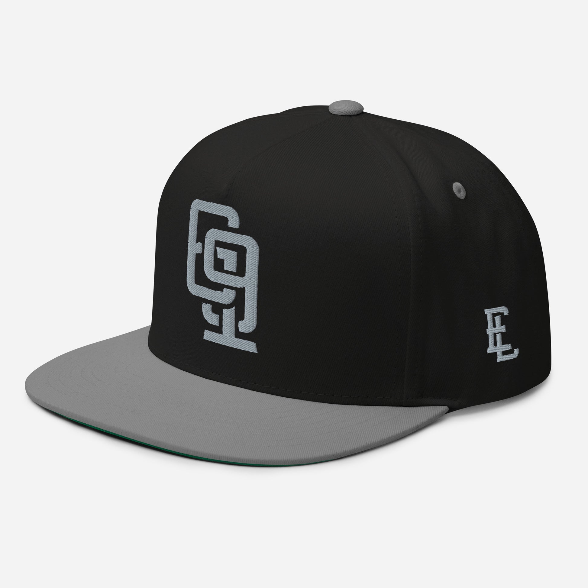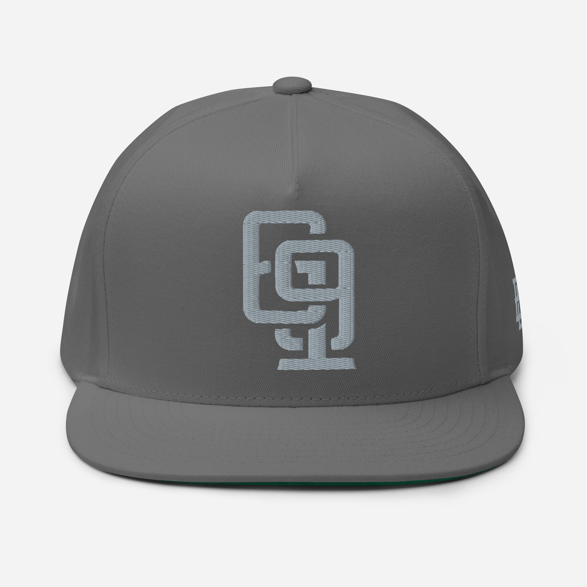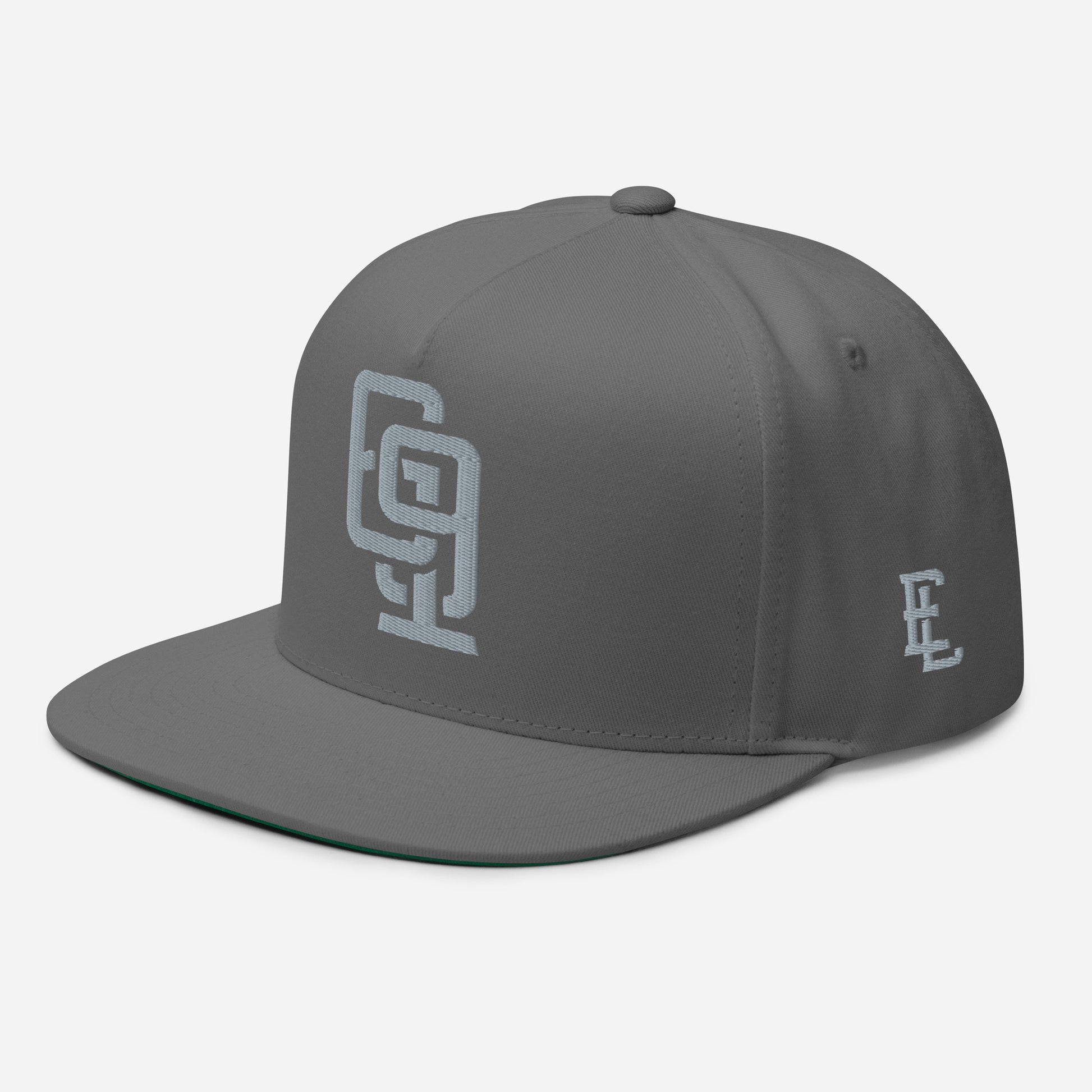 "619" Flat Bill Cap | Yupoong 6007 | E Luna Brand ESSENTIAL Duocrest 2 Grey Thread Logos: Front & Left