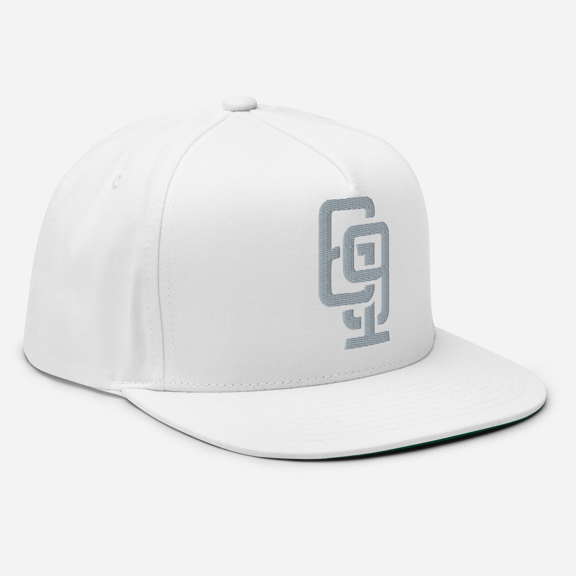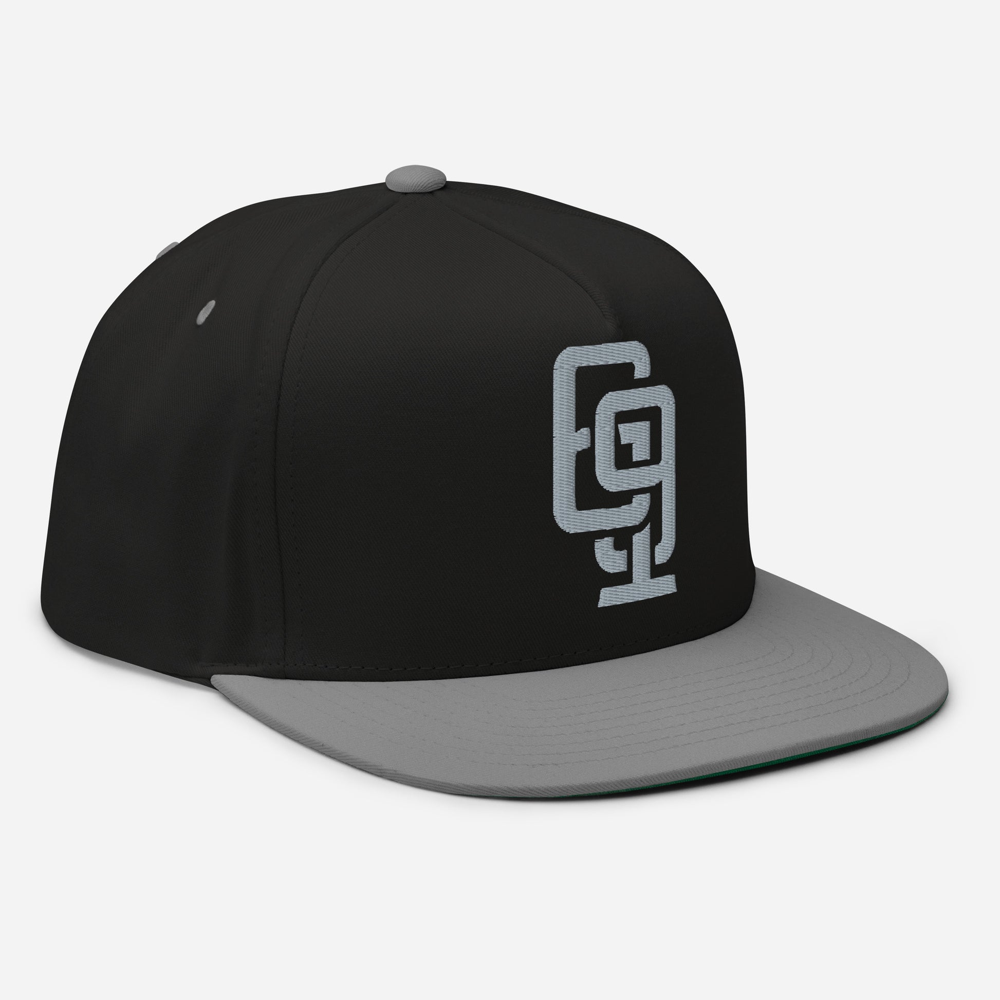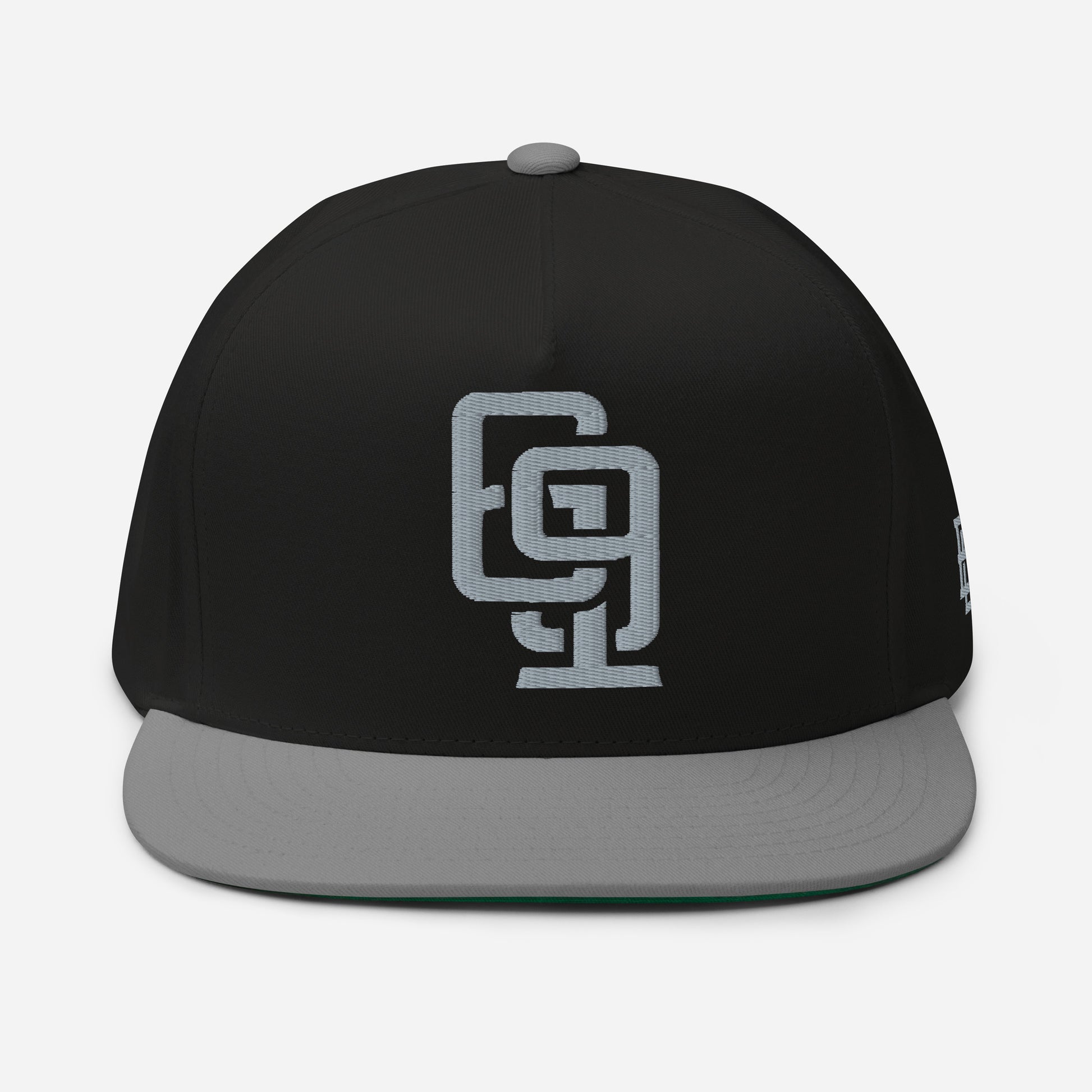 "619" Flat Bill Cap | Yupoong 6007 | E Luna Brand ESSENTIAL Duocrest 2 Grey Thread Logos: Front & Left