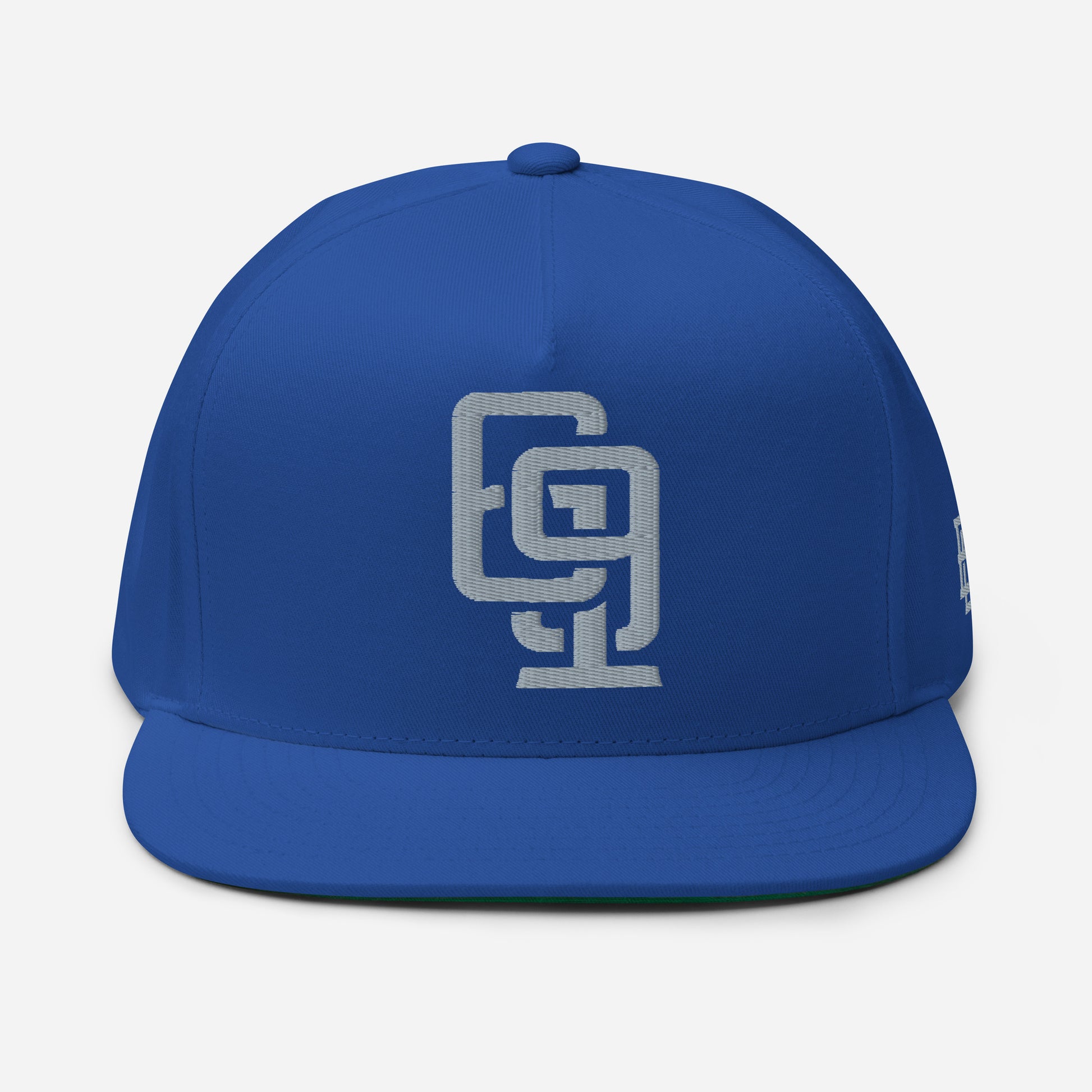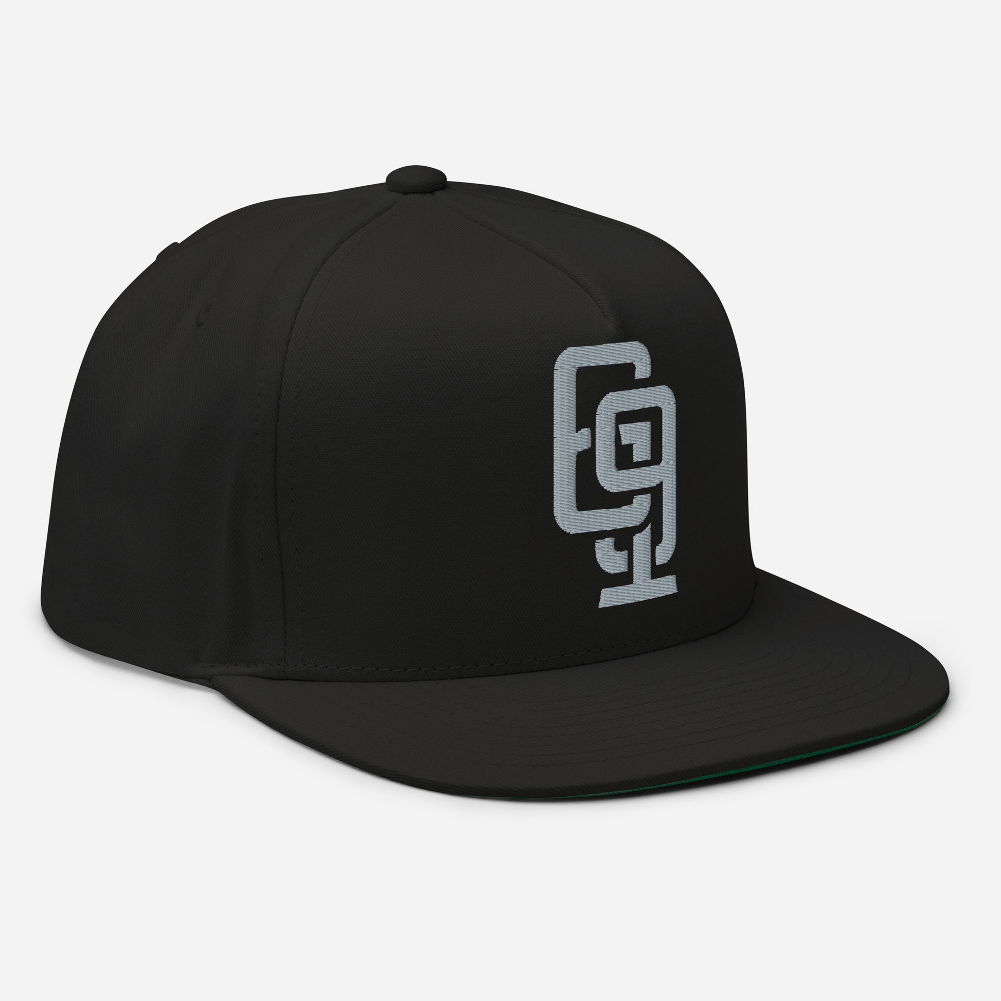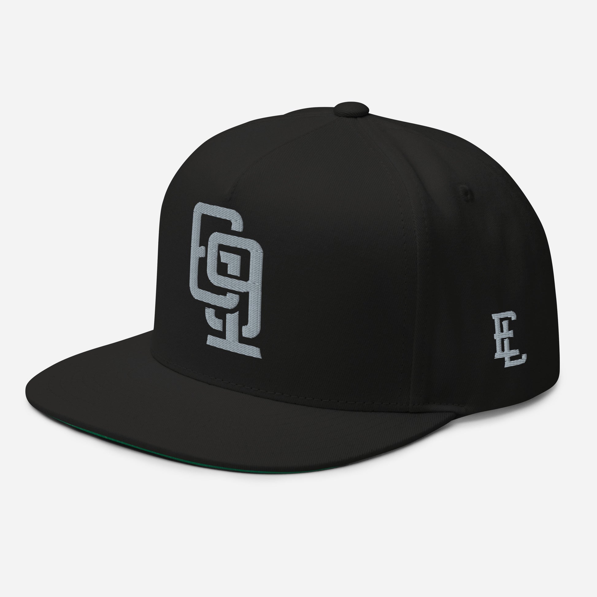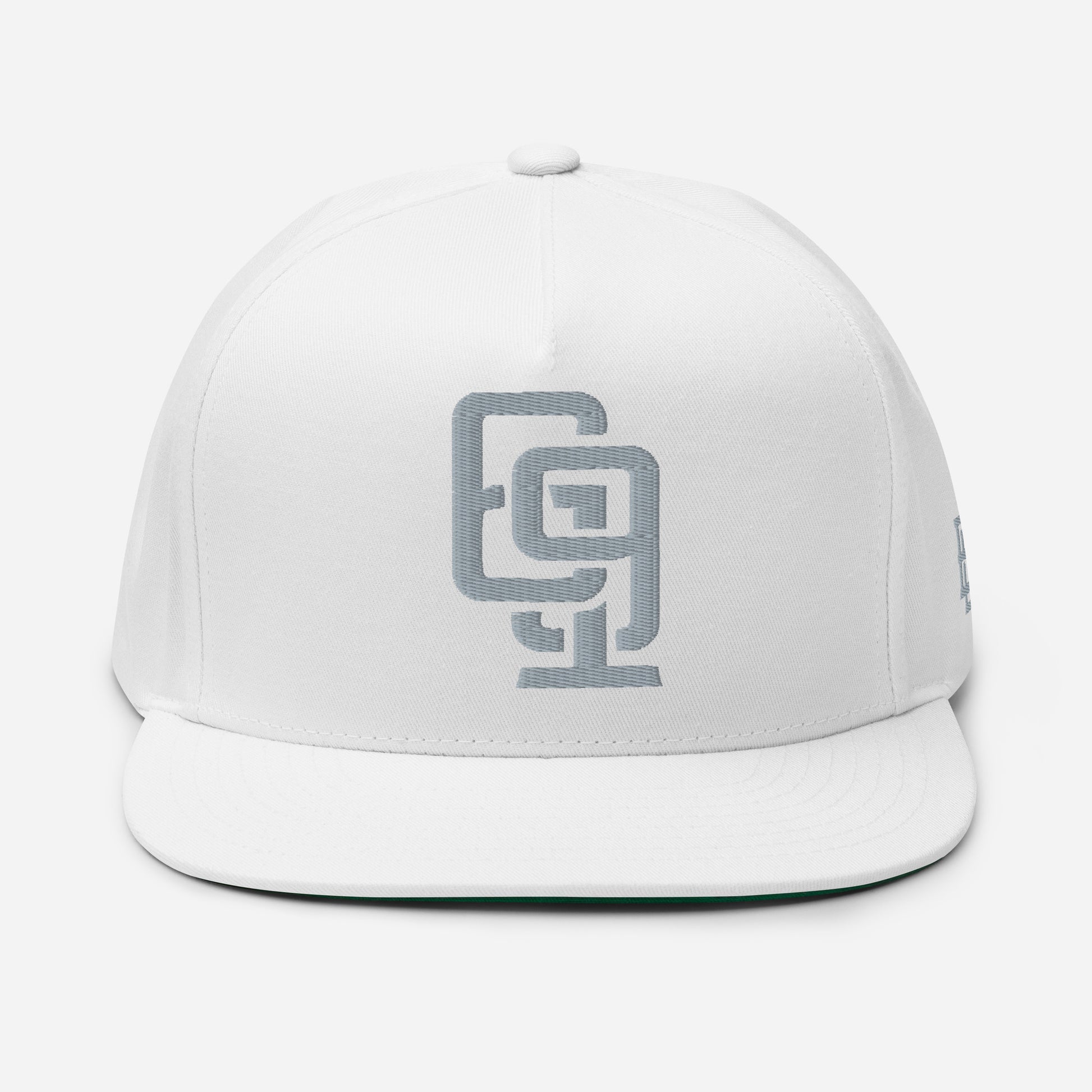 "619" Flat Bill Cap | Yupoong 6007 | E Luna Brand ESSENTIAL Duocrest 2 Grey Thread Logos: Front & Left