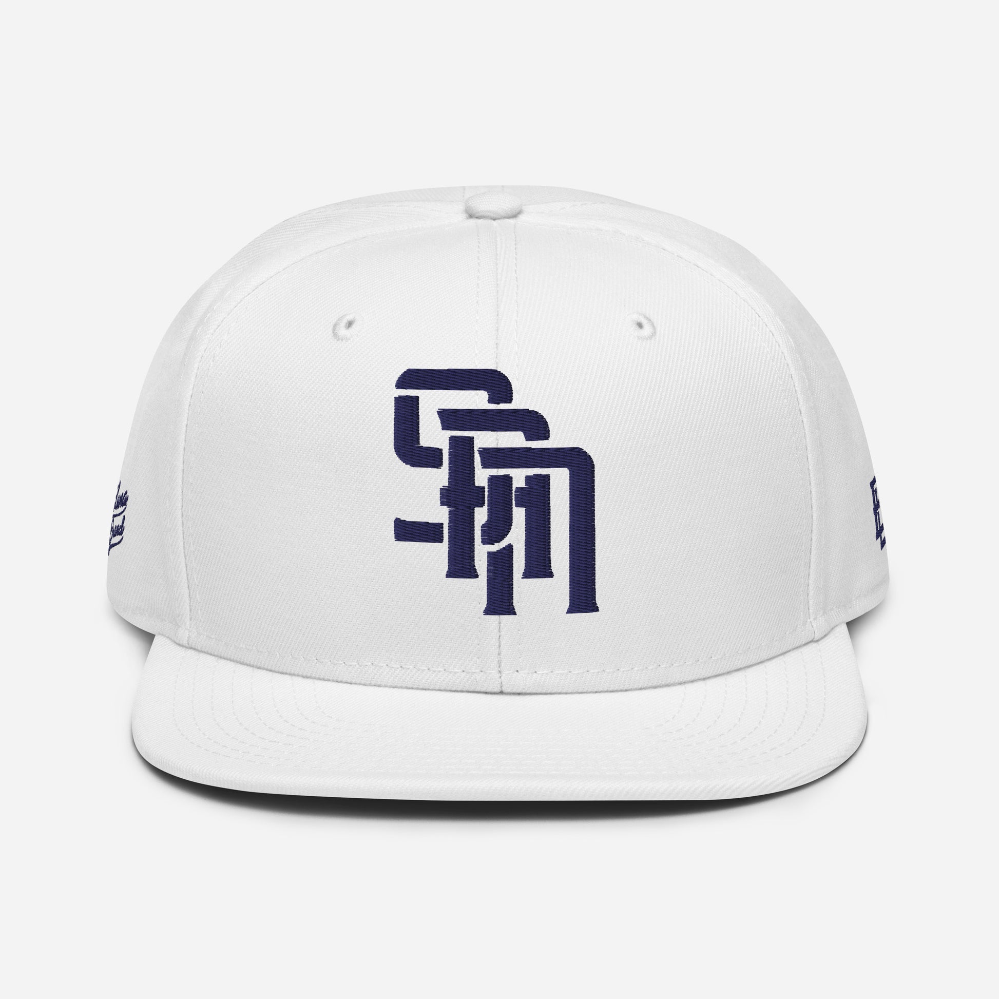 "SAN" Snapback | Otto Cap 125-978 | E Luna Brand PREMIUM Quadcrest 4 Navy Thread Logos: Front, Left, Right Signature & Back [3D Puff Edition]