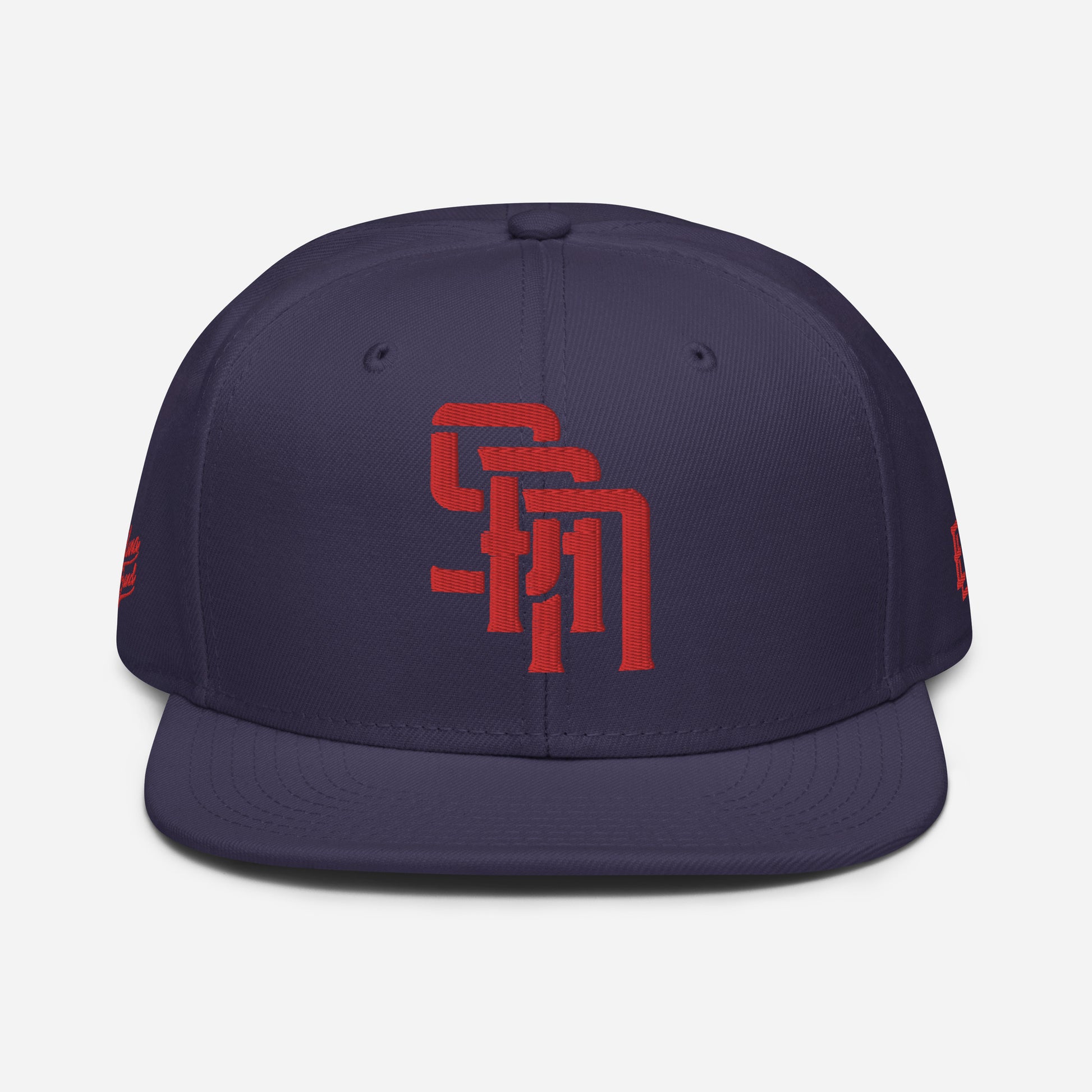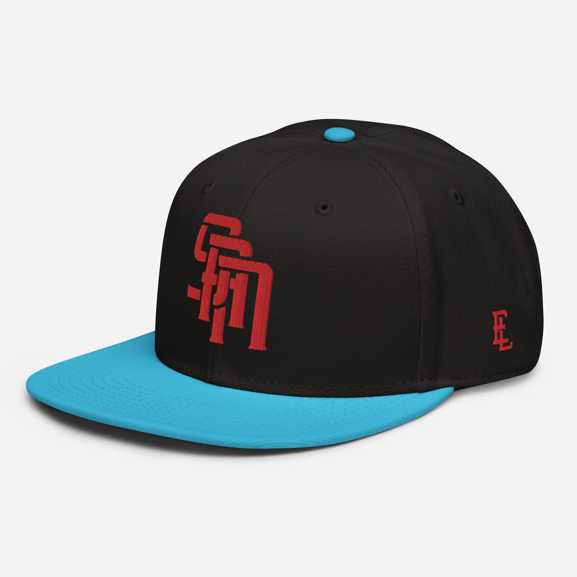 "SAN" Snapback | Otto Cap 125-978 | E Luna Brand PREMIUM Quadcrest 4 Red Thread Logos: Front, Left, Right Signature & Back [3D Puff Edition]