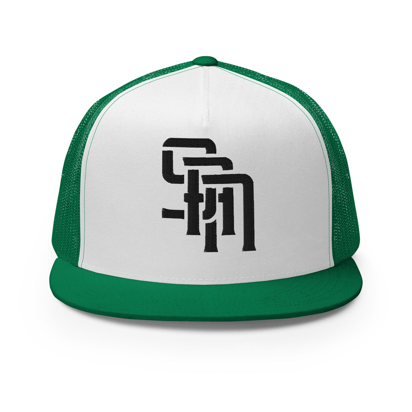 "SAN" Five Panel Trucker Cap | Yupoong 6006 | E Luna Brand CLASSIC Solocrest 1 Black Thread Front Logo
