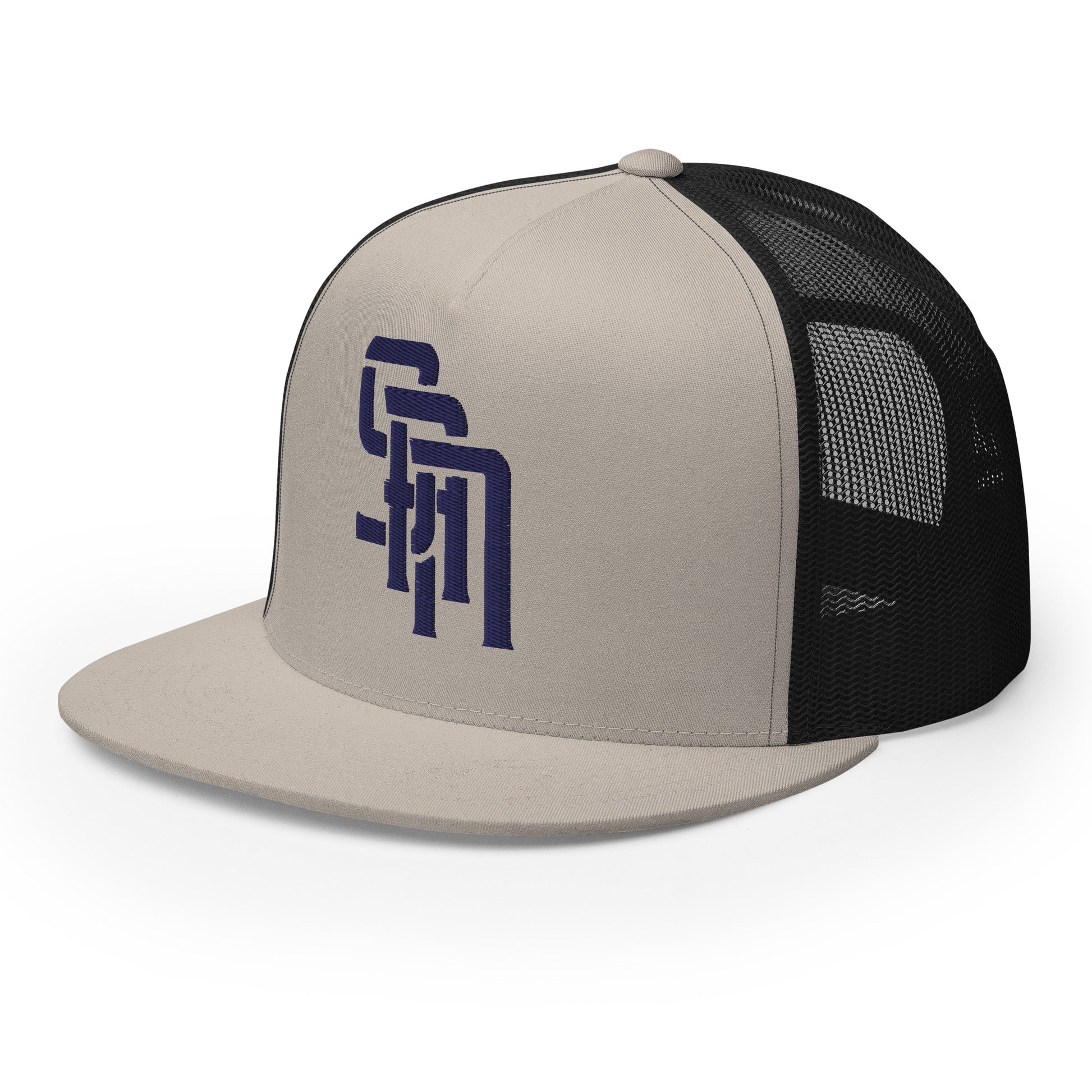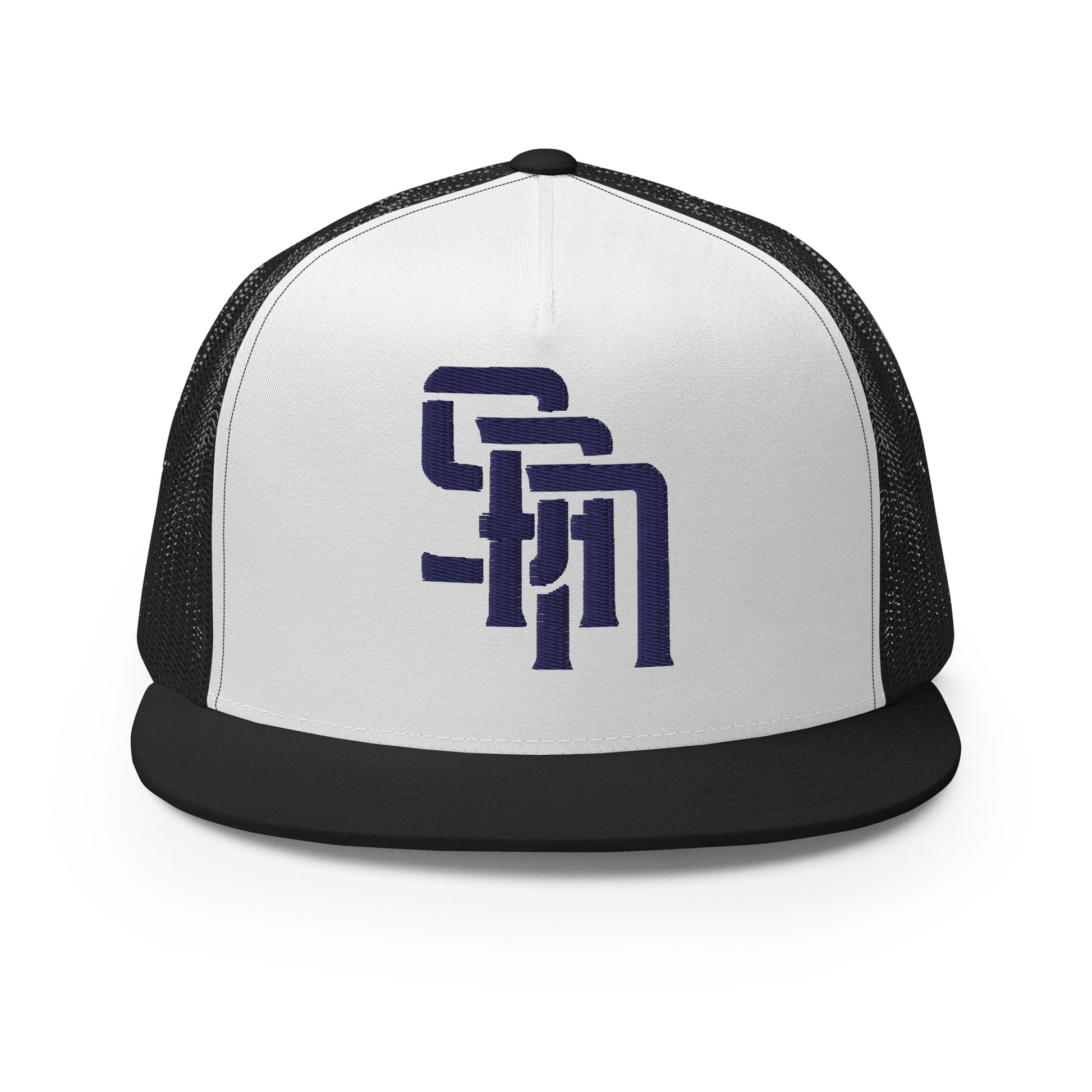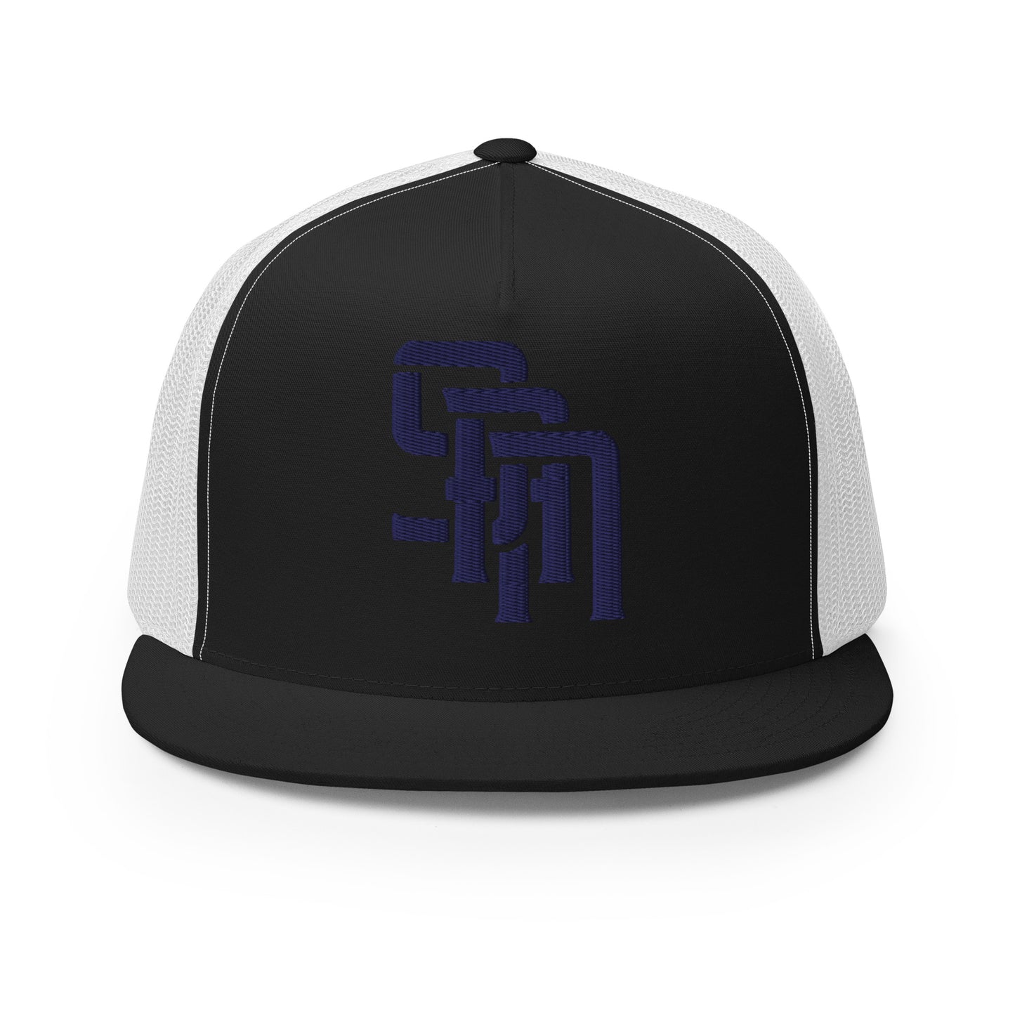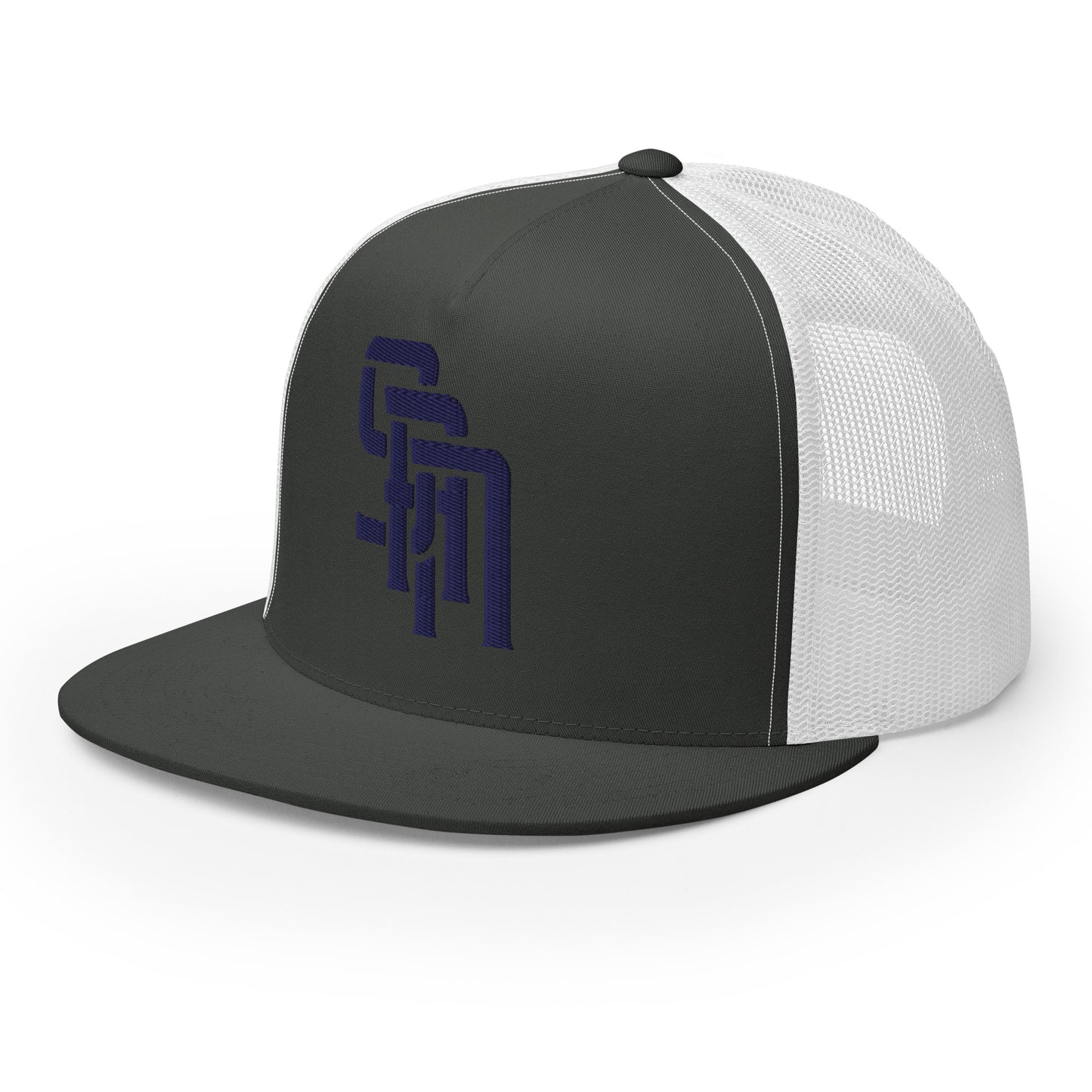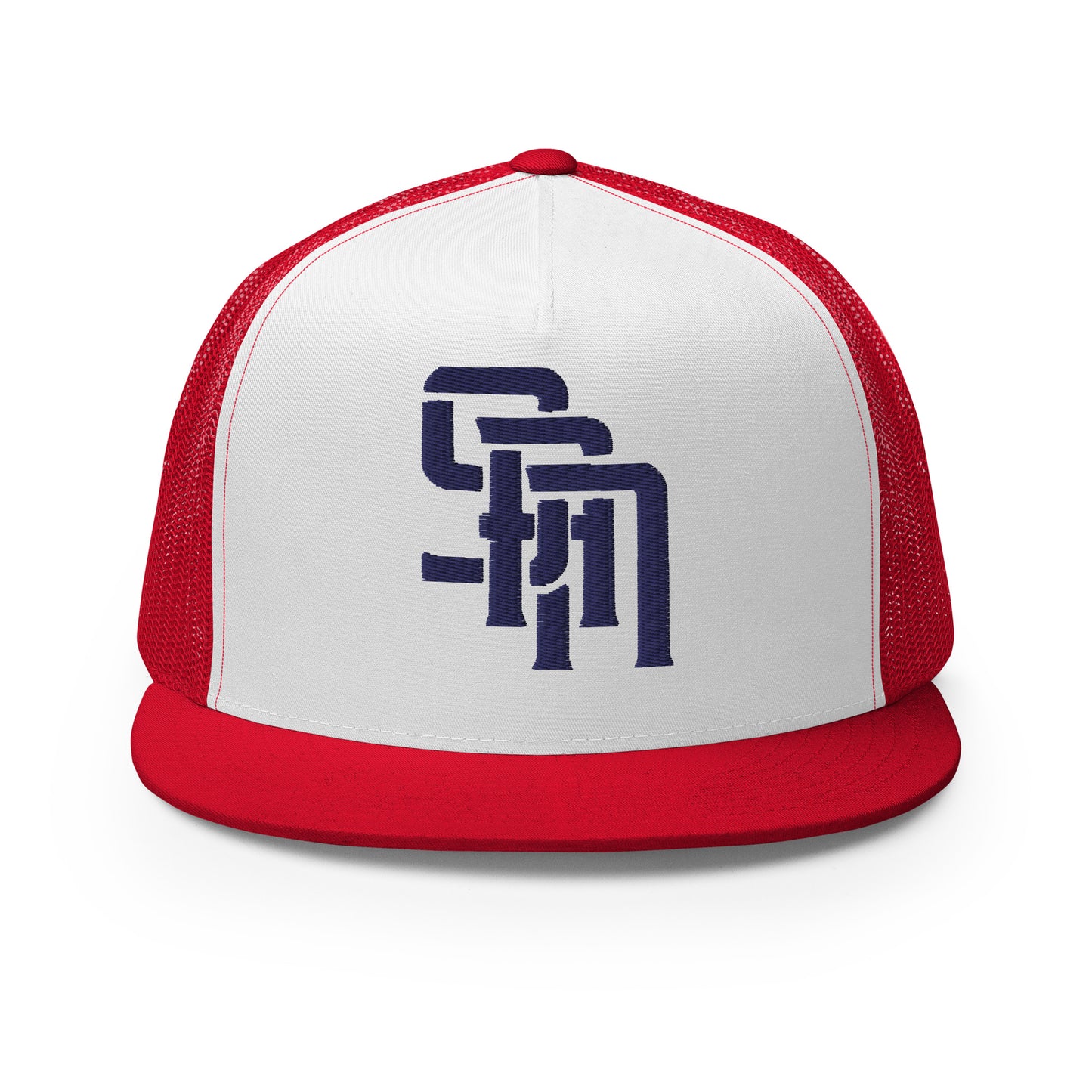 "SAN" Five Panel Trucker Cap | Yupoong 6006 | E Luna Brand CLASSIC Solocrest 1 Navy Thread Front Logo [3D Puff Edition]